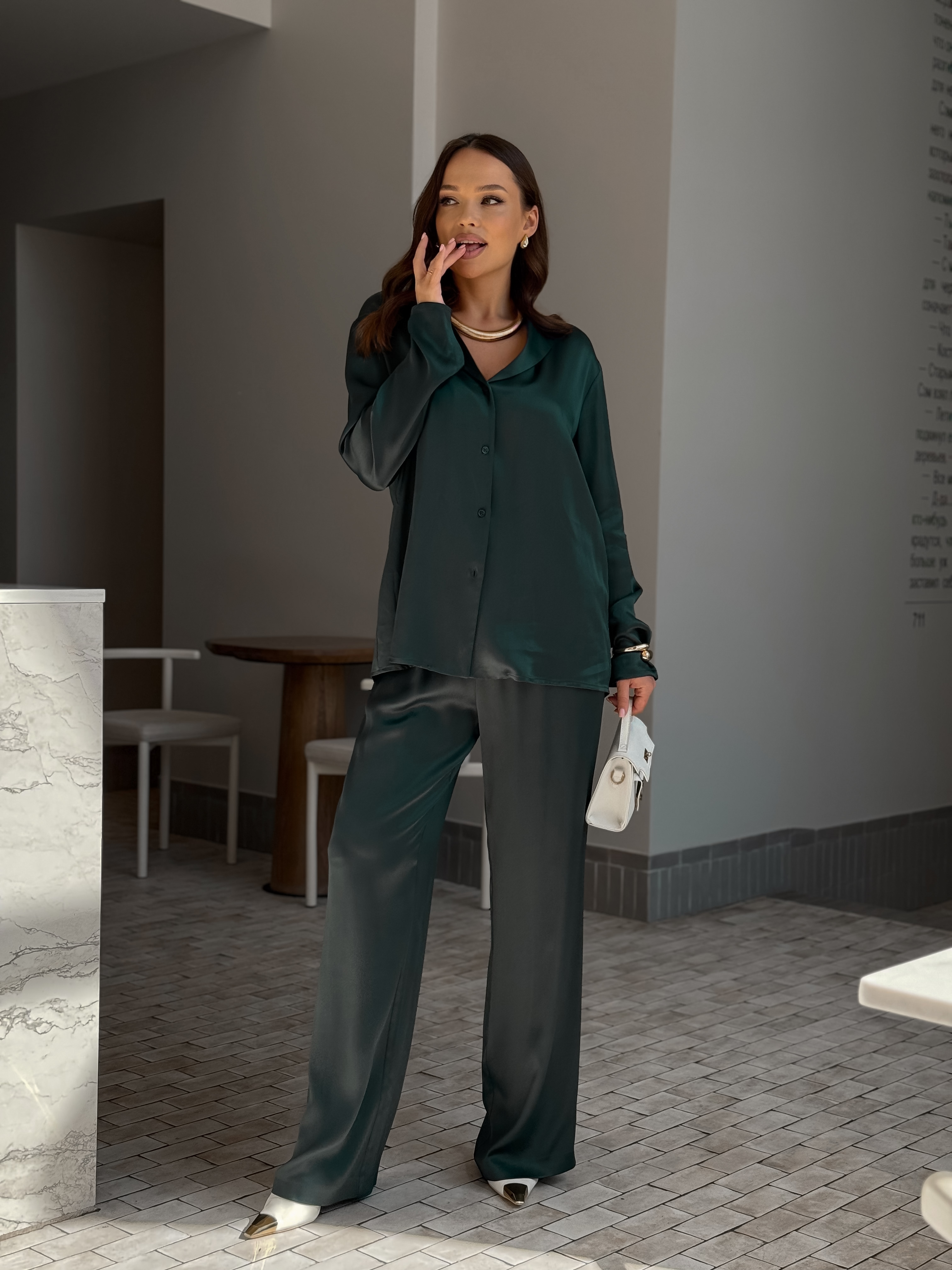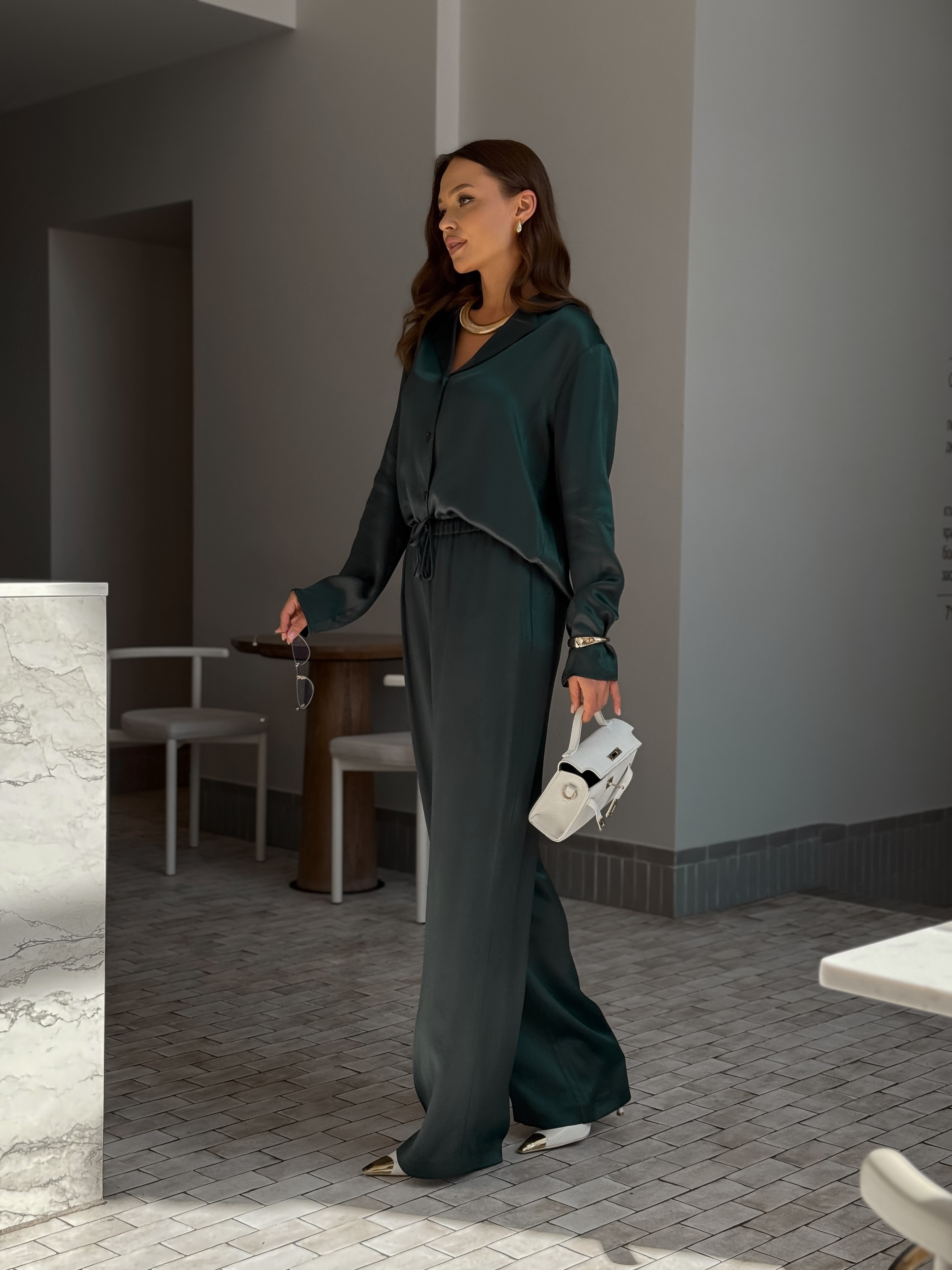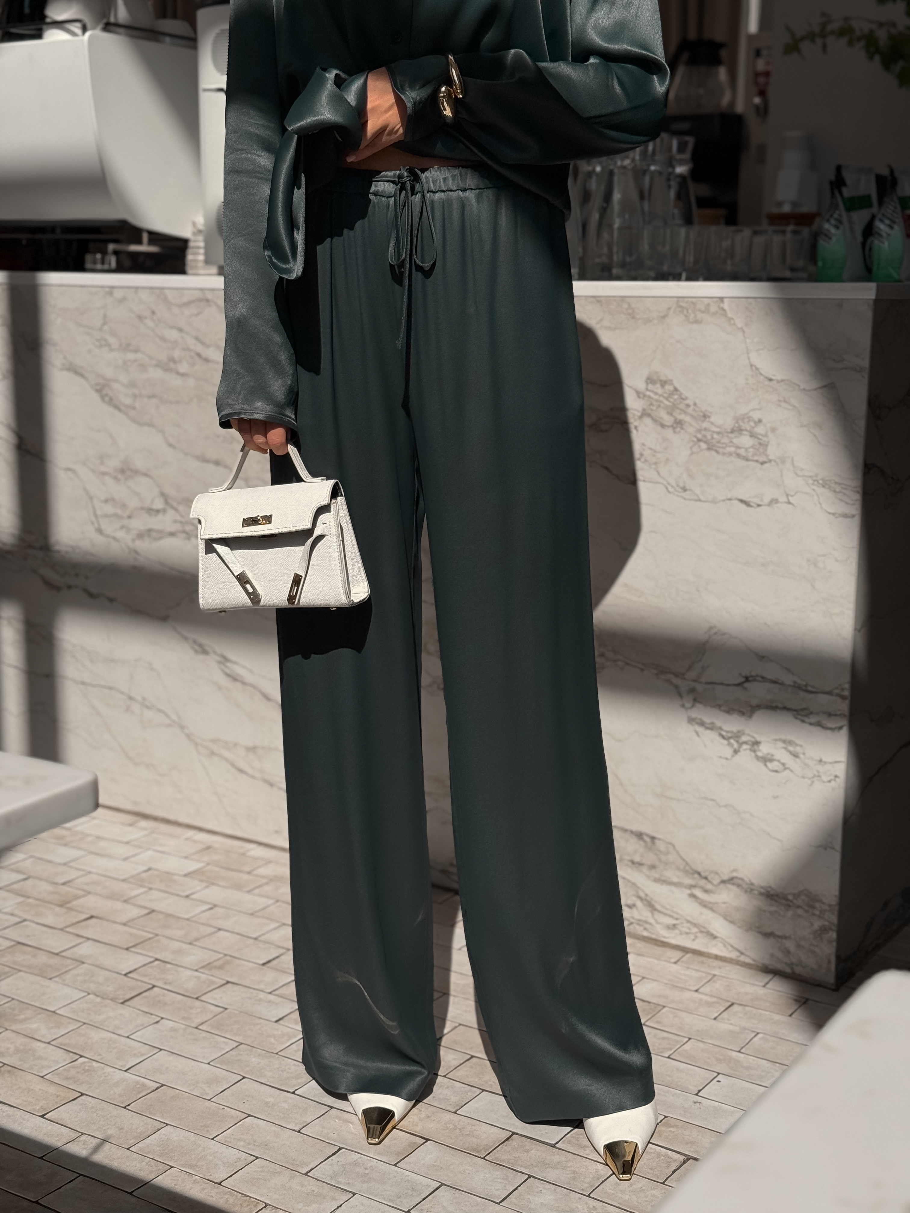 Брюки-палаццо с резинкой на талии в зелёном цвете