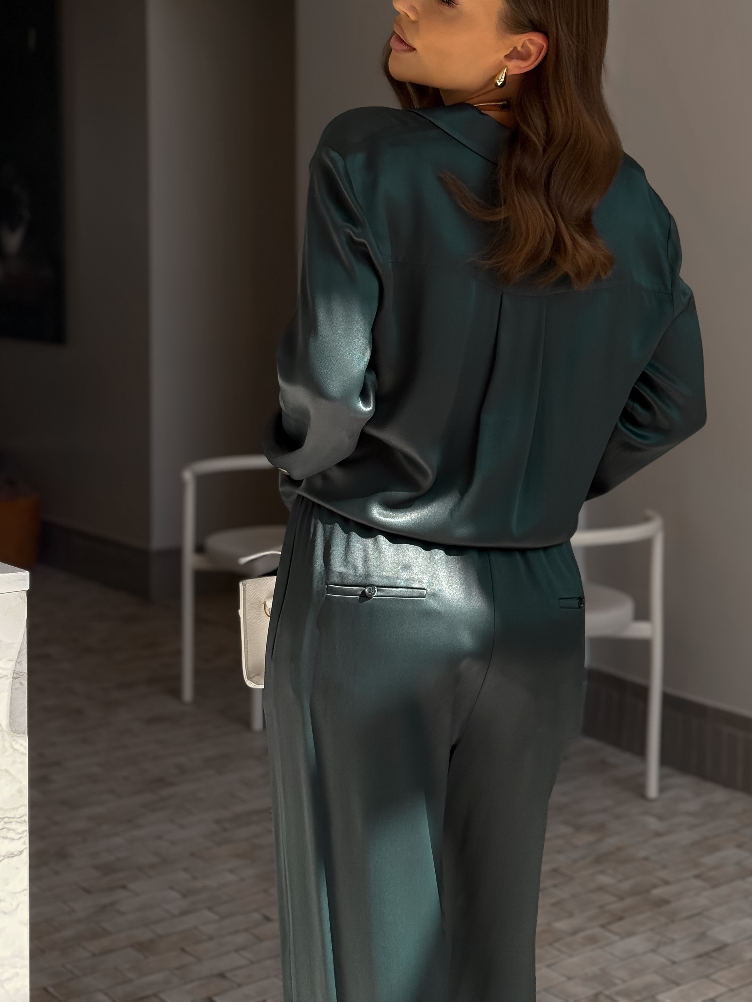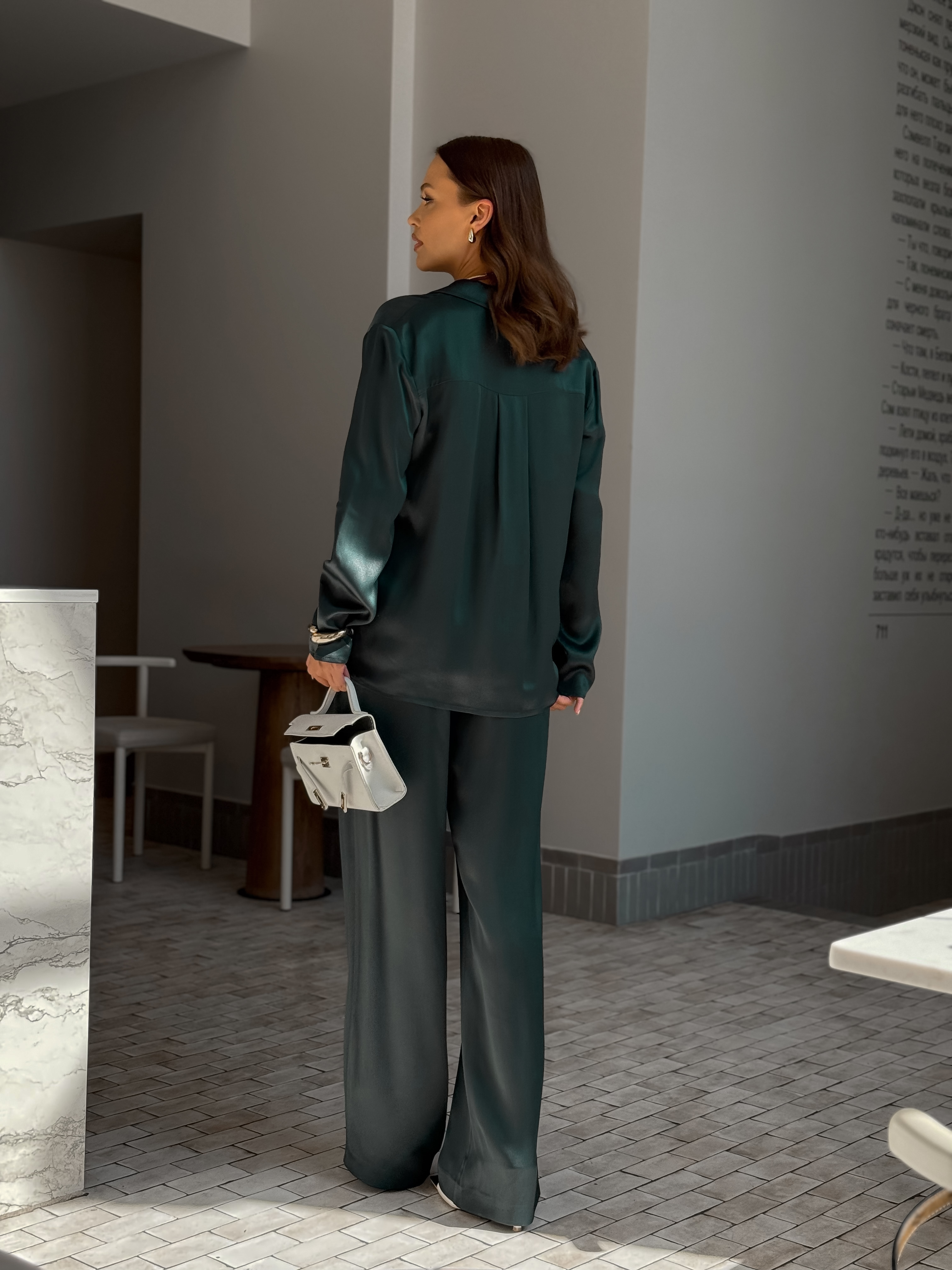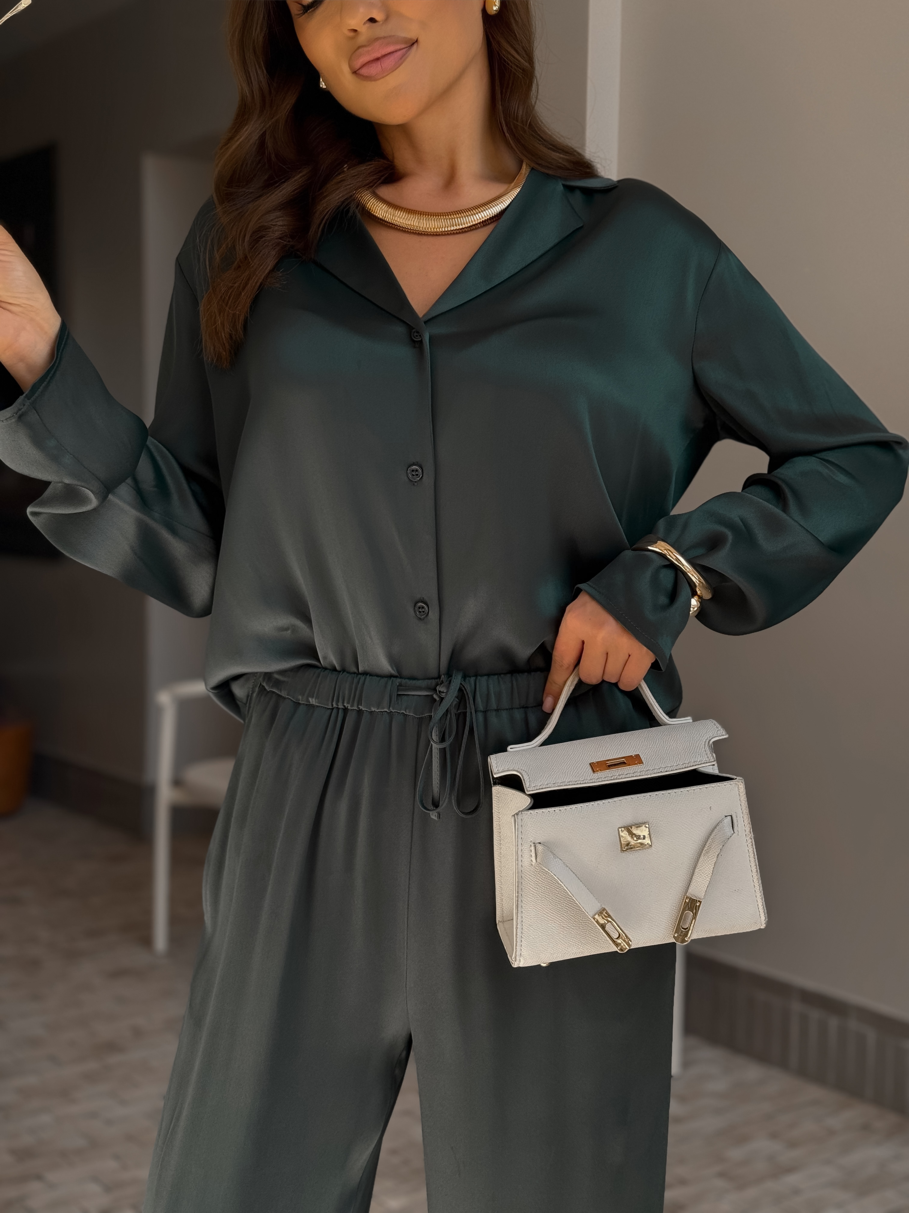 Брюки-палаццо с резинкой на талии в зелёном цвете