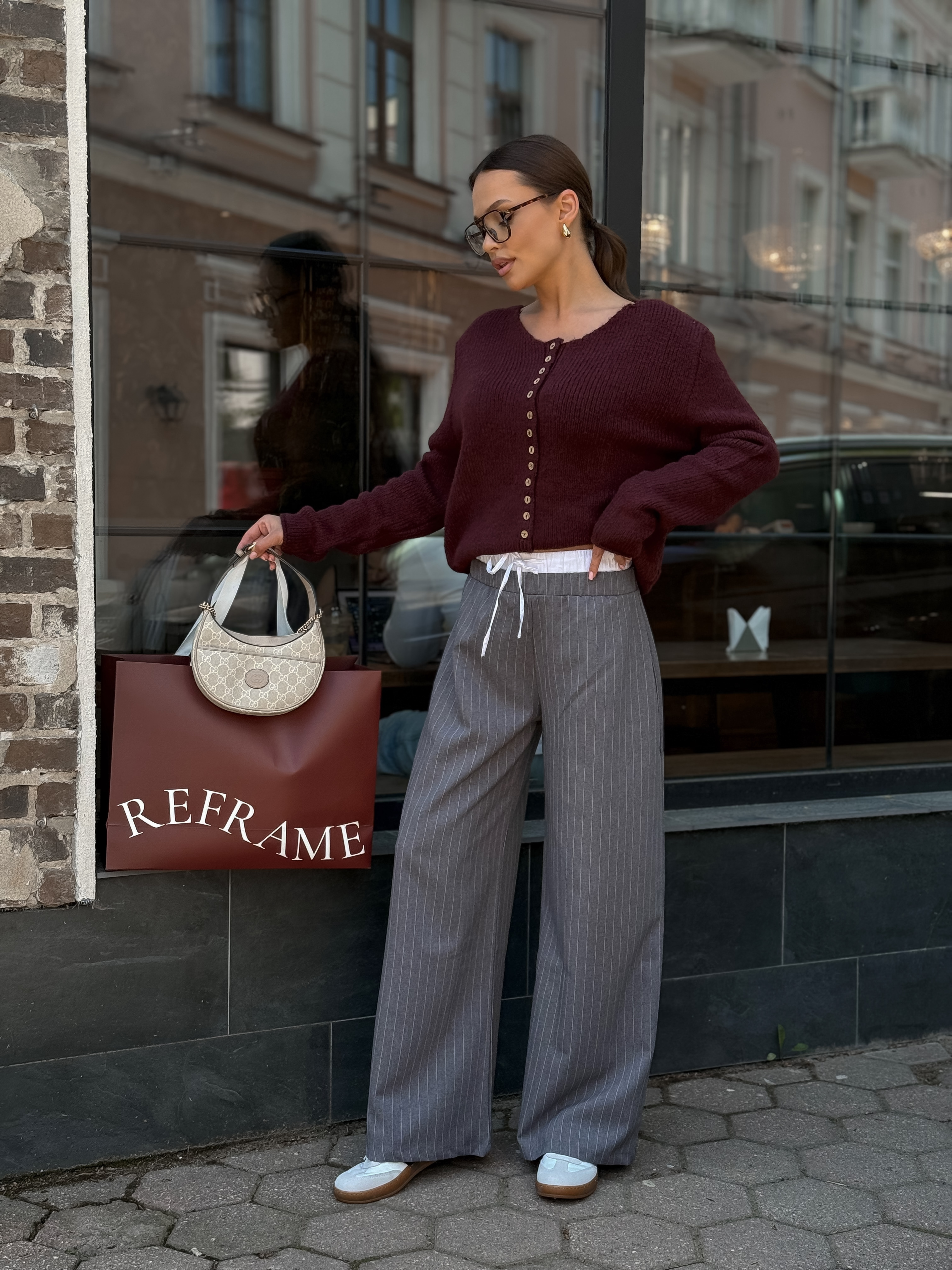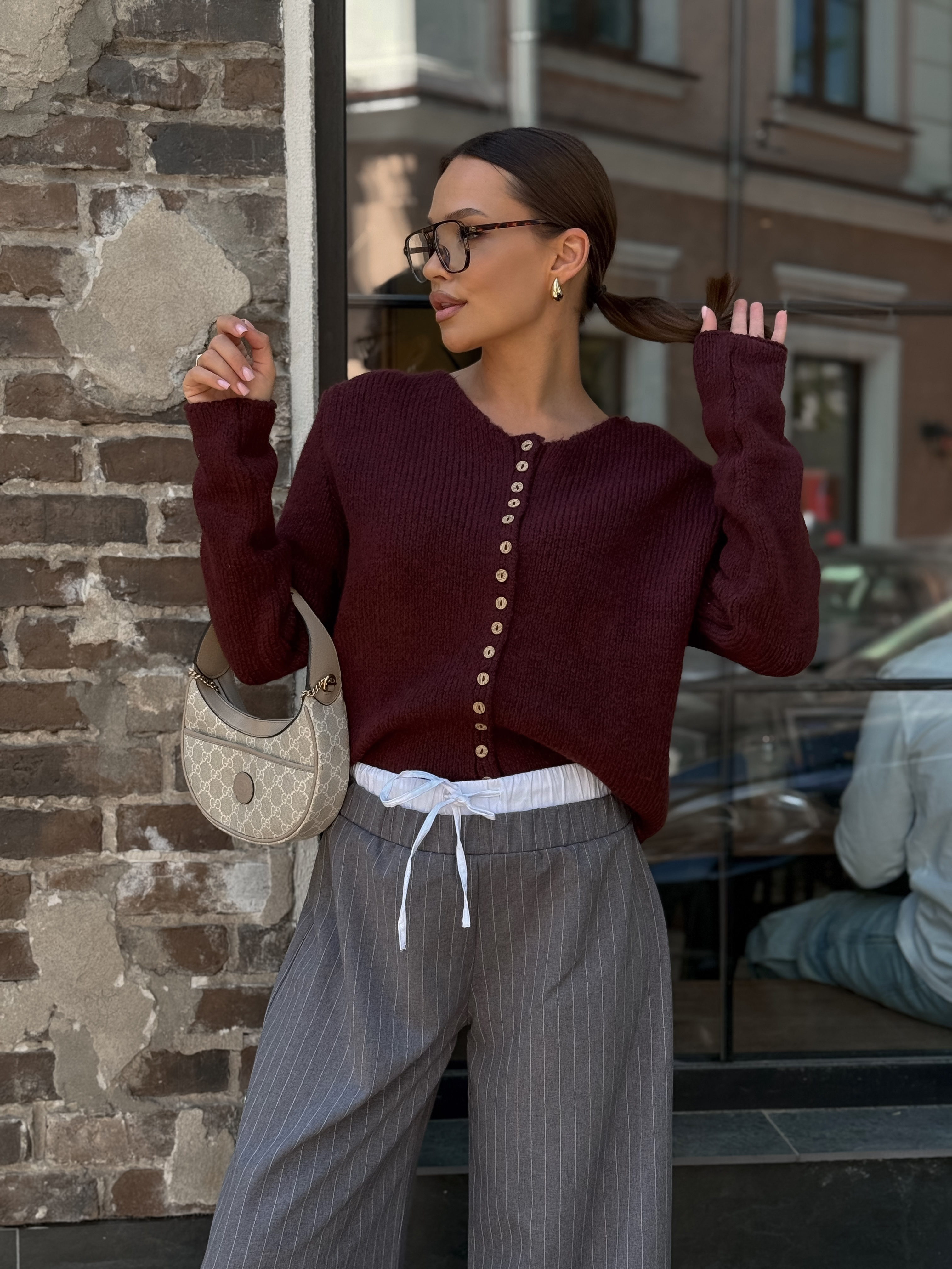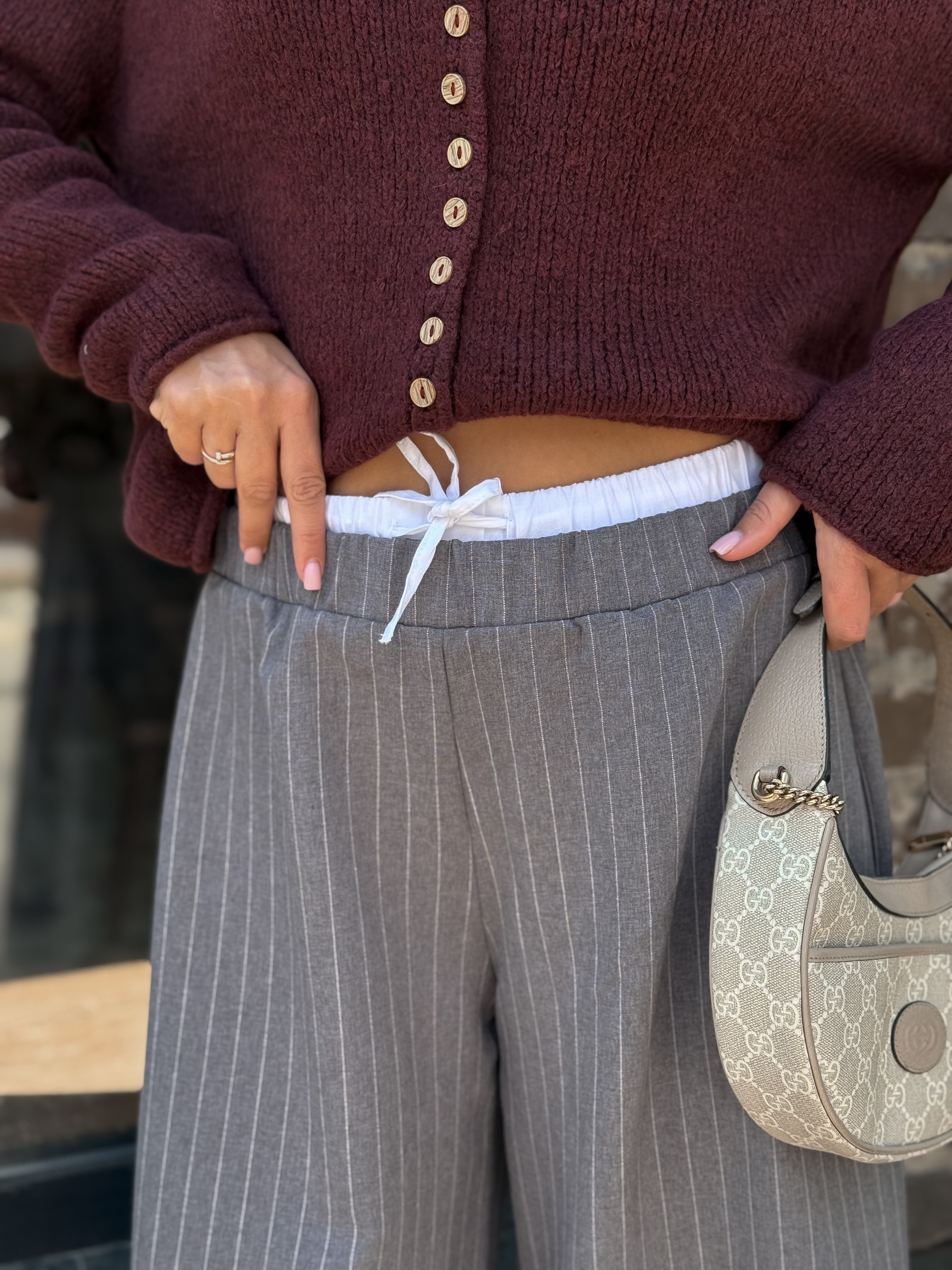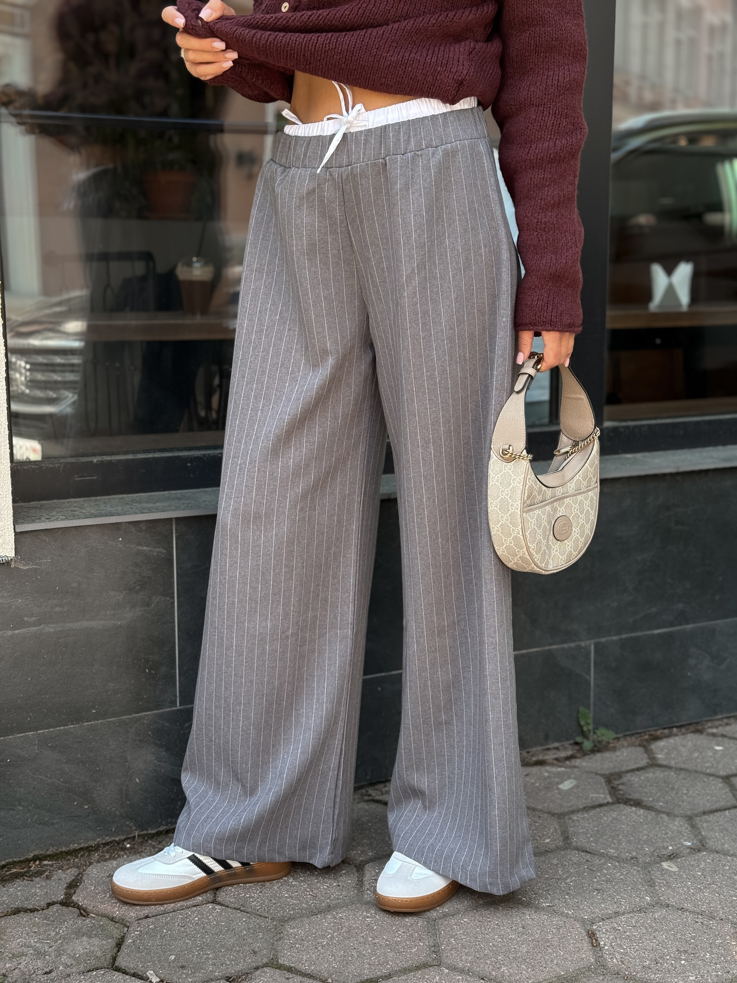 Брюки-палаццо в полоску, серый