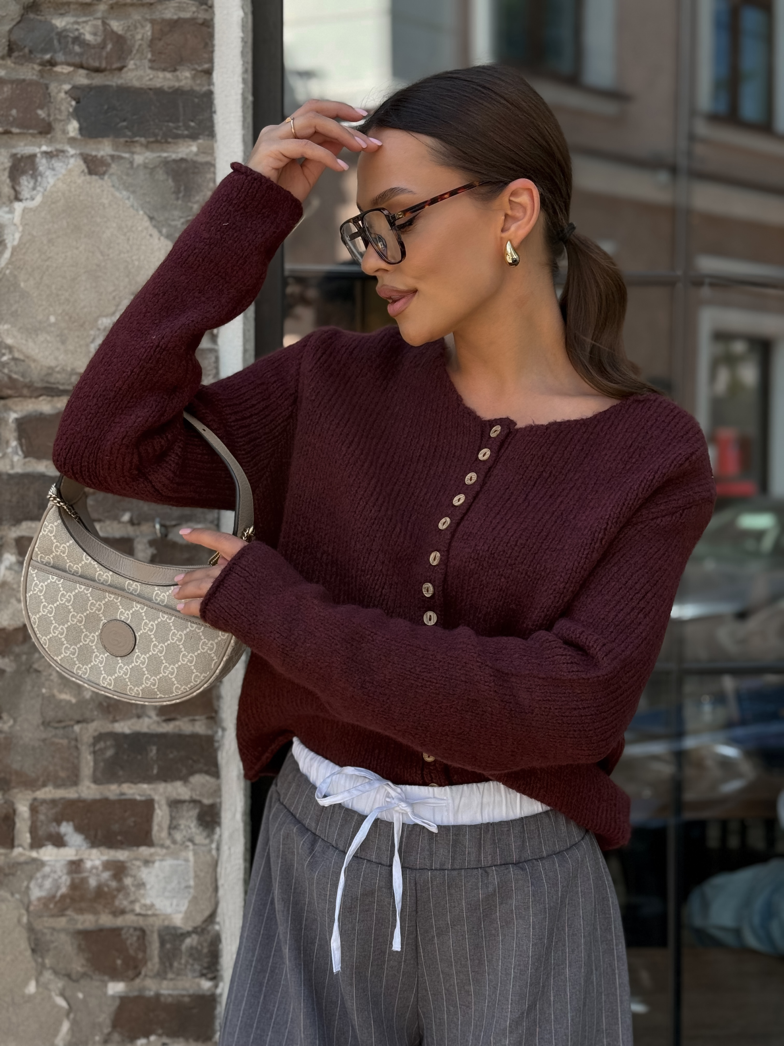 Джемпер на пуговицах, бордовый