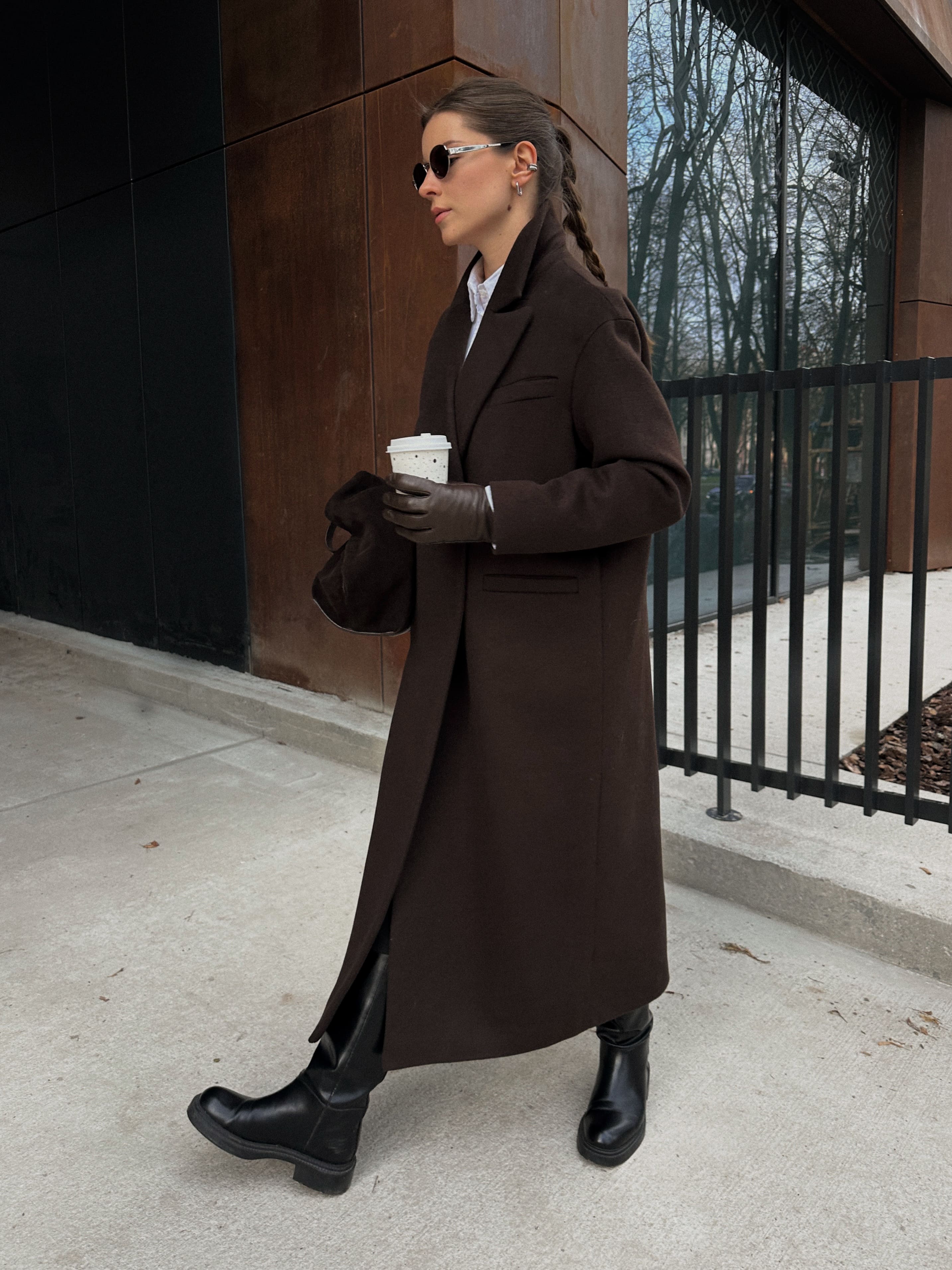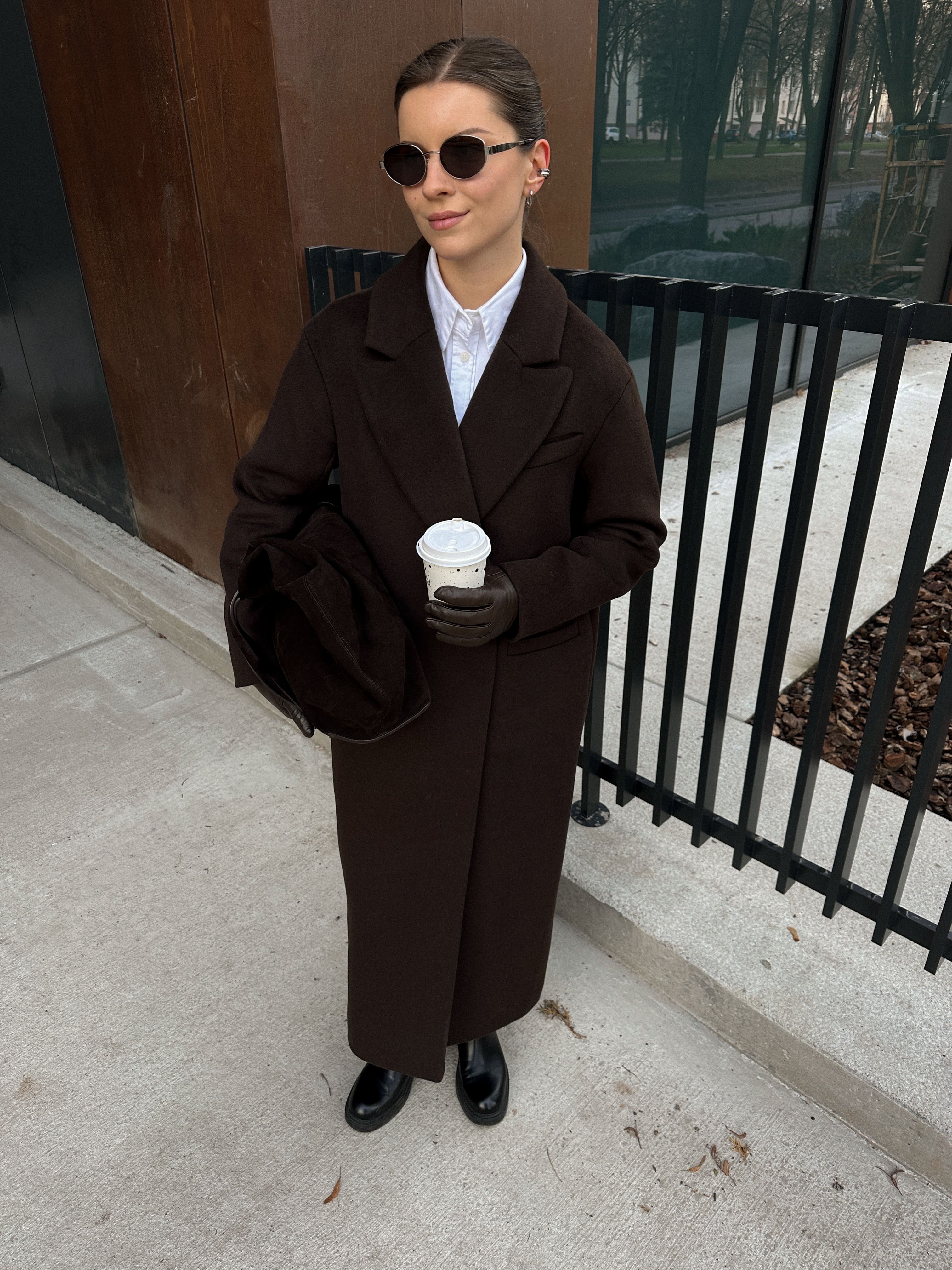 Пальто из шерсти в длине макси, шоколадный