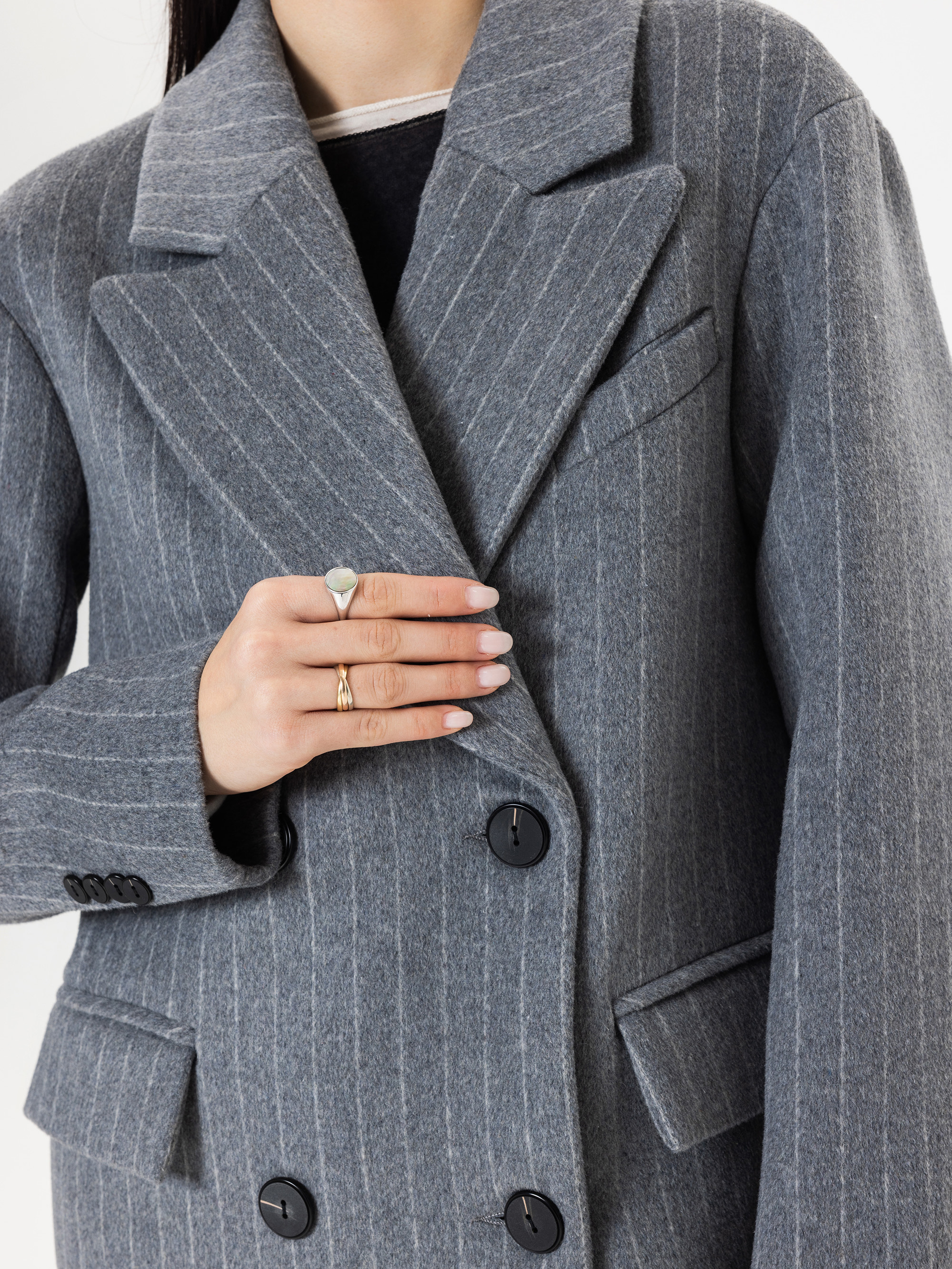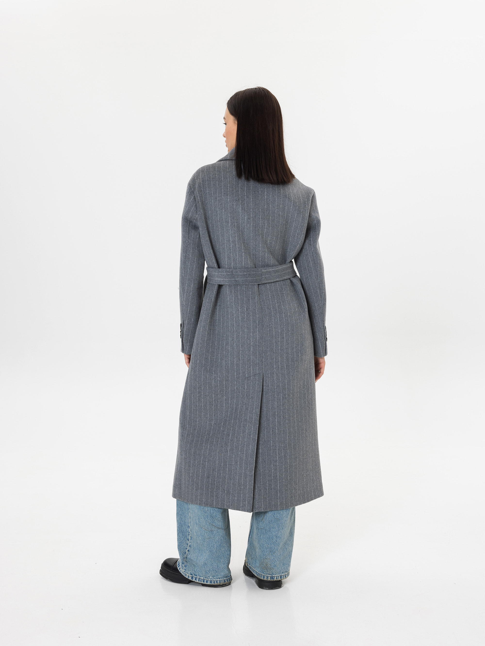 Пальто из шерсти в полоску, серый