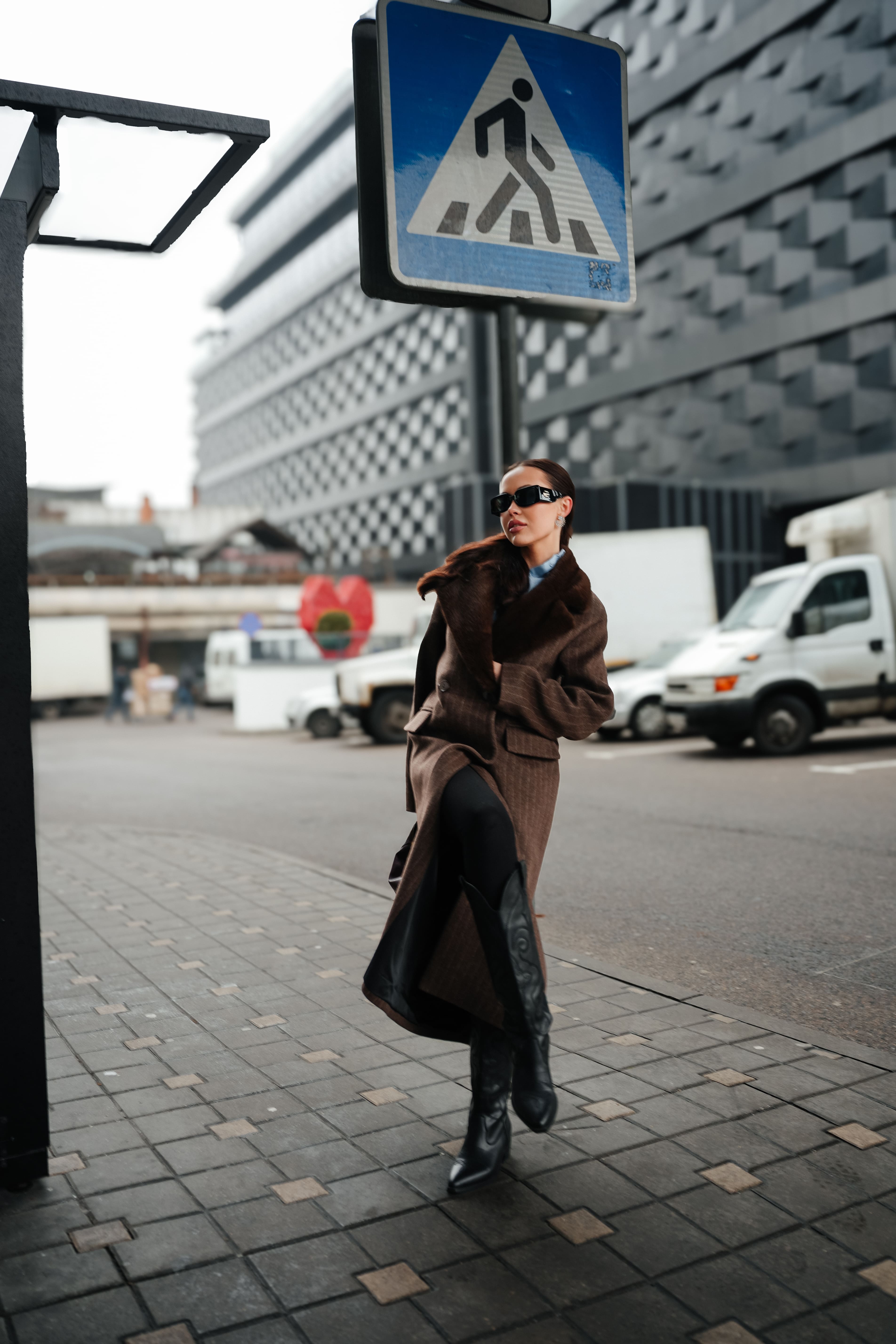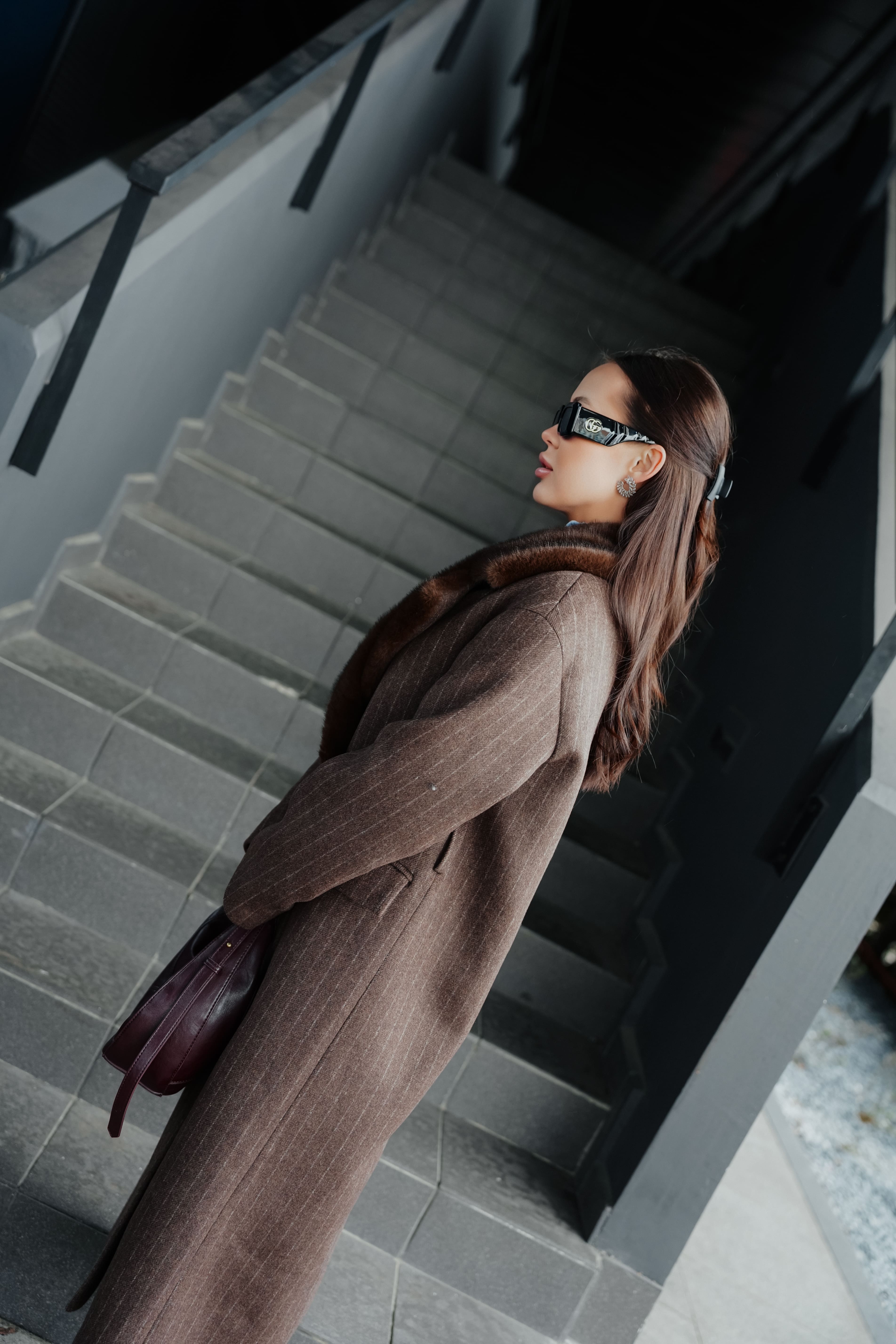 Пальто в полоску с акцентным воротником