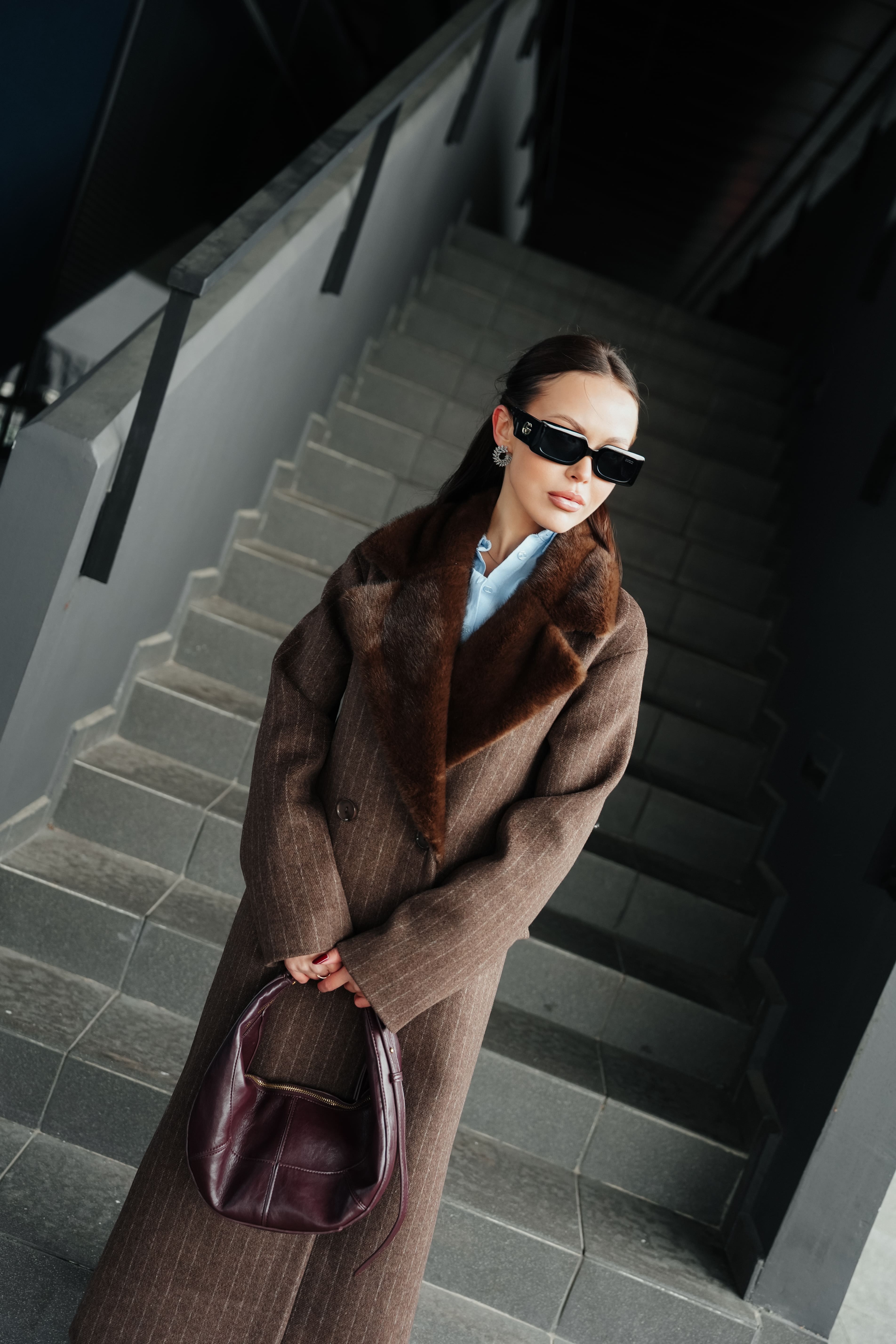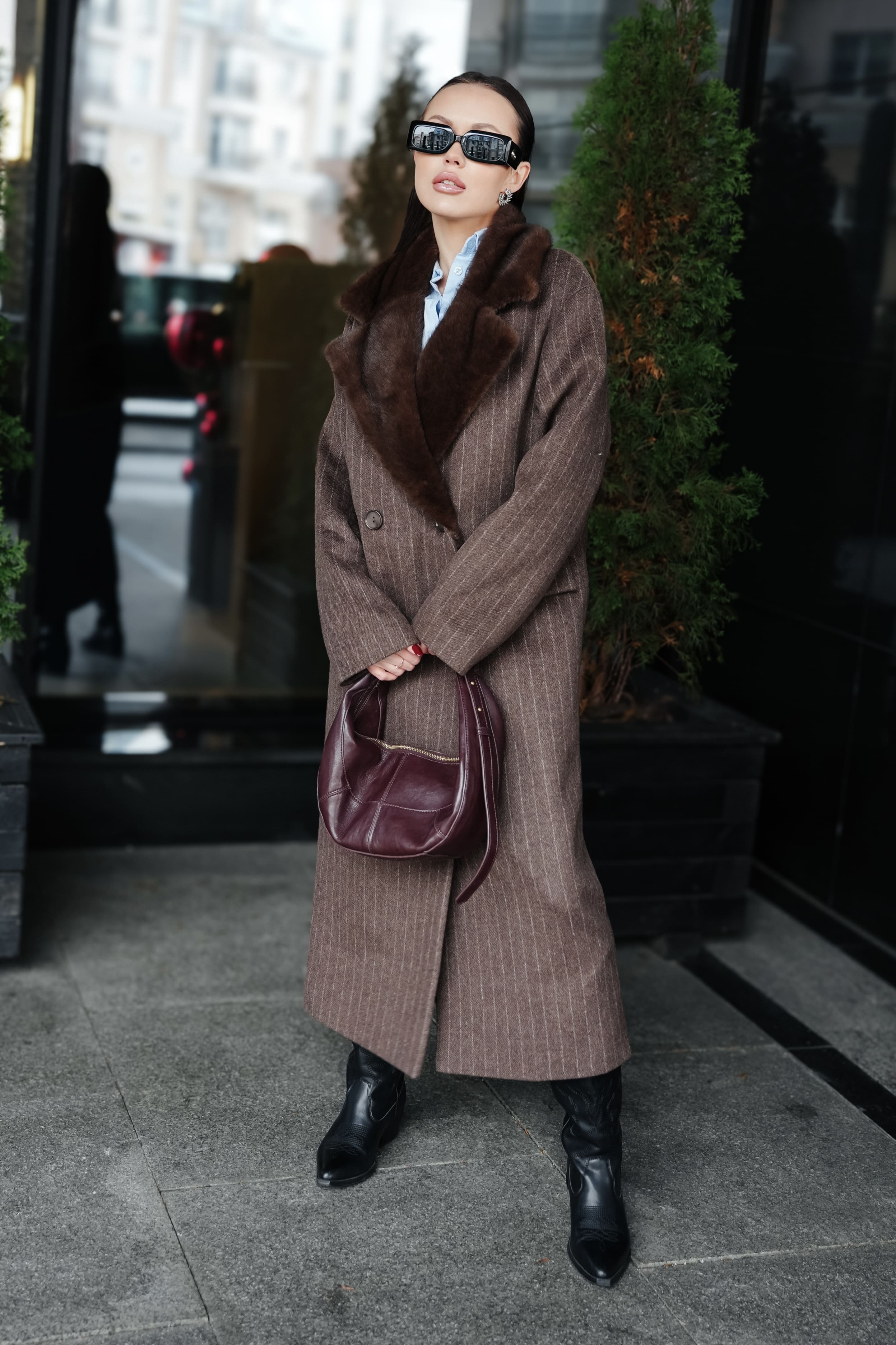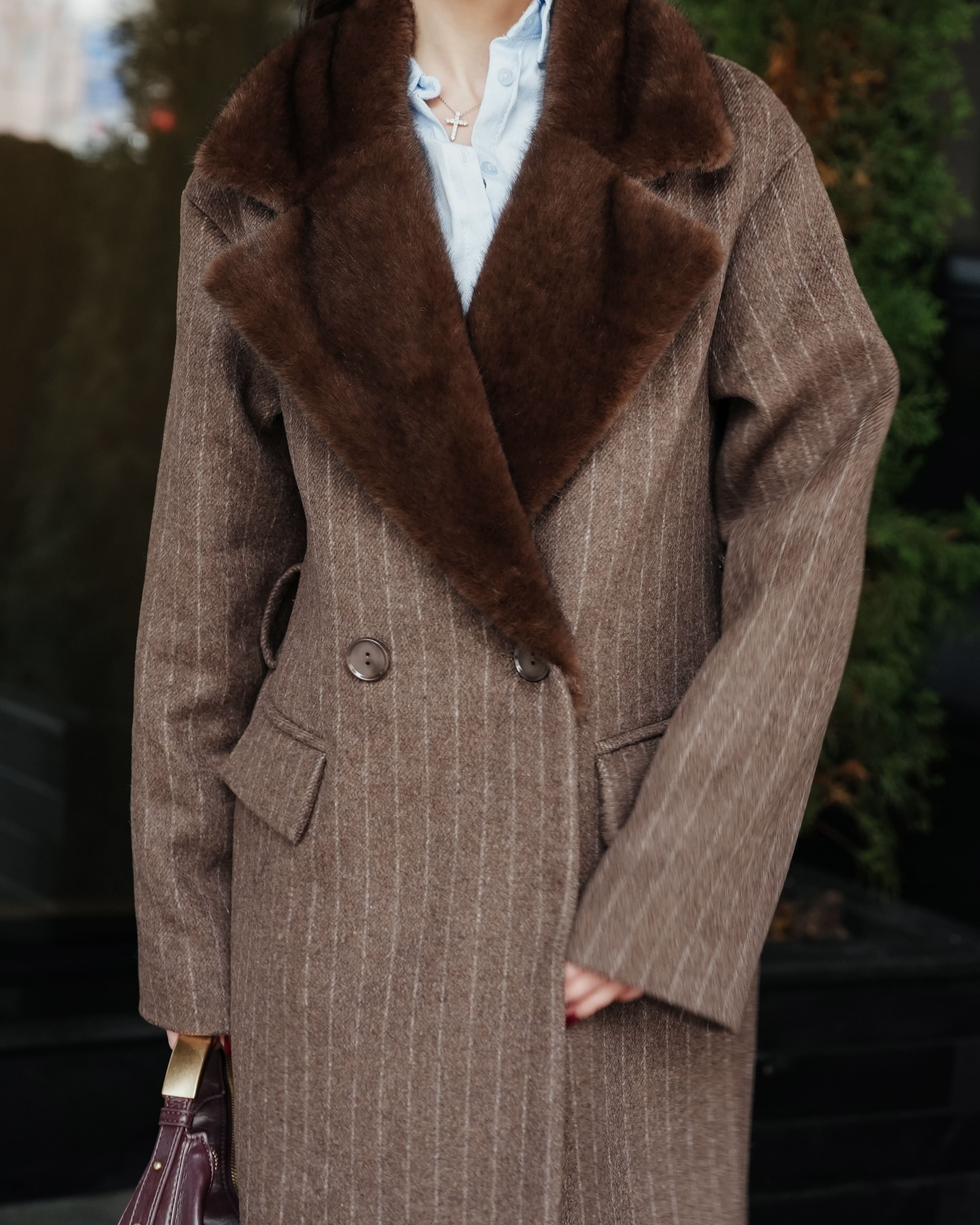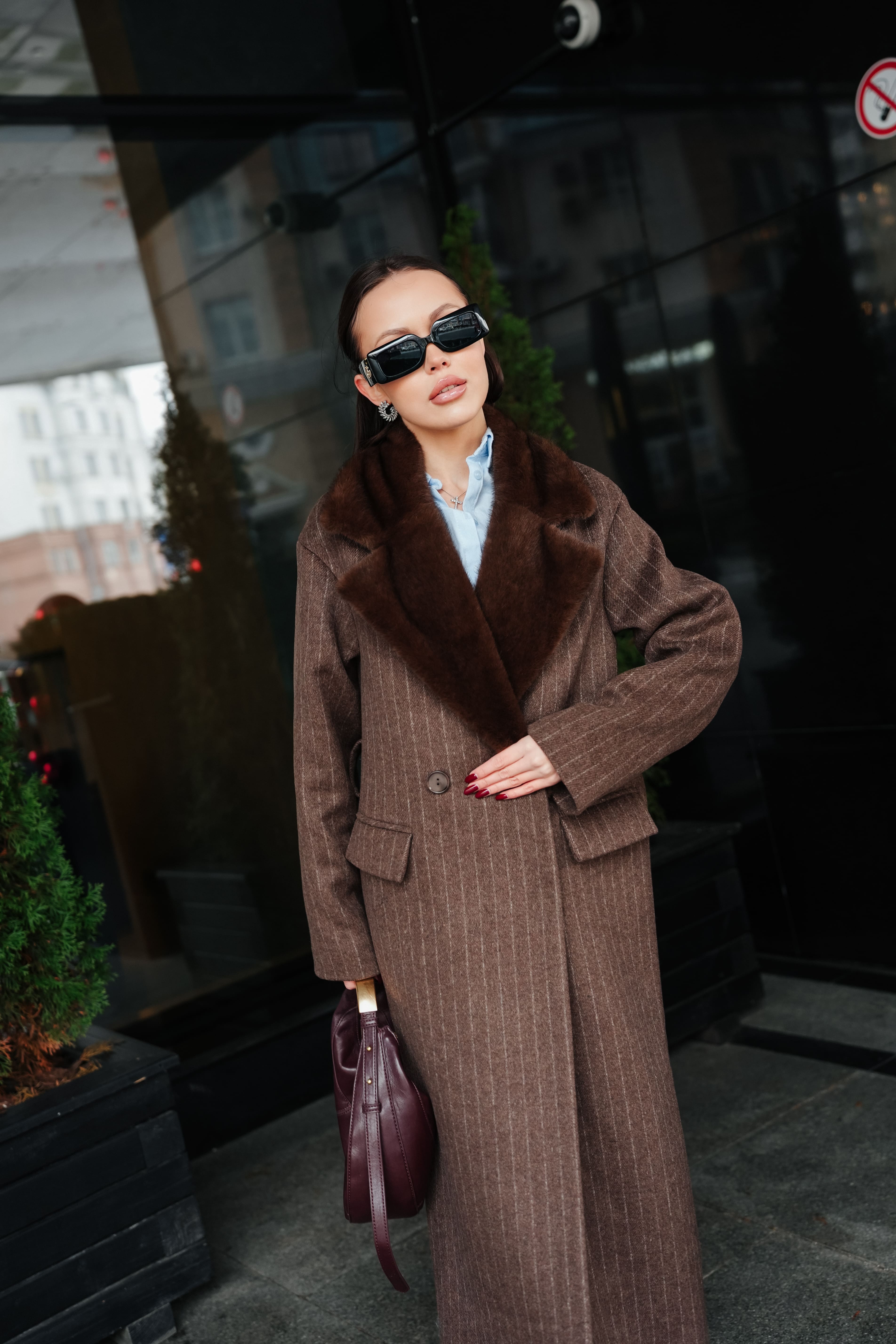 Пальто в полоску с акцентным воротником