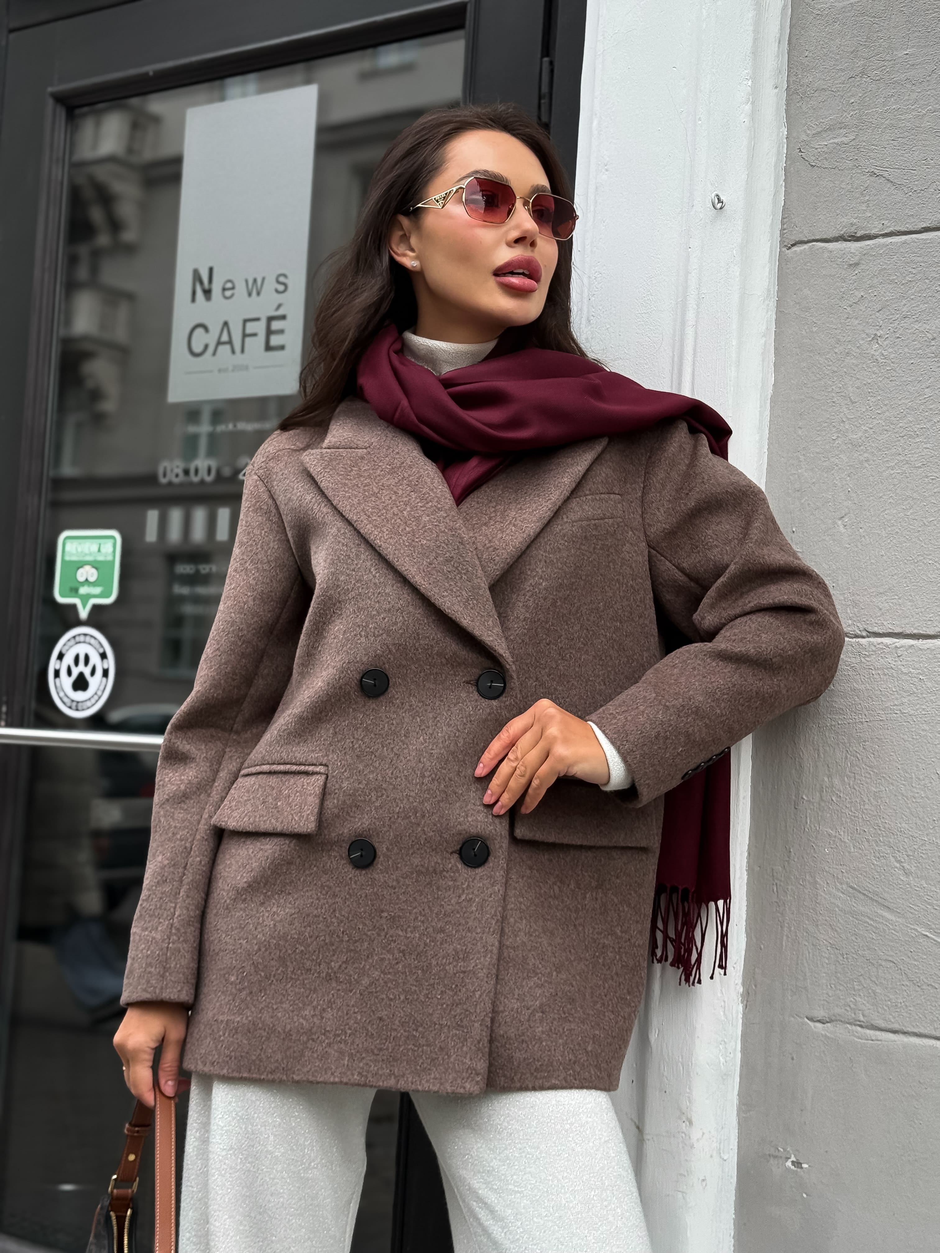 Полупальто из шерсти, кофейный