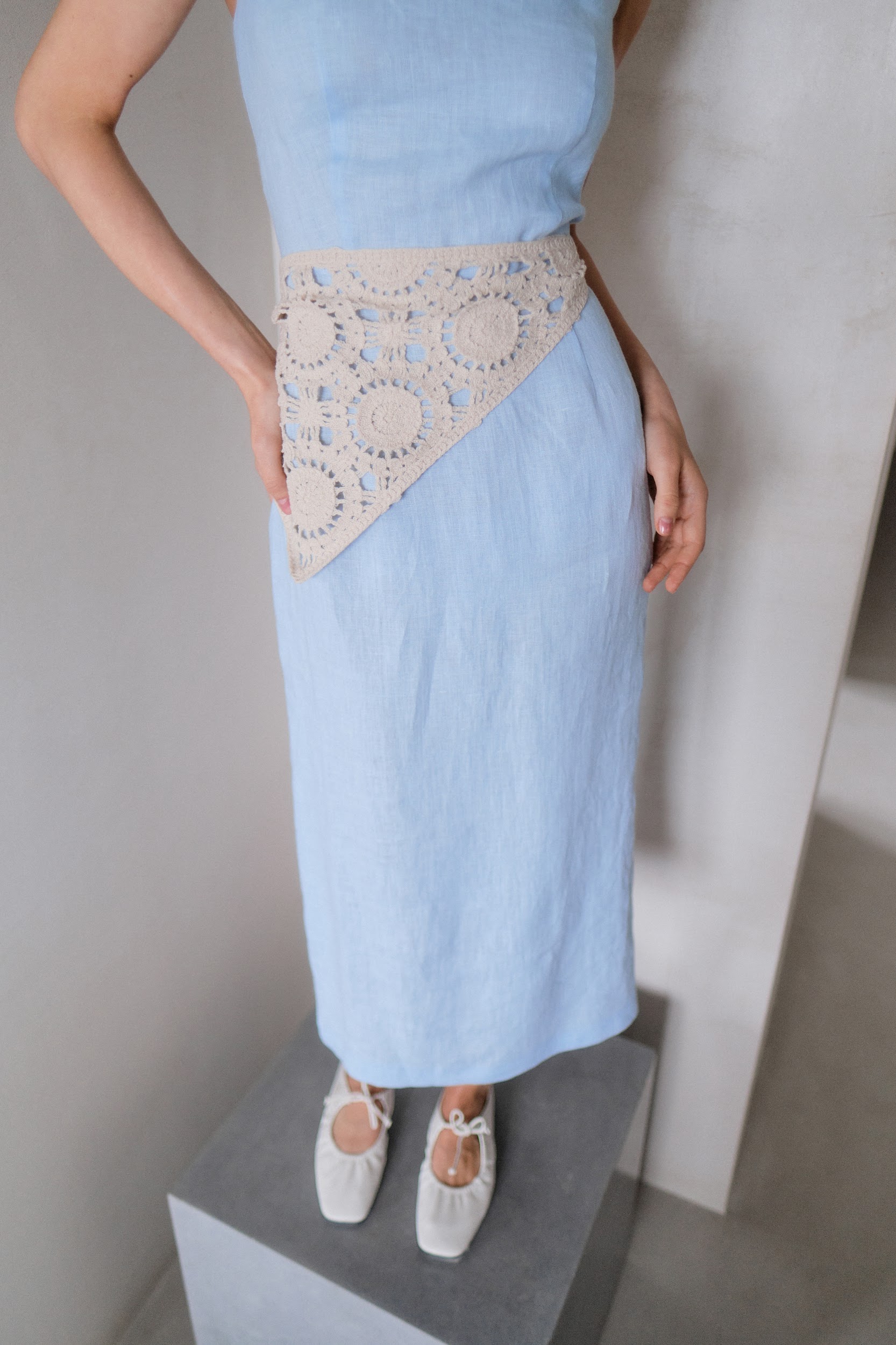 Льняной сарафан на бретелях, голубой