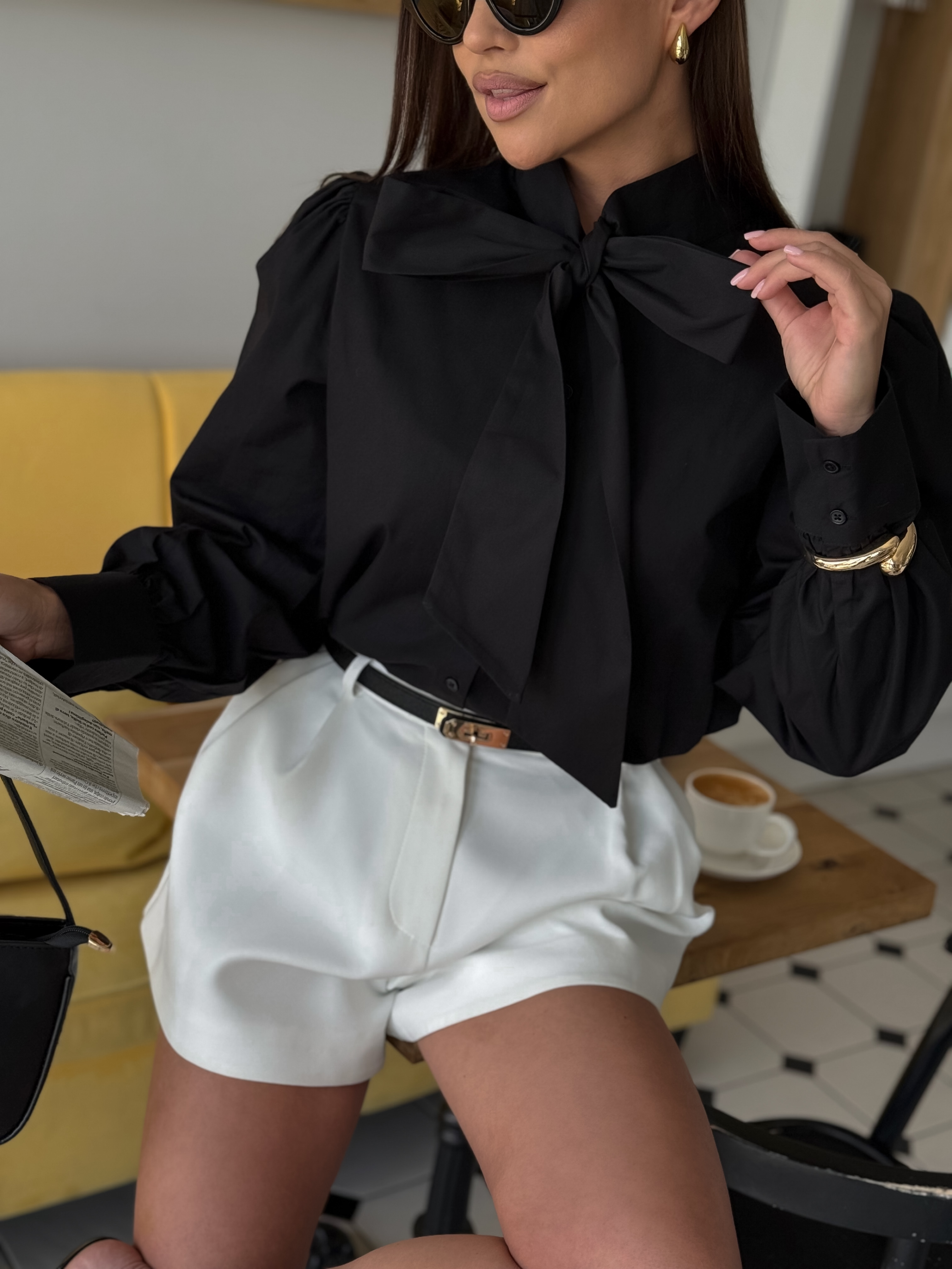 Рубашка с бантом, черный