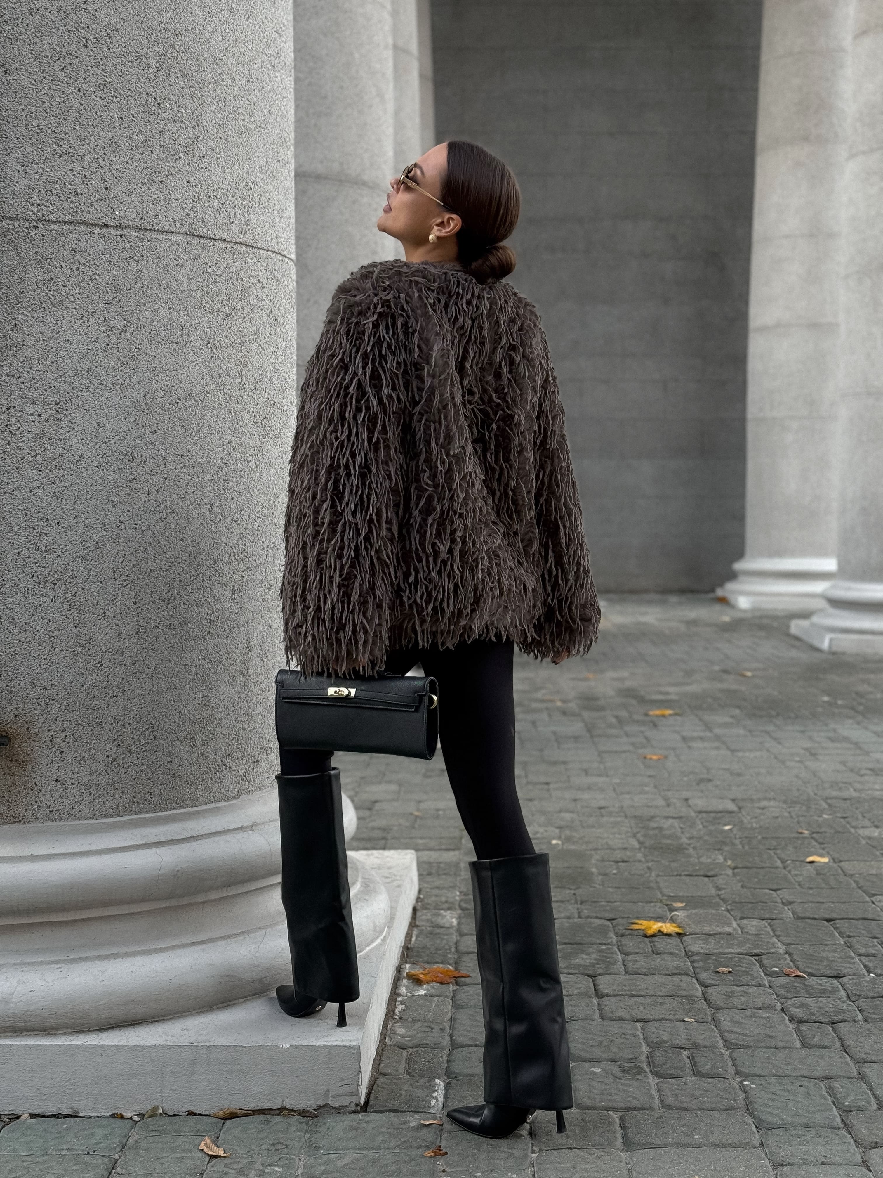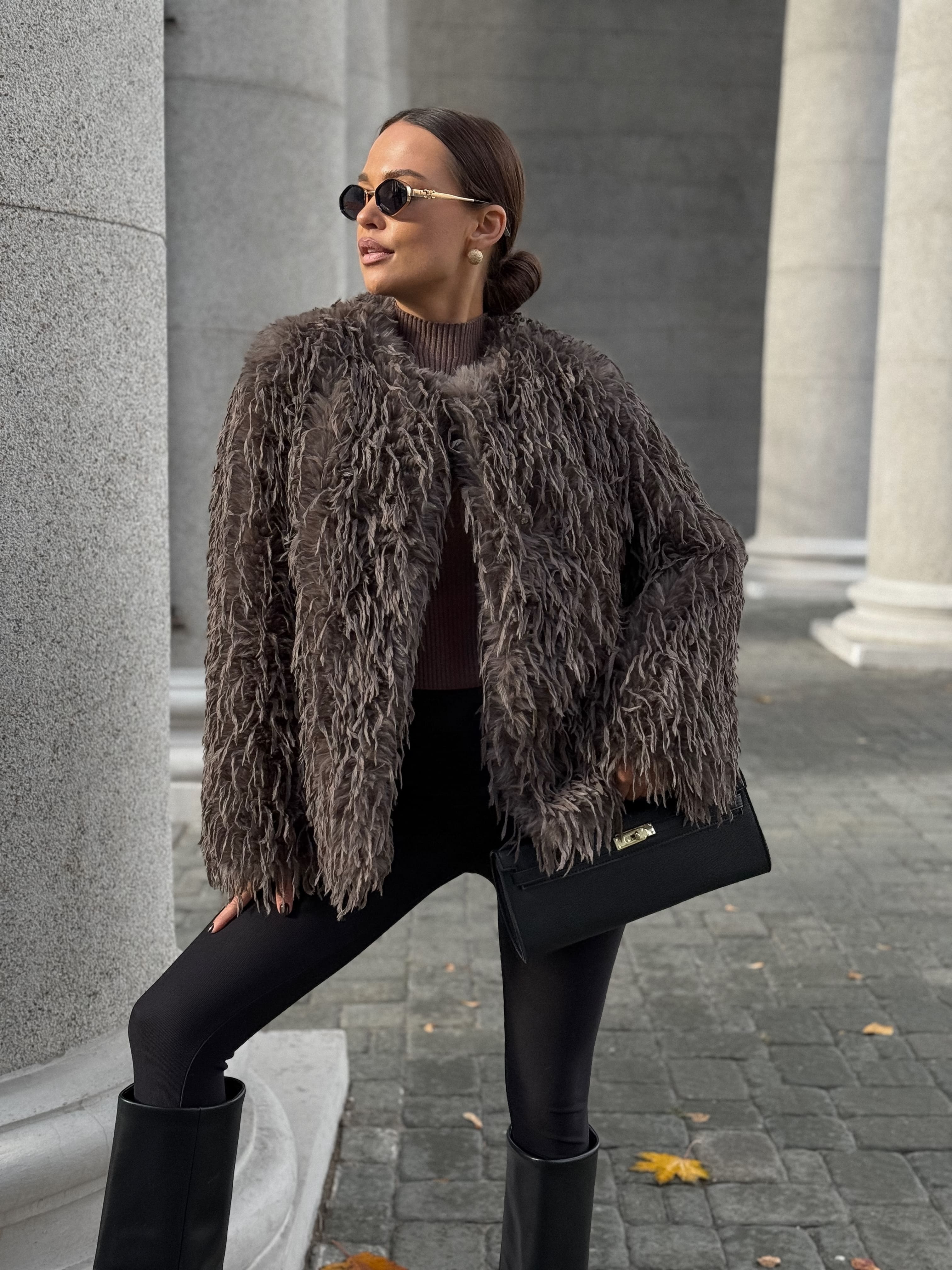 Бомбер укороченный с перьями, шоколадный