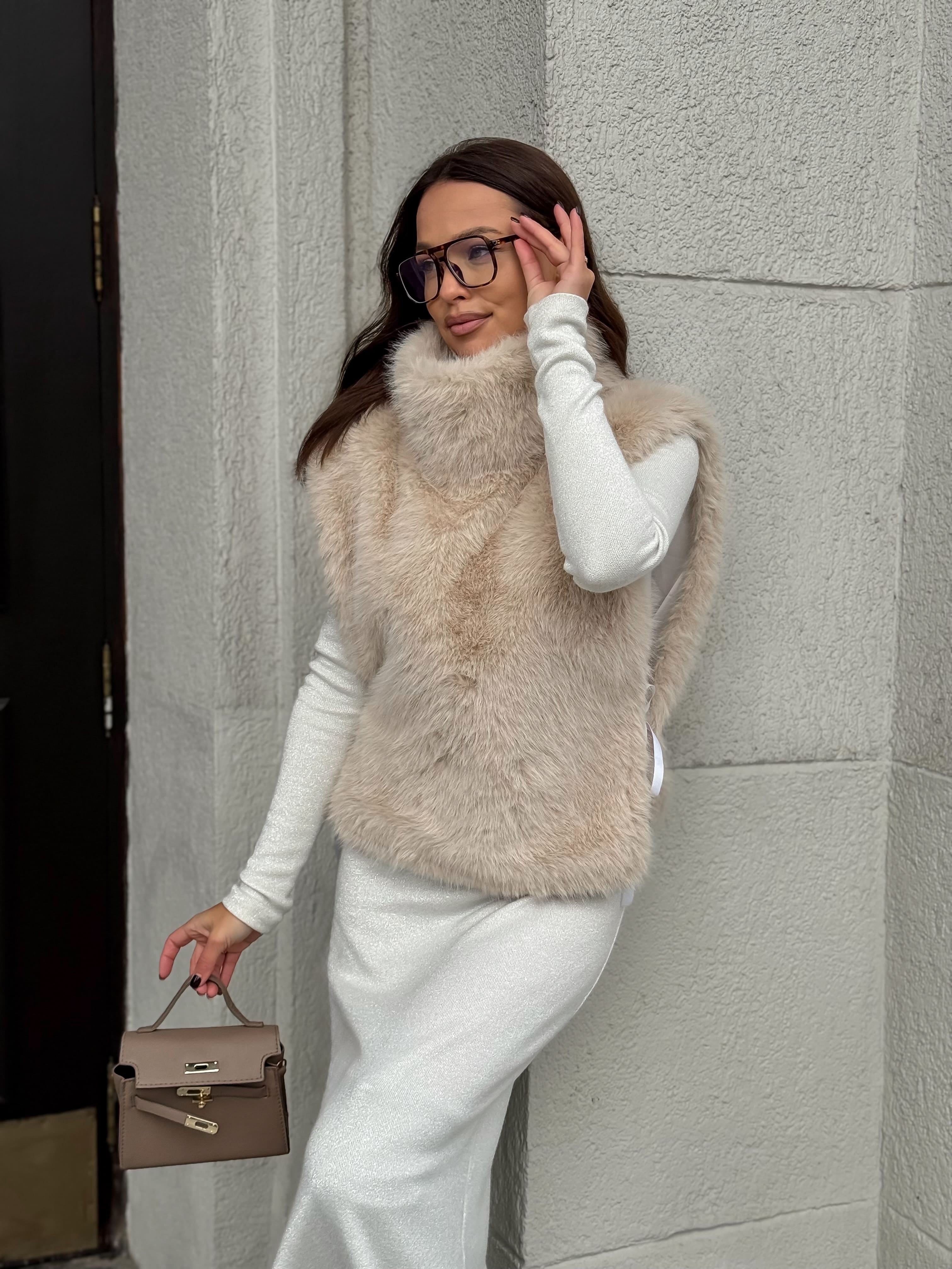 Манишка из эко-песца, бежевый