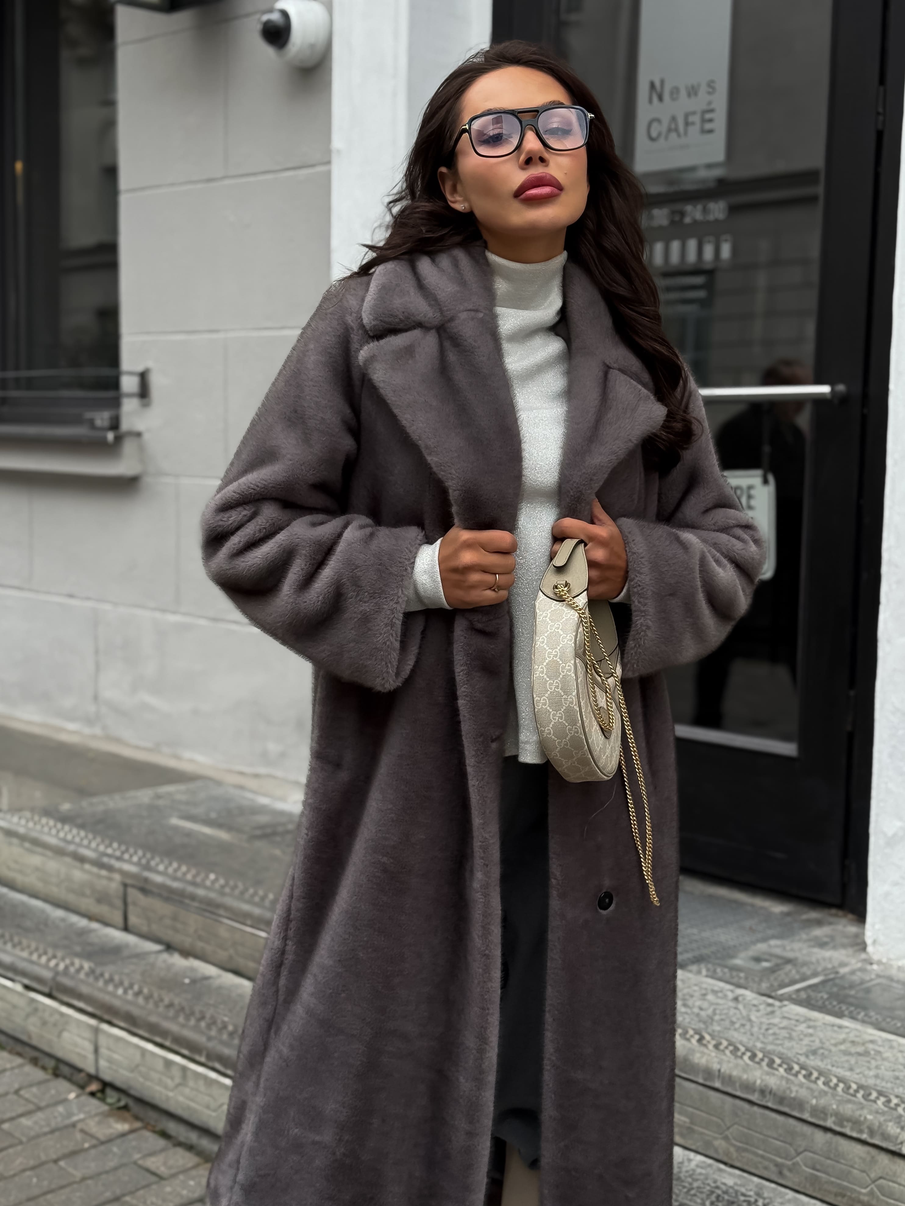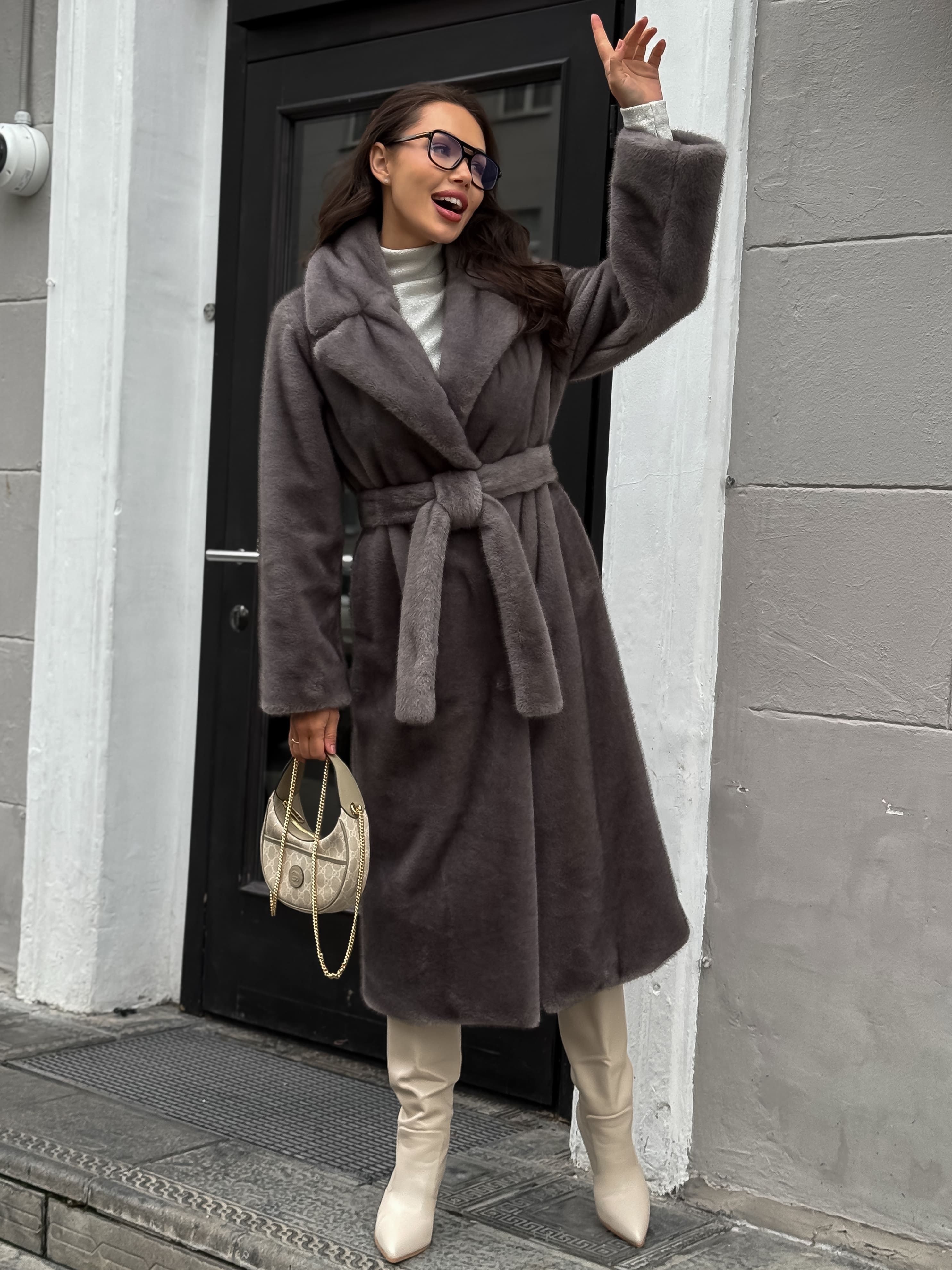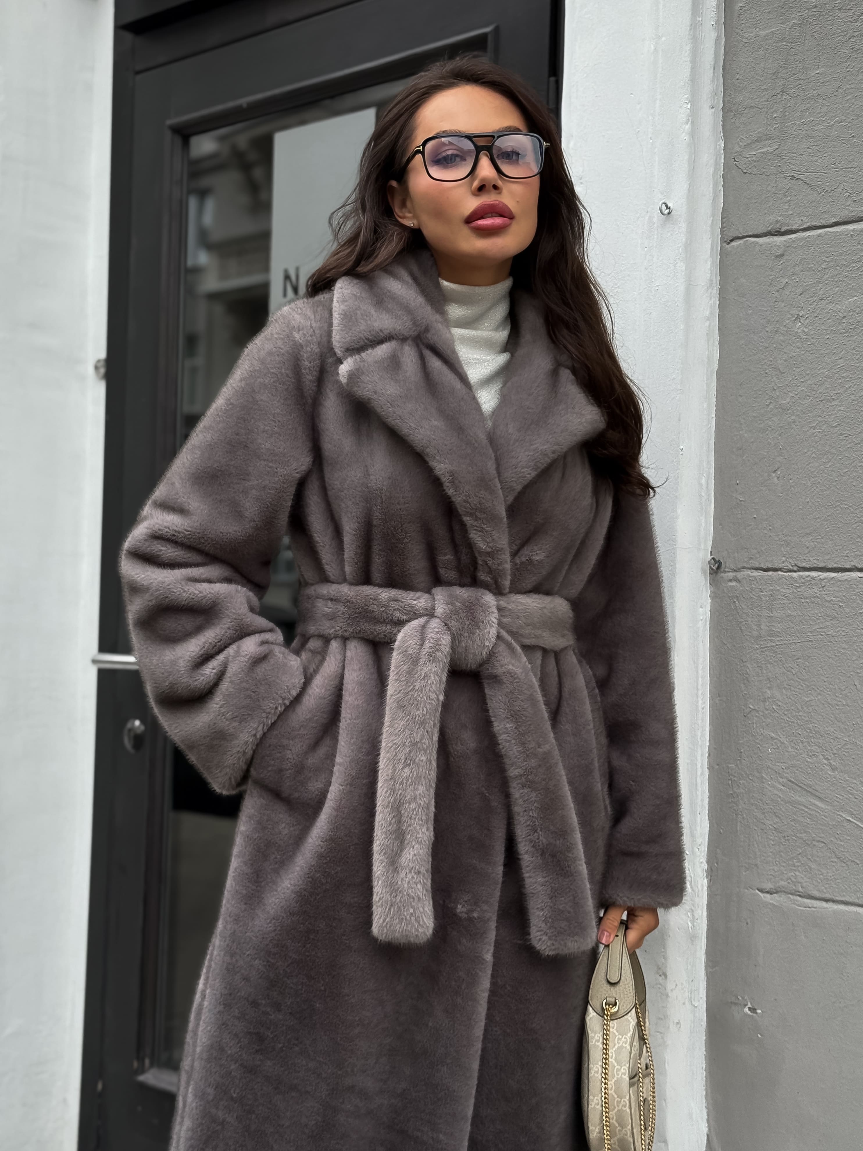 Шубка "волк" в макси длине, графитовый