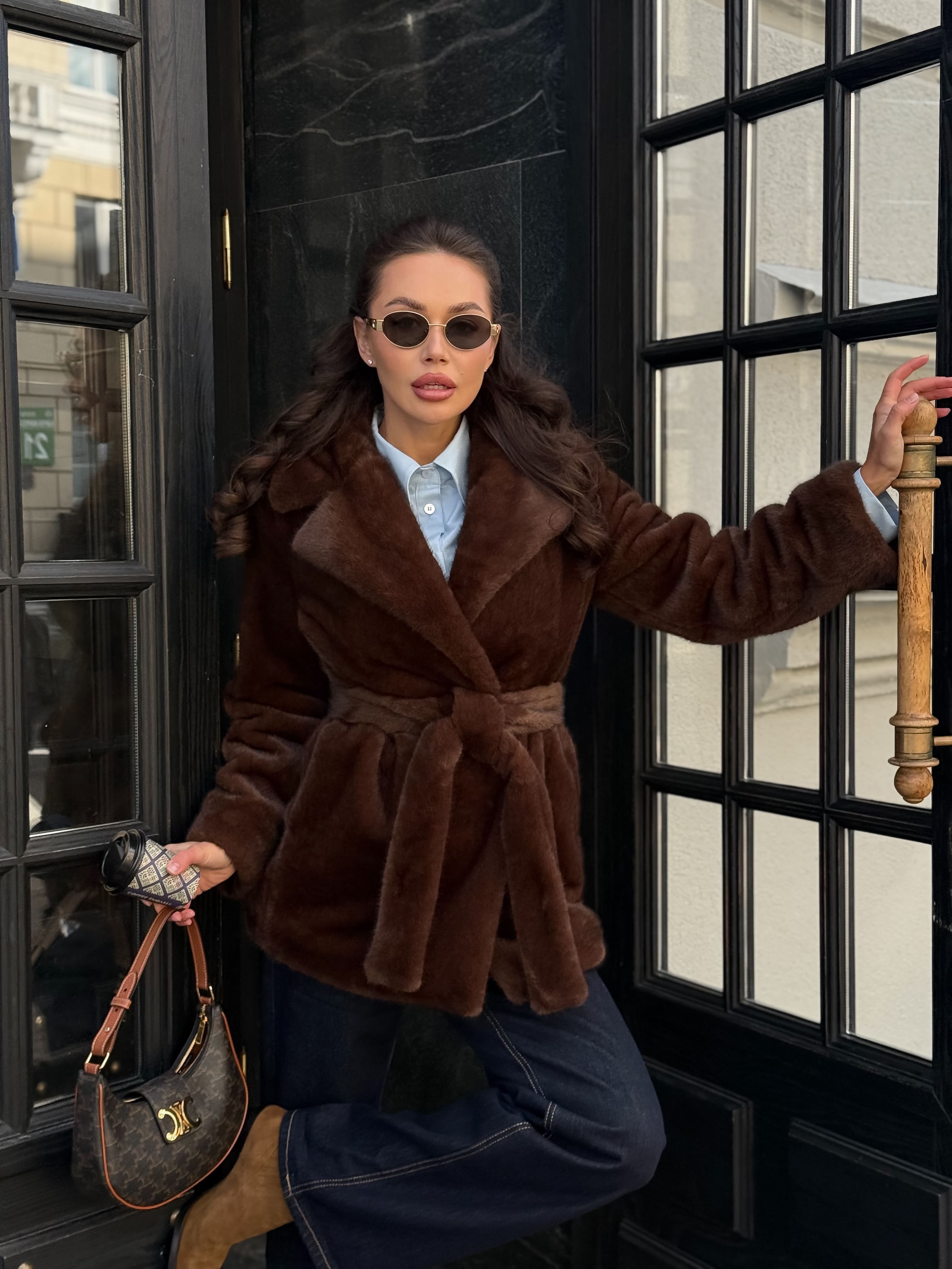 Шубка "волк" в средней длине, кофейный