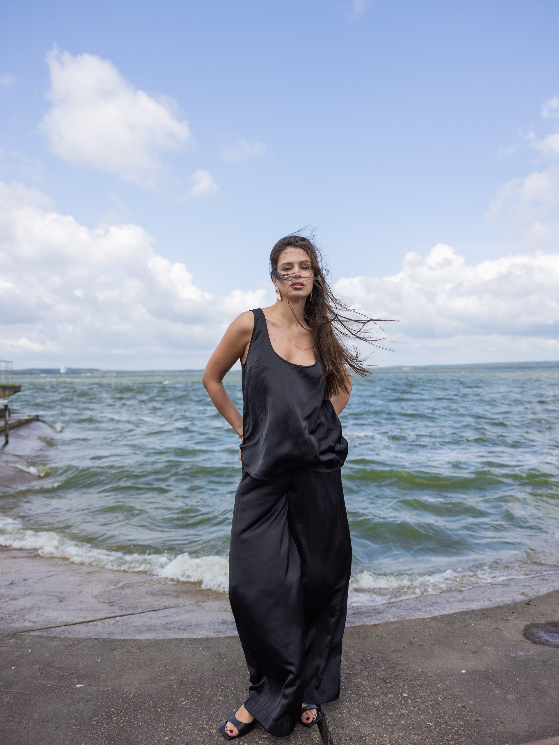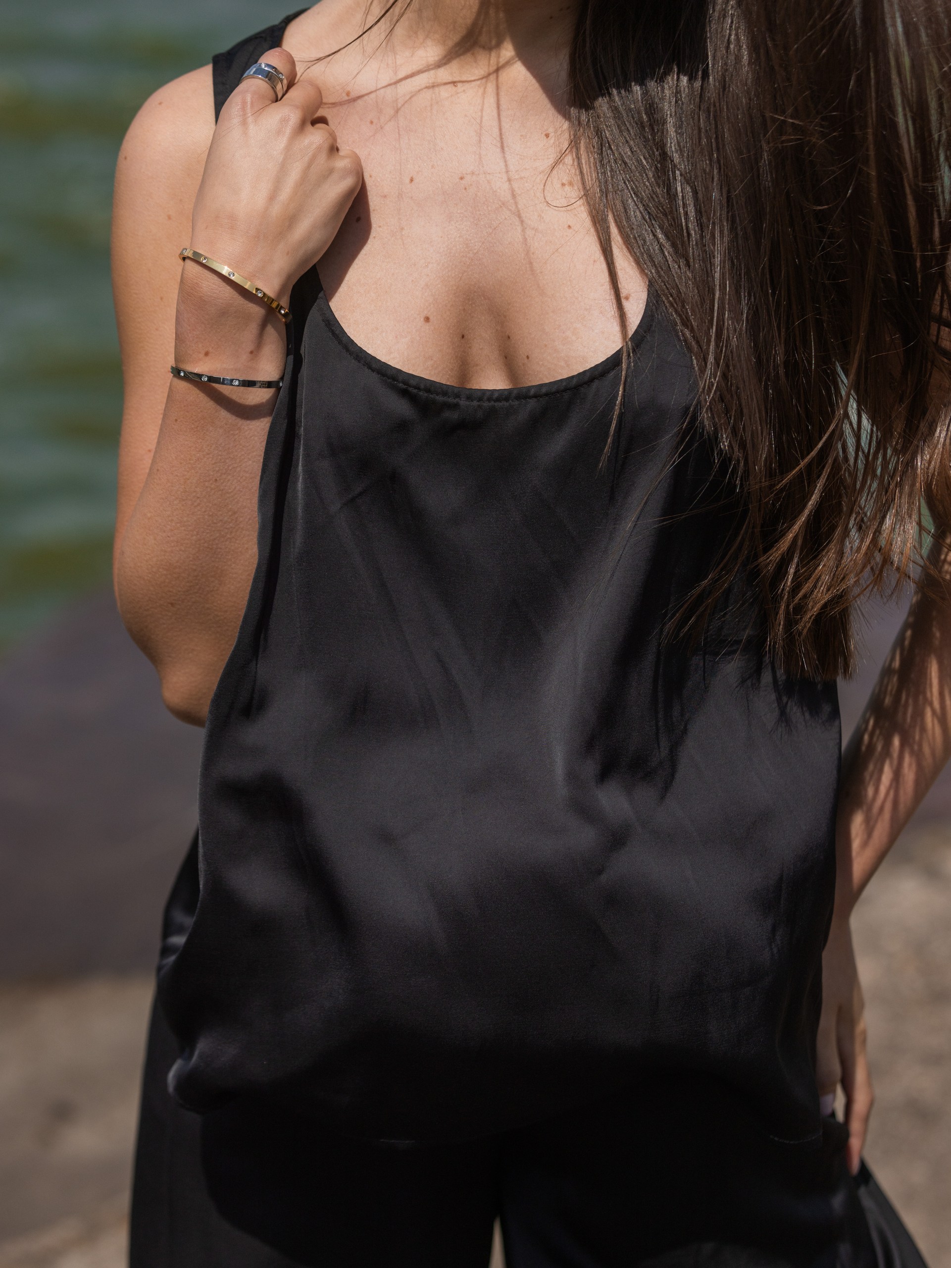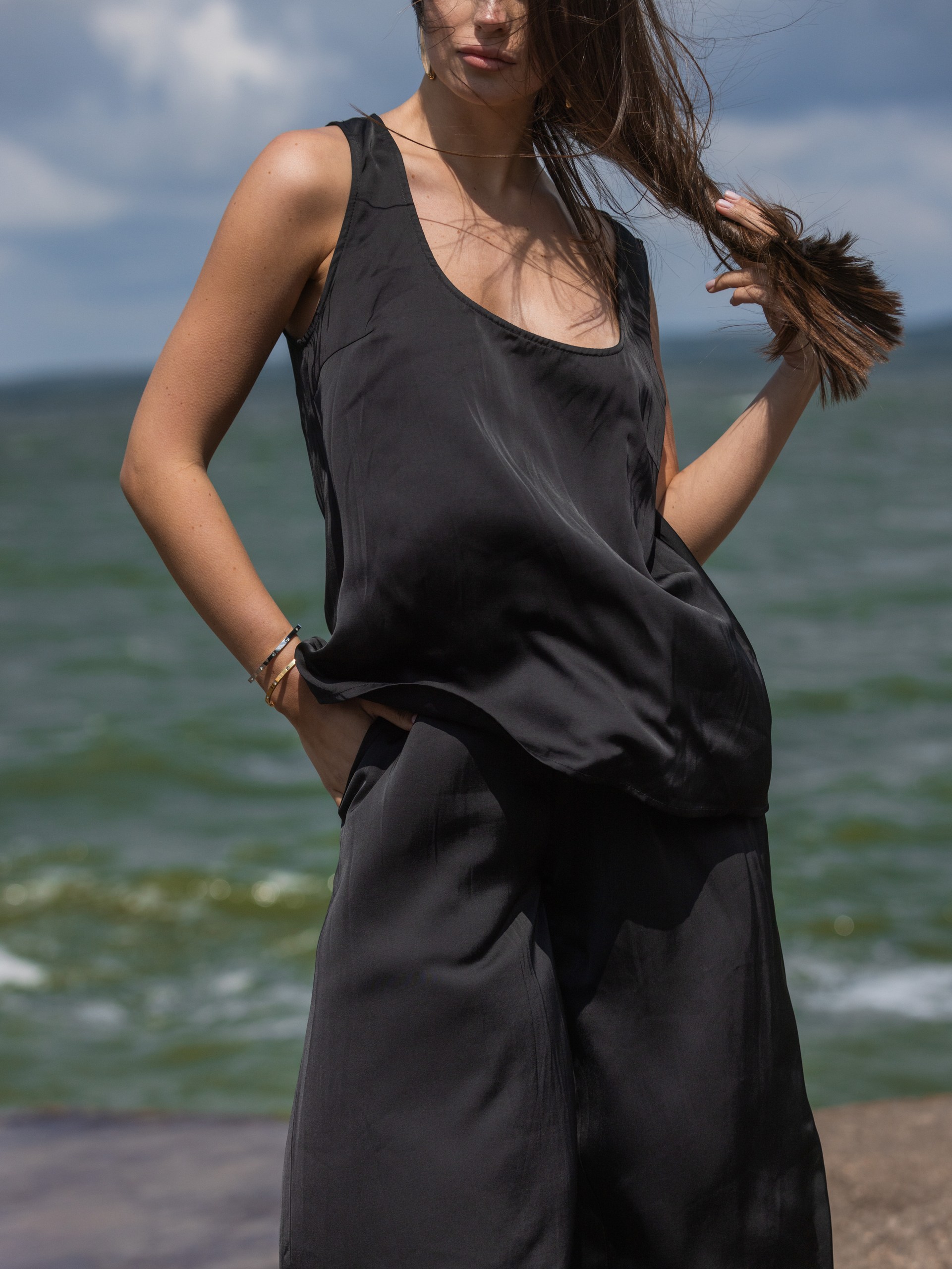 Топ на бретелях в черном цвете из атласа