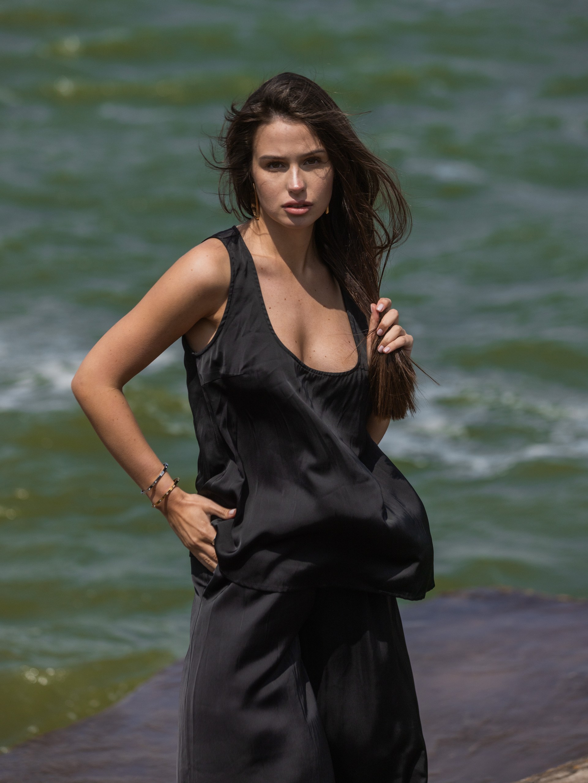 Топ на бретелях из атласа, черный