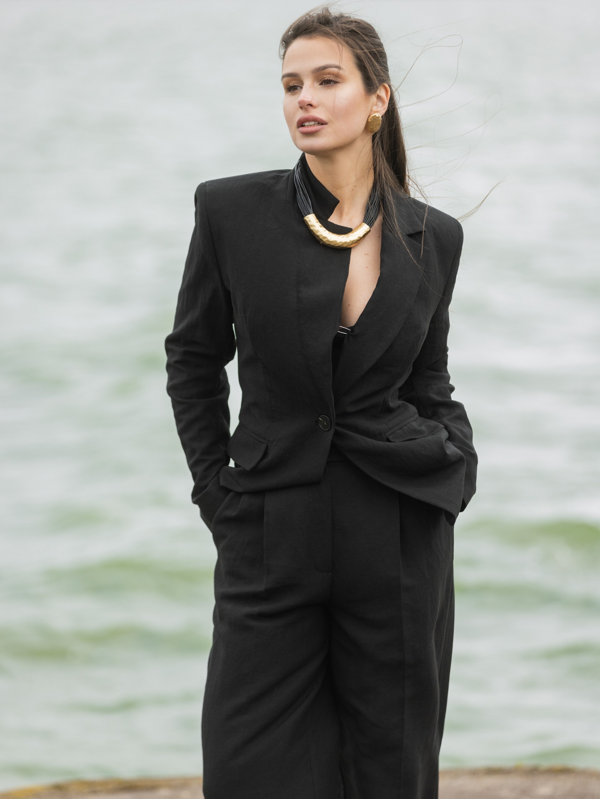 Жакет с карманами в черном цвете