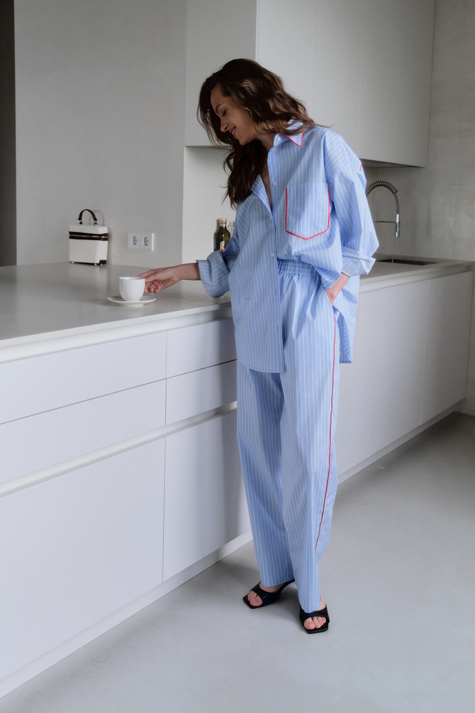 Брюки-палаццо с резинкой на талии в полоску в голубом цвете