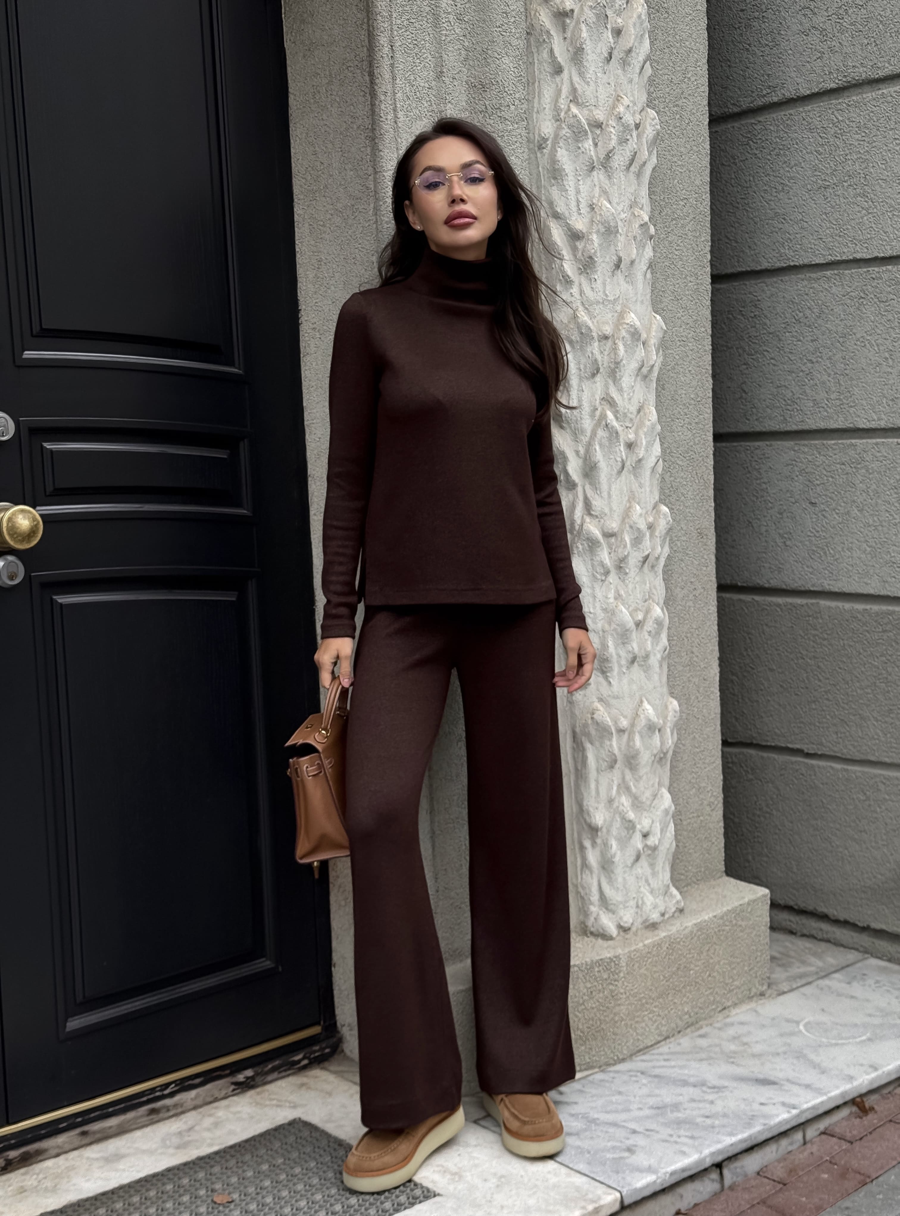 Джемпер из ангоры с разрезами, шоколадный