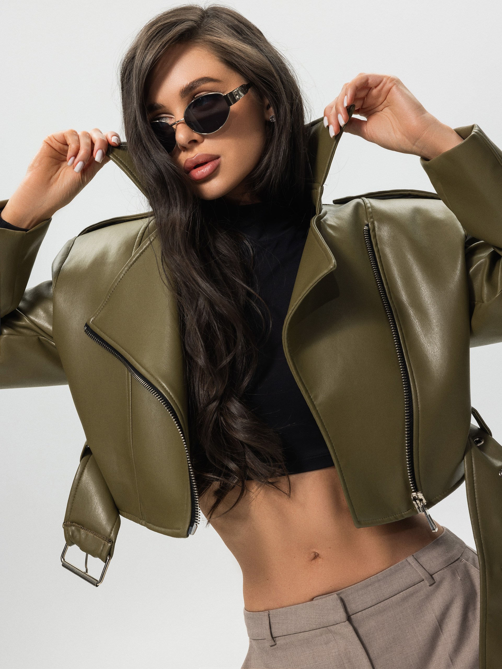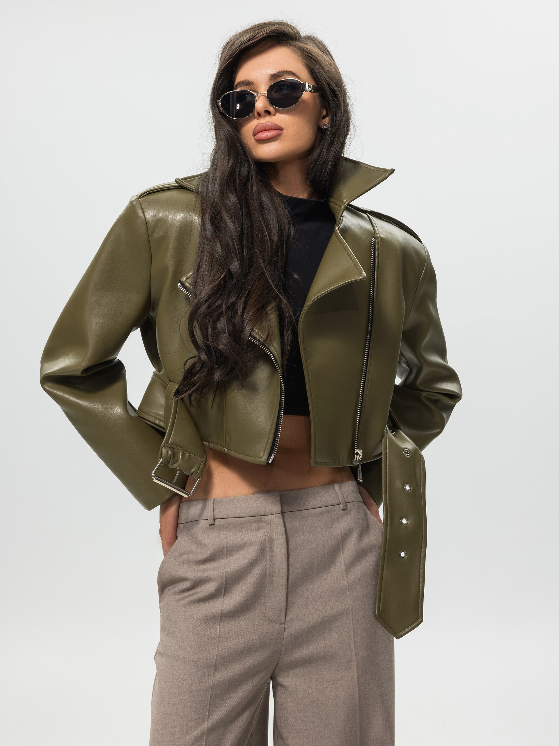 Куртка из экокожи, оливковый