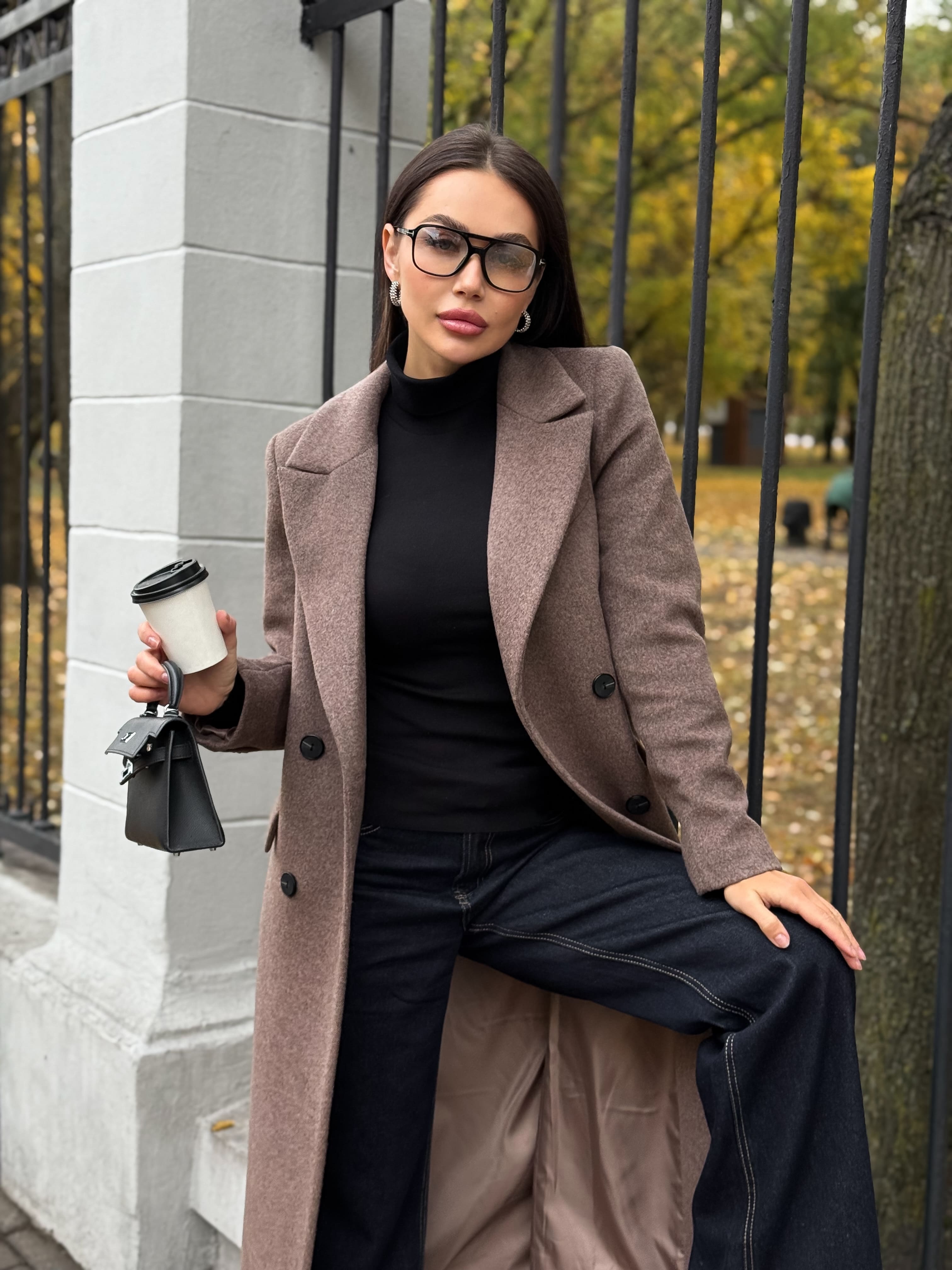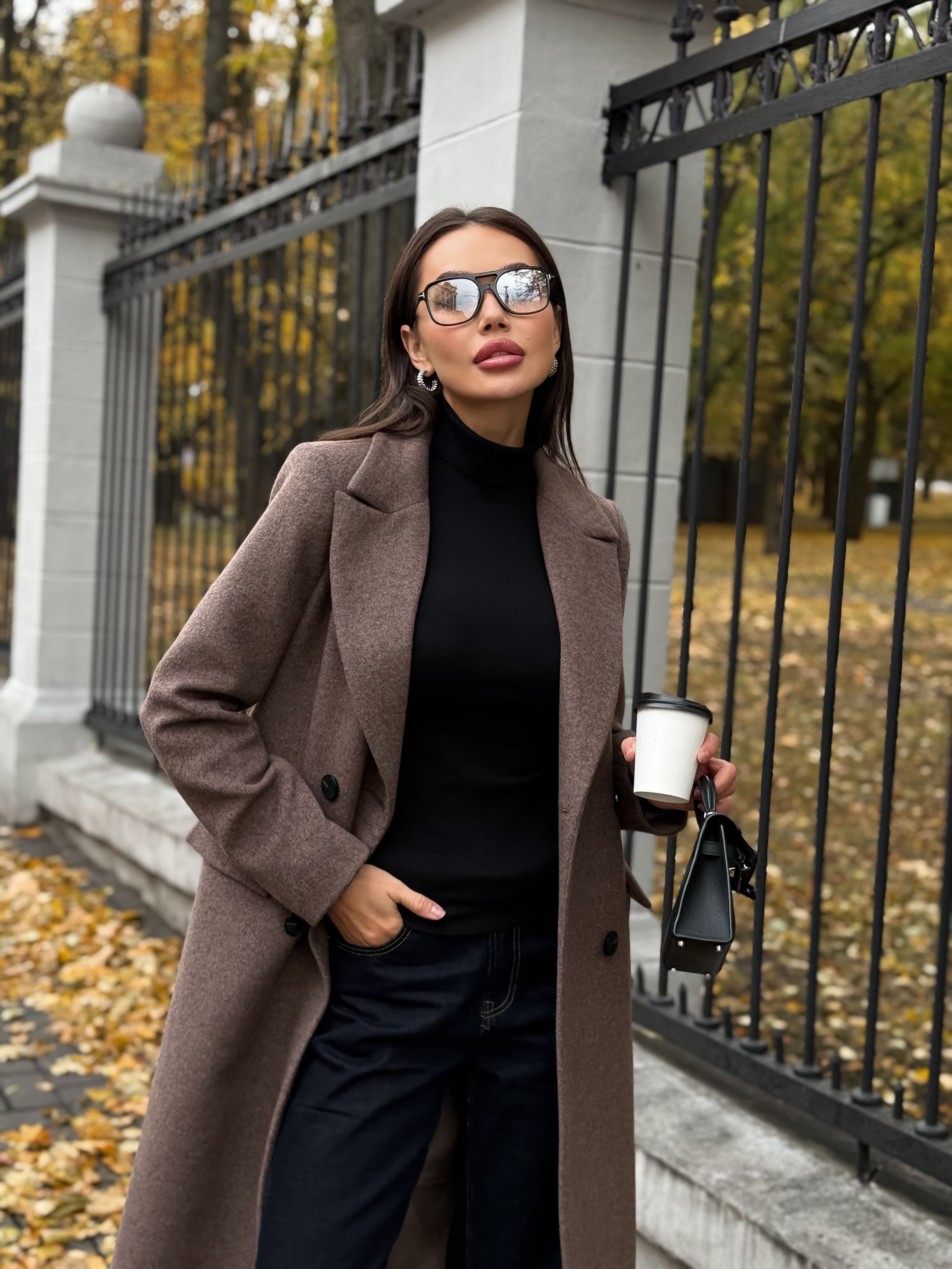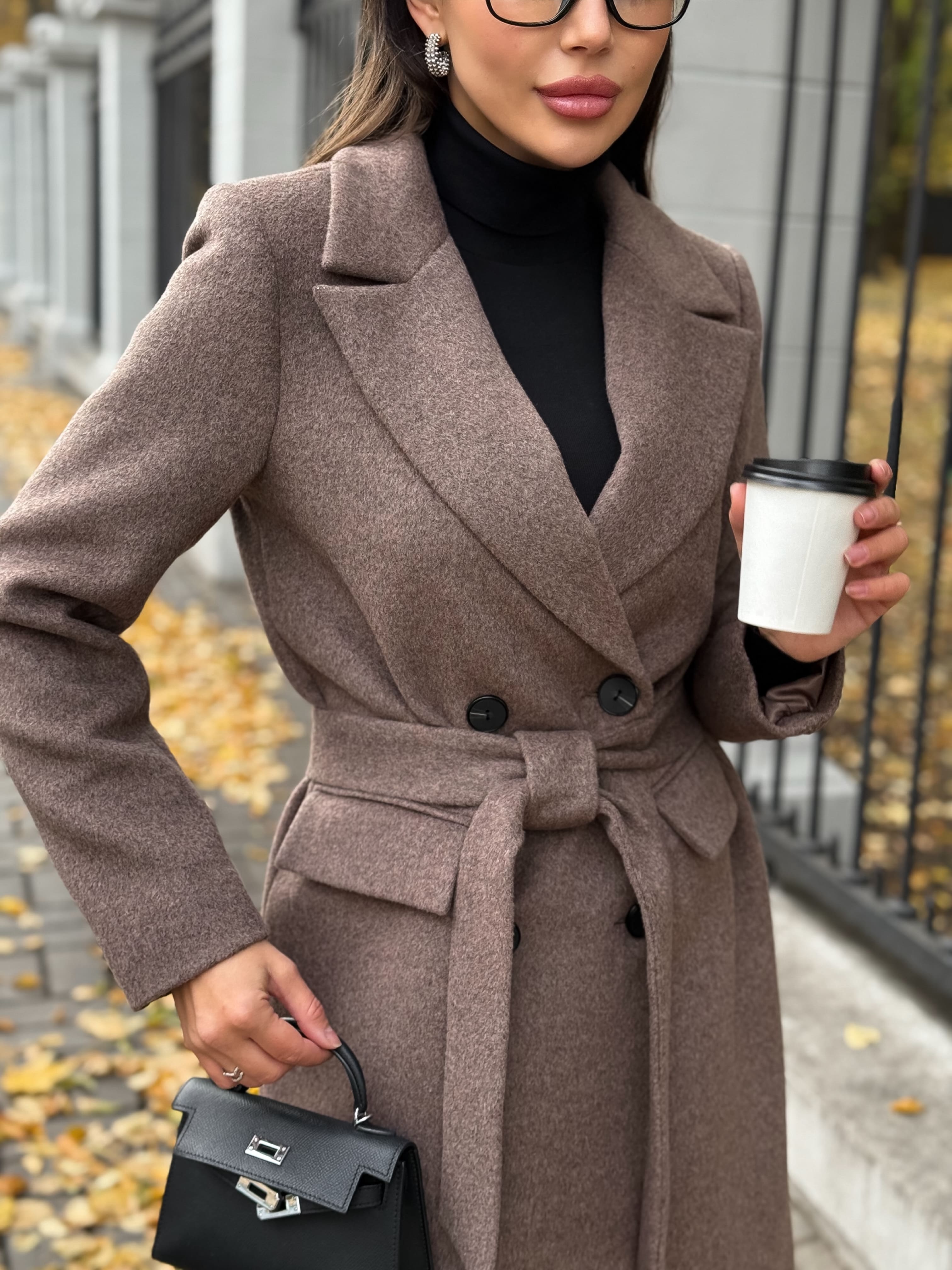 Пальто из шерсти, кофейный