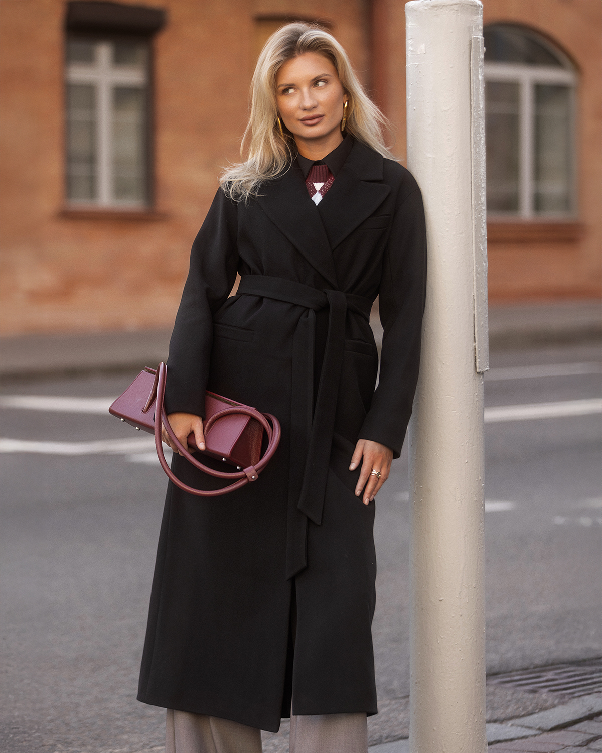 Пальто из шерсти в длине макси, черный