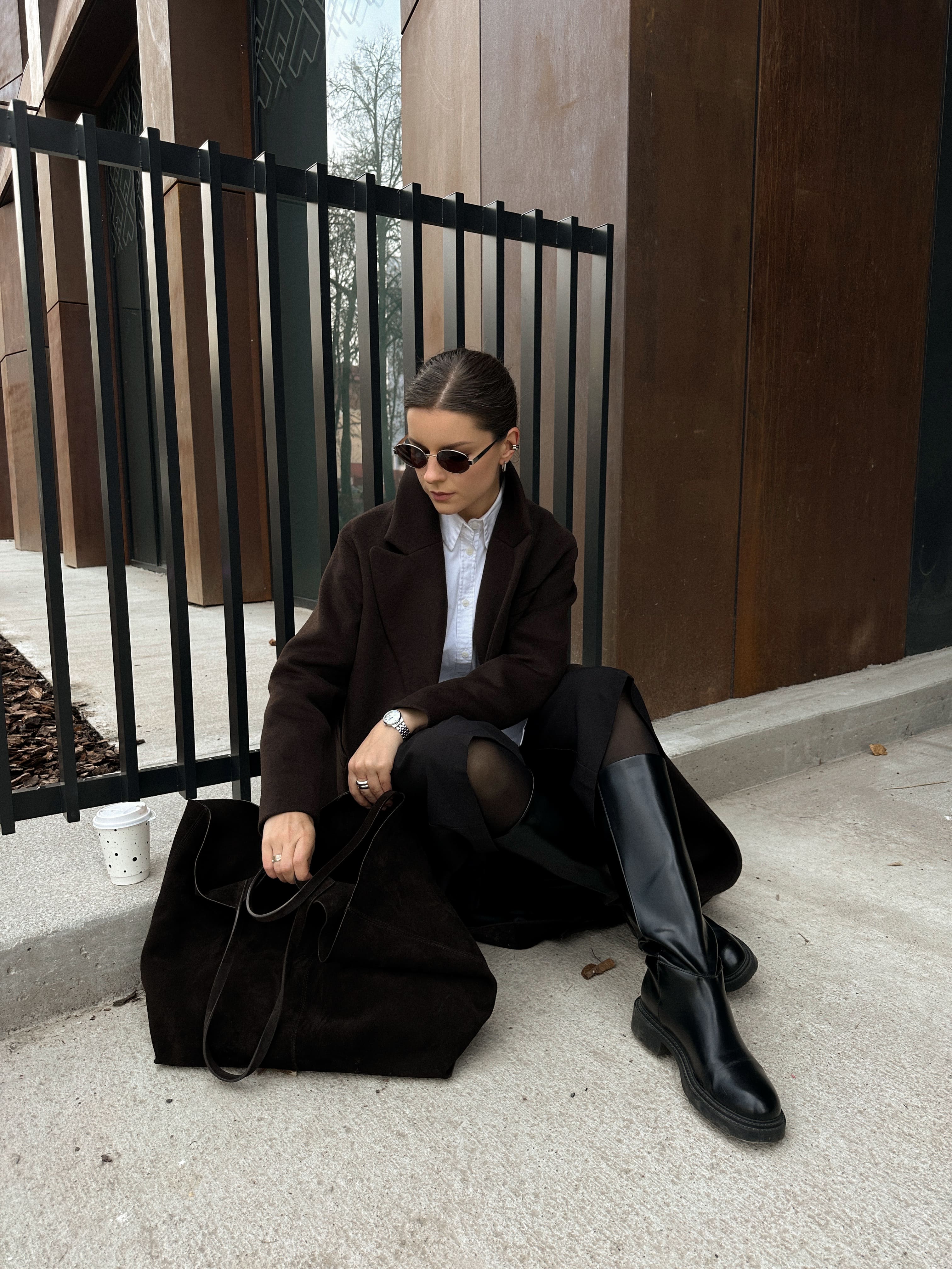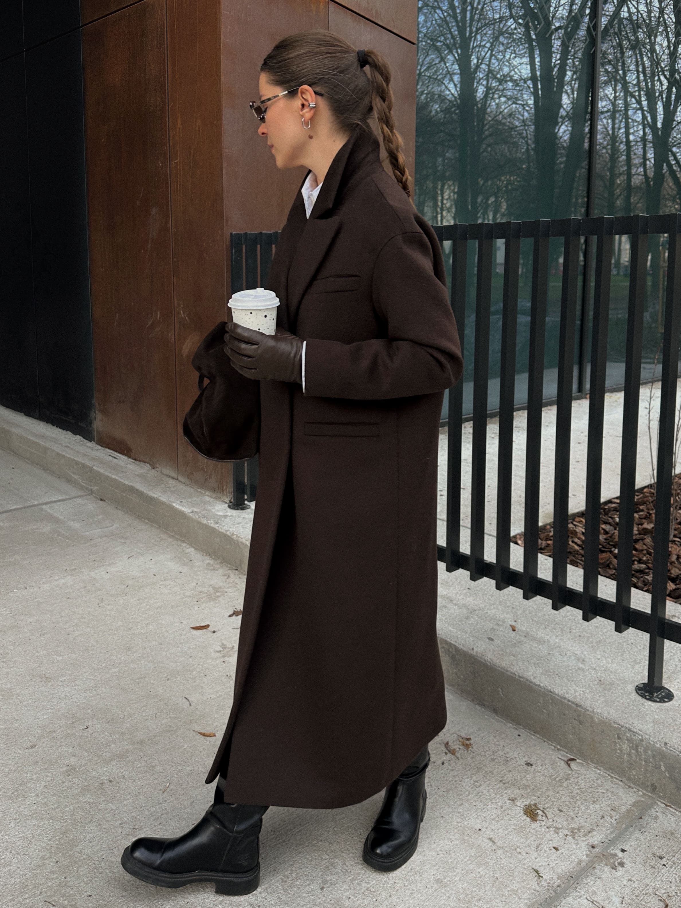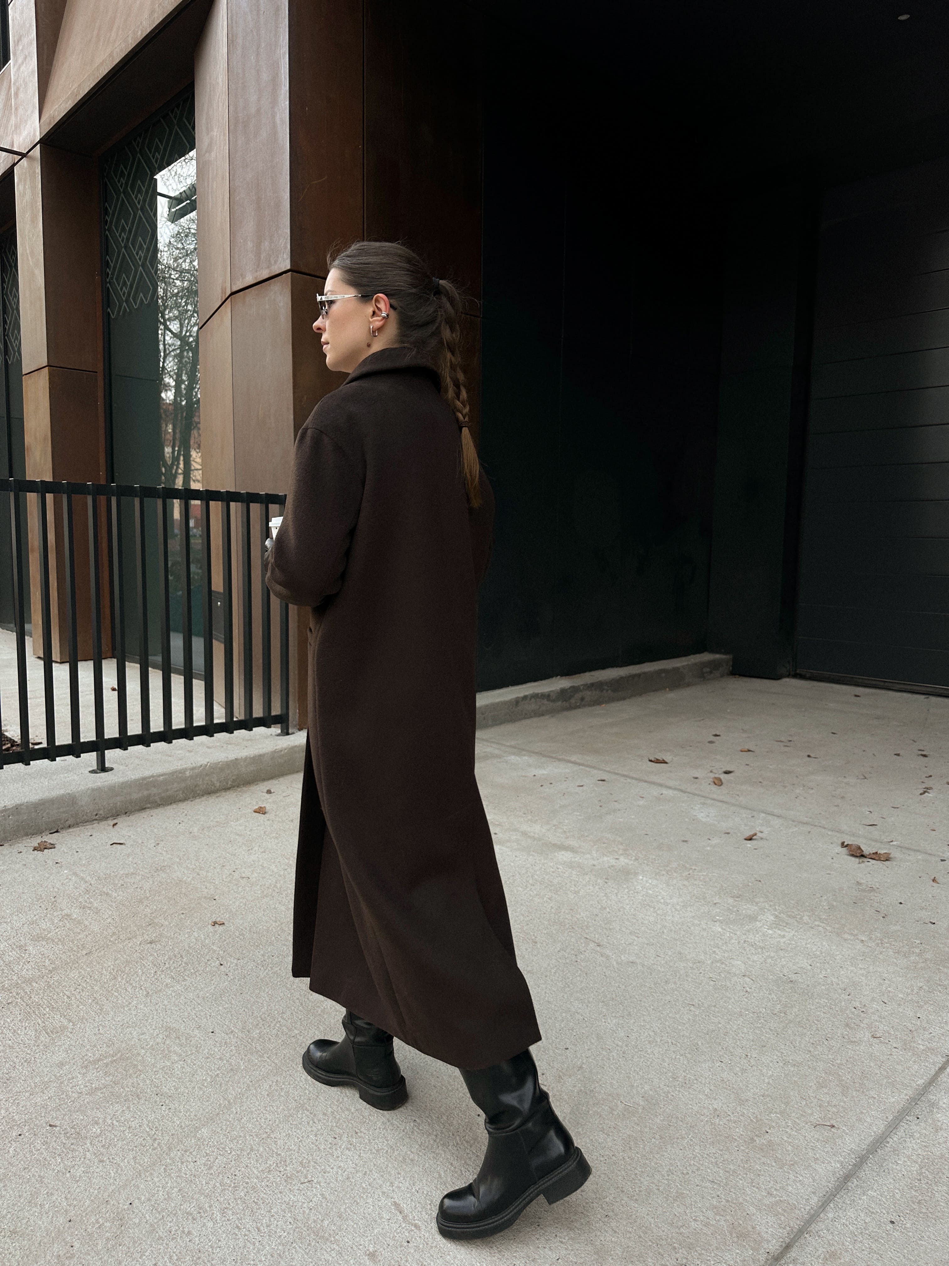Пальто из шерсти в длине макси, шоколадный