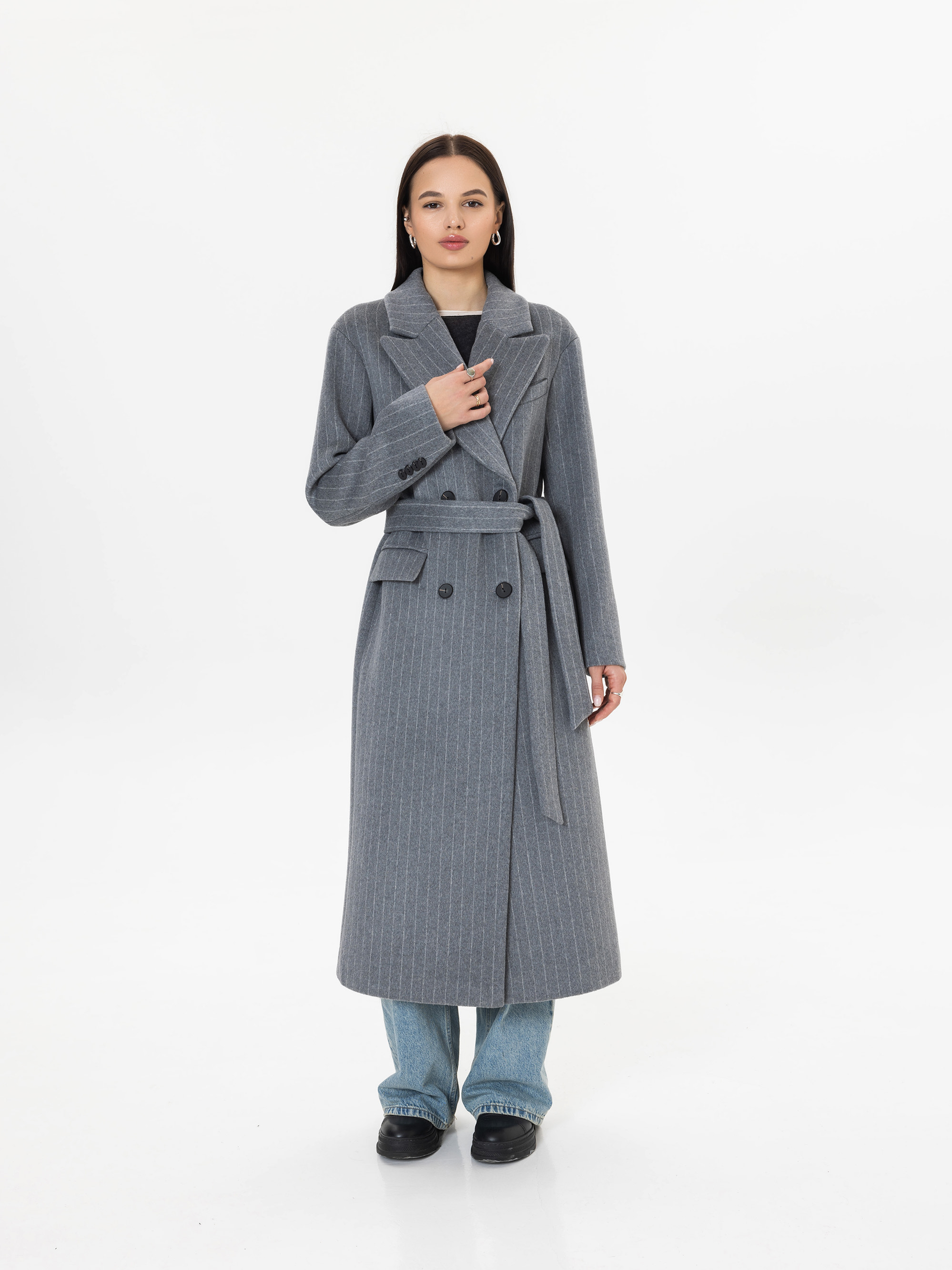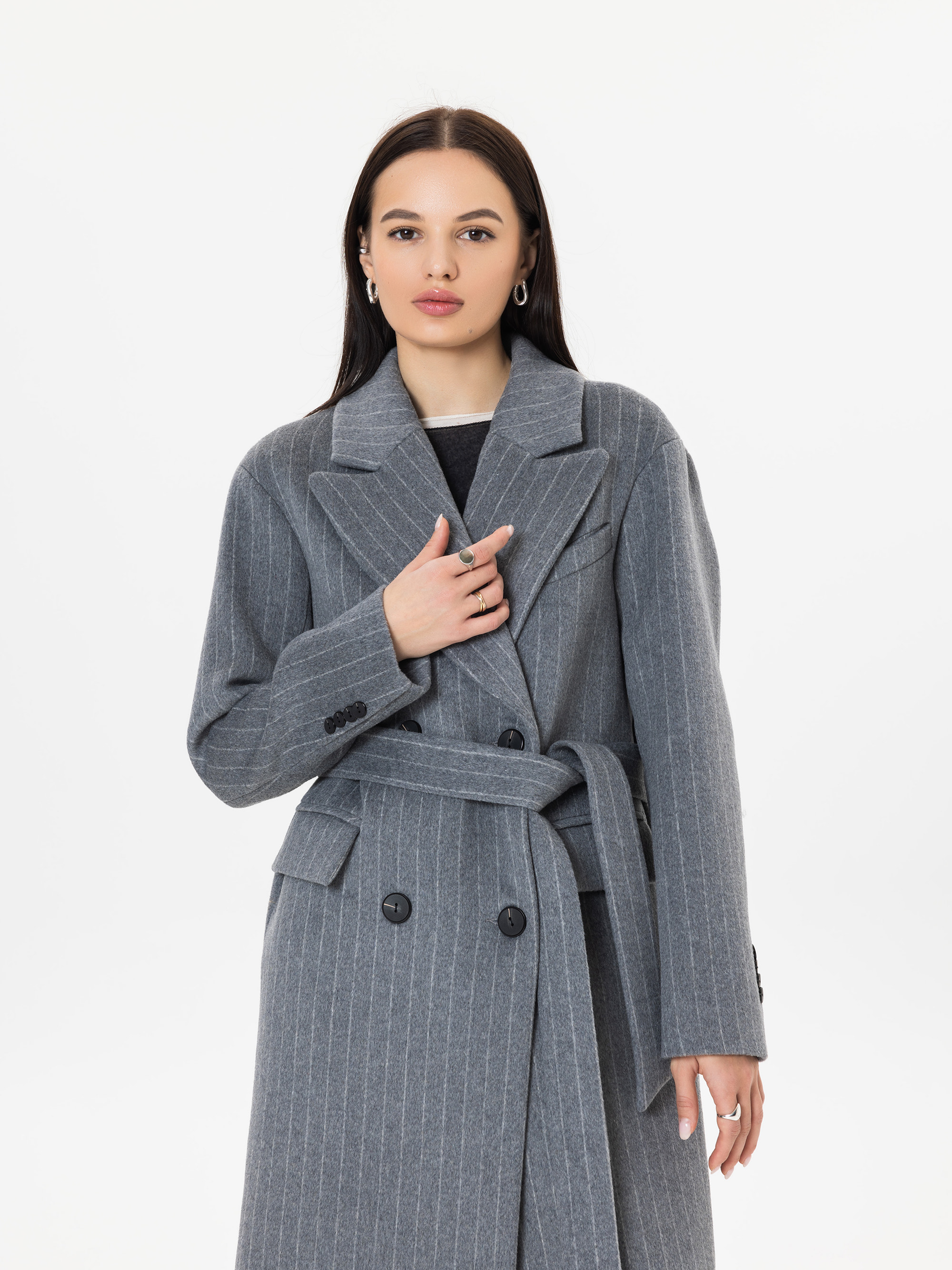 Пальто из шерсти в полоску, серый