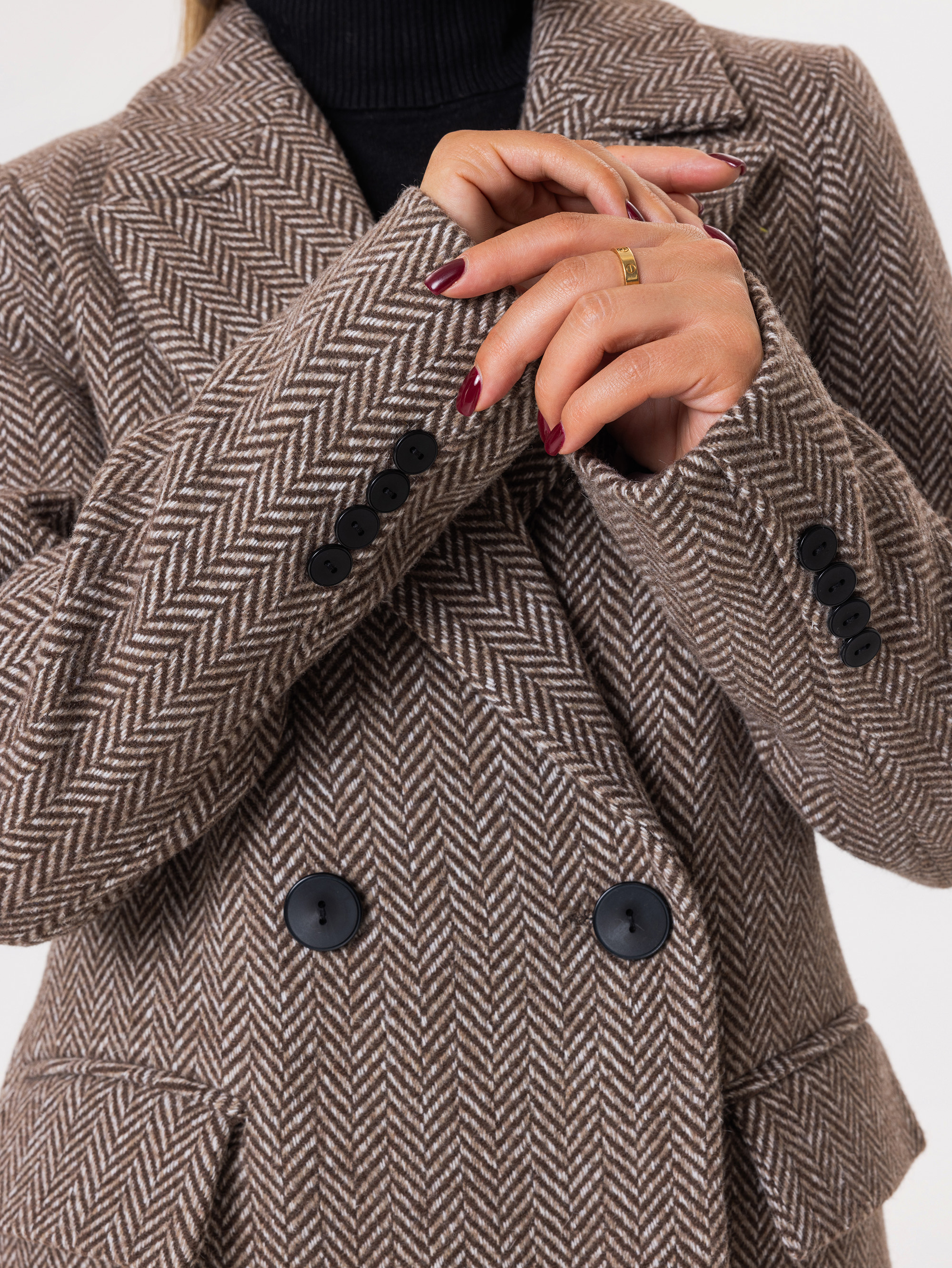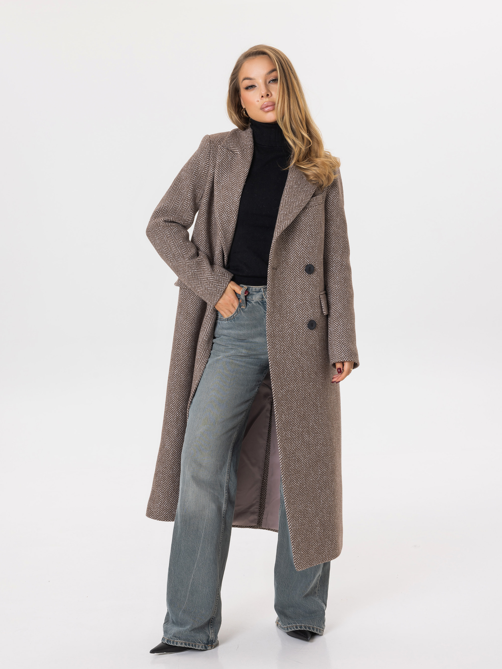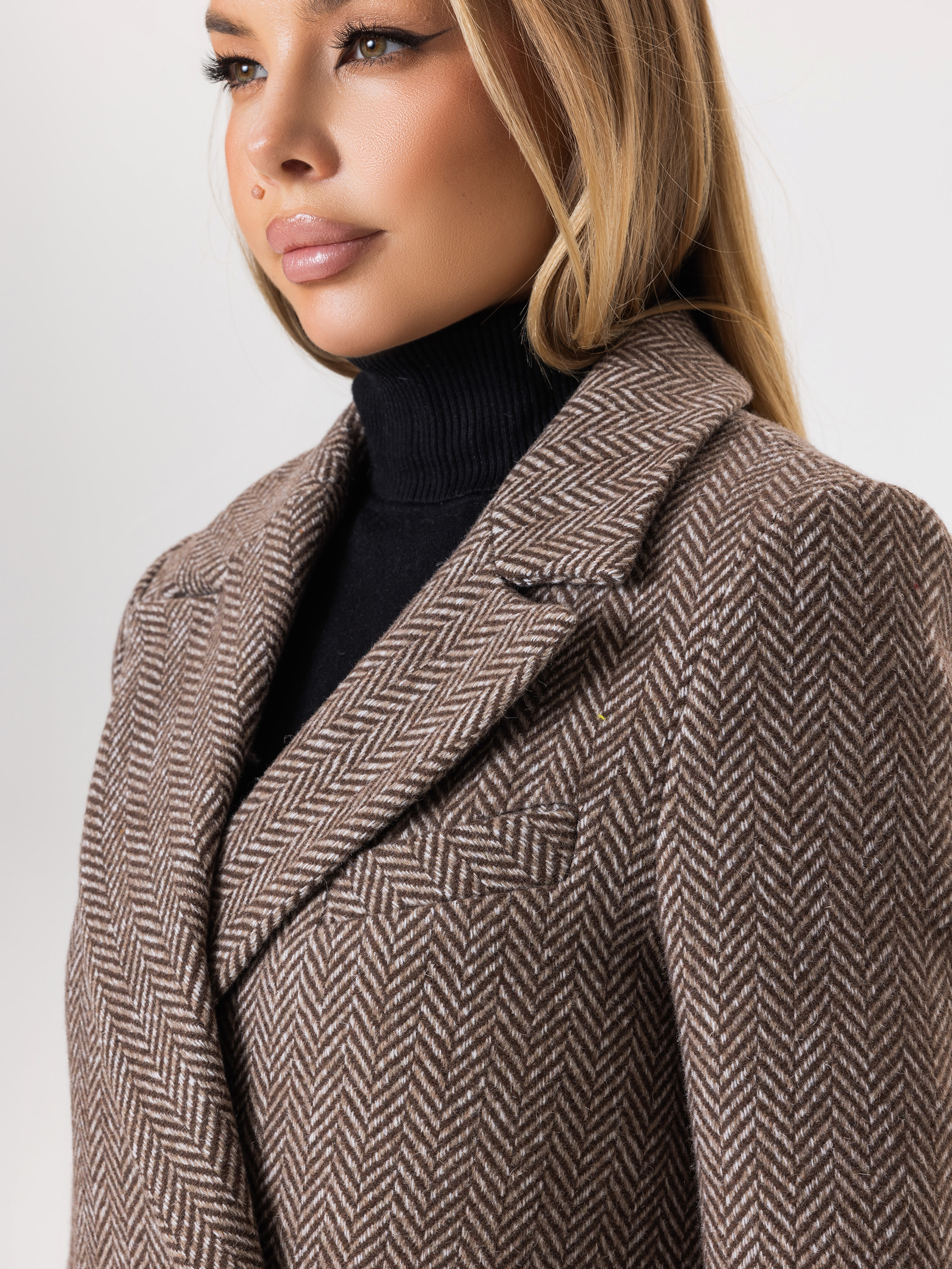Пальто из шерсти в твид, шоколад