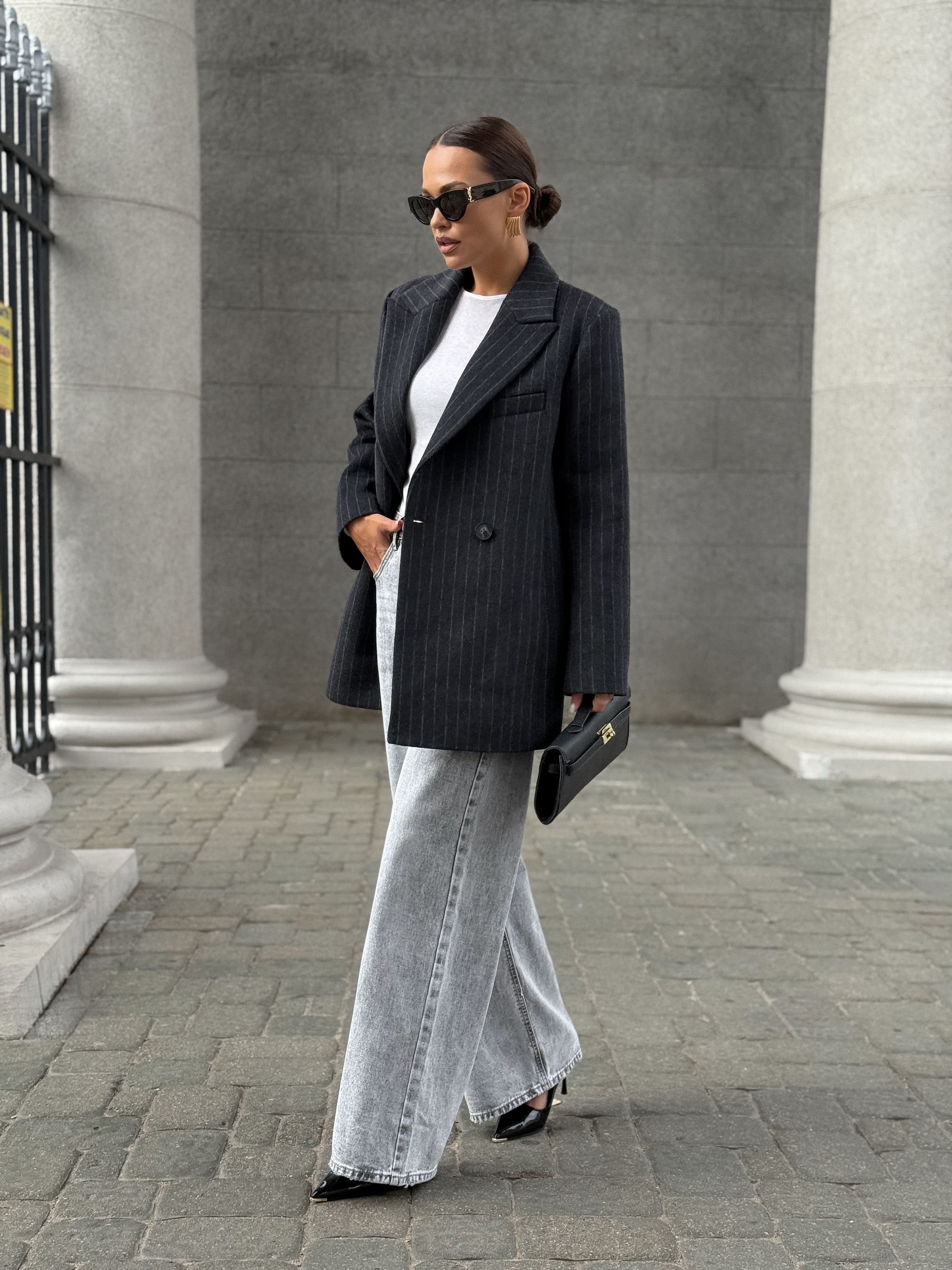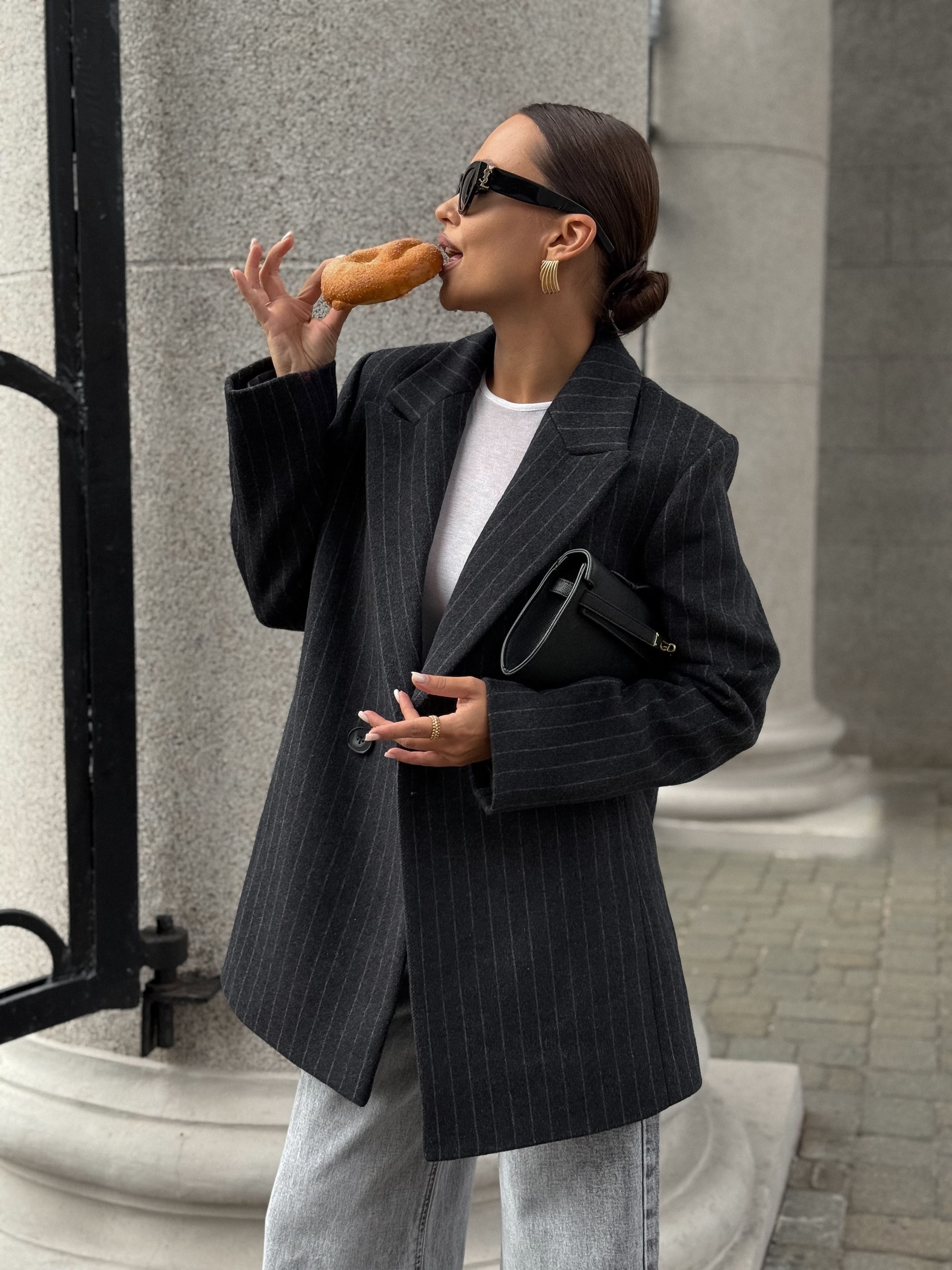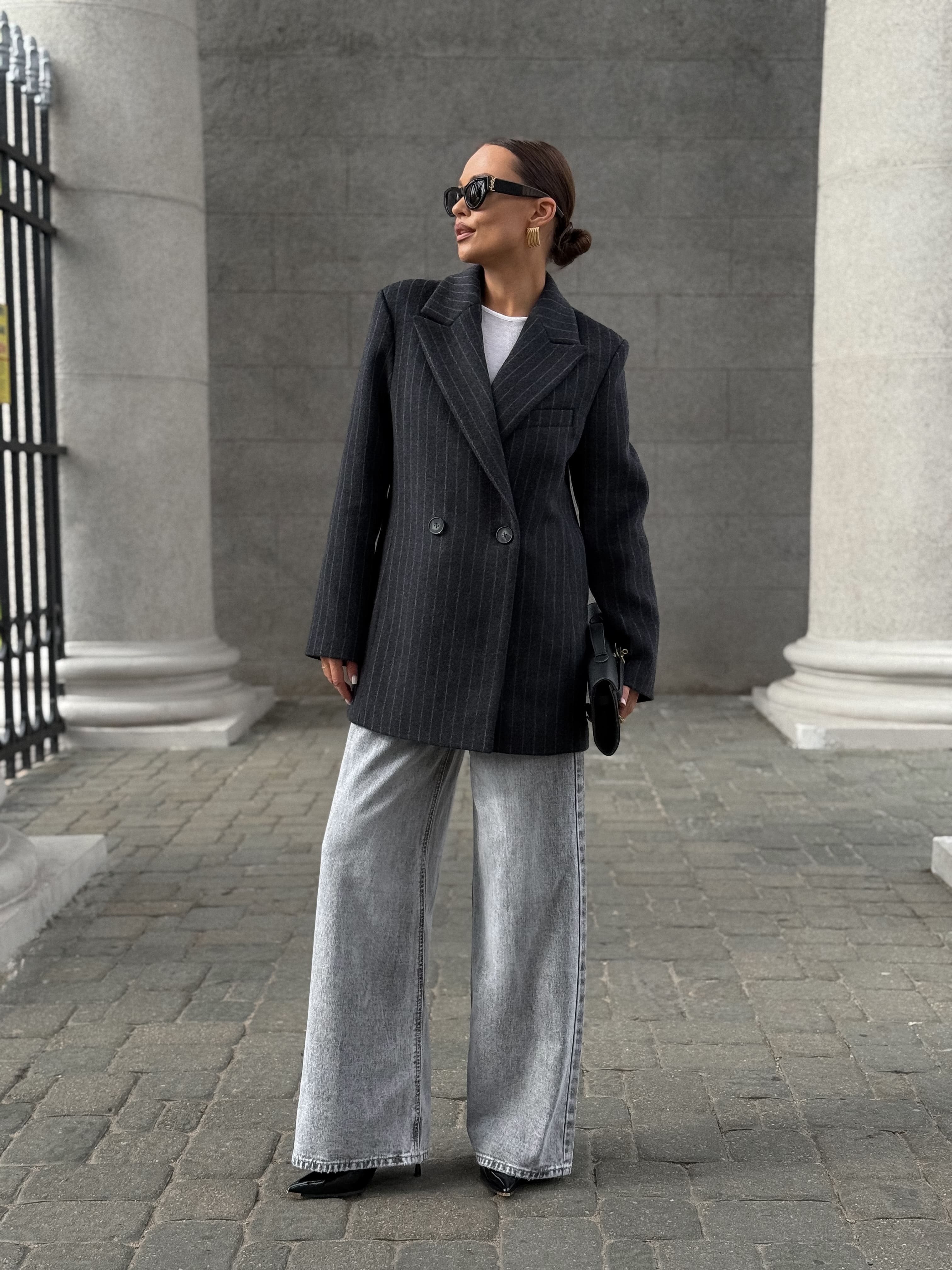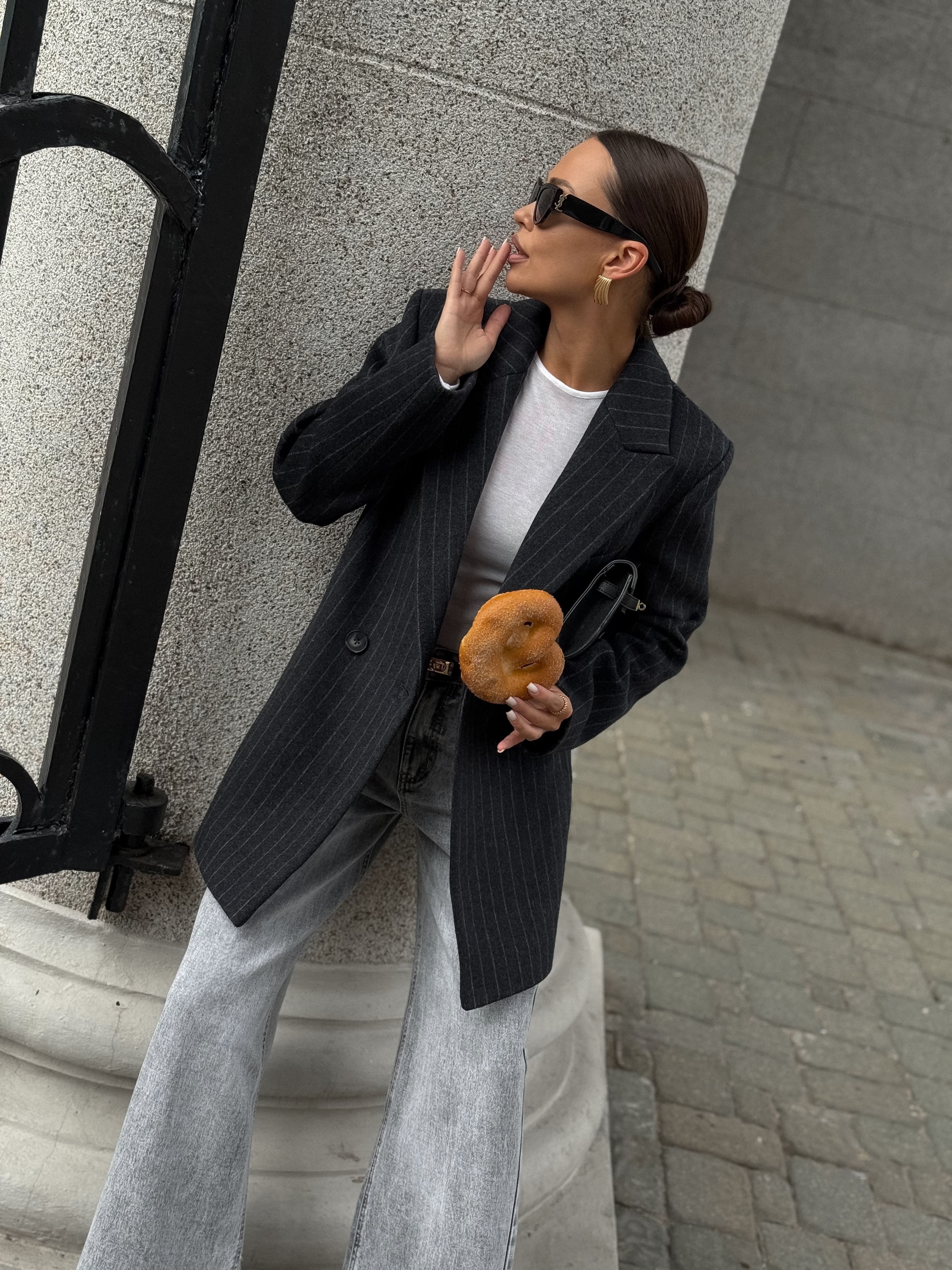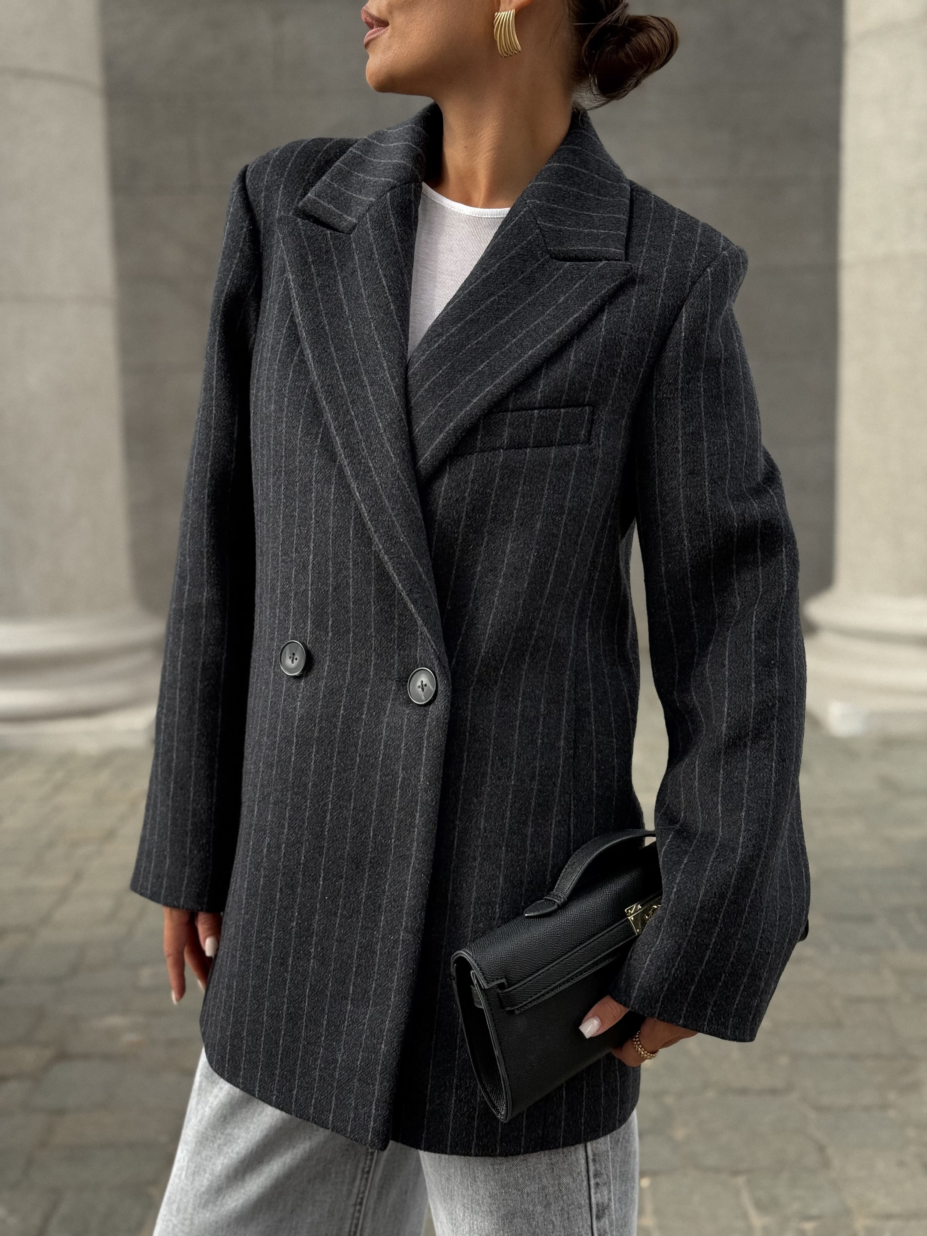 Полупальто из шерсти в полоску, серый