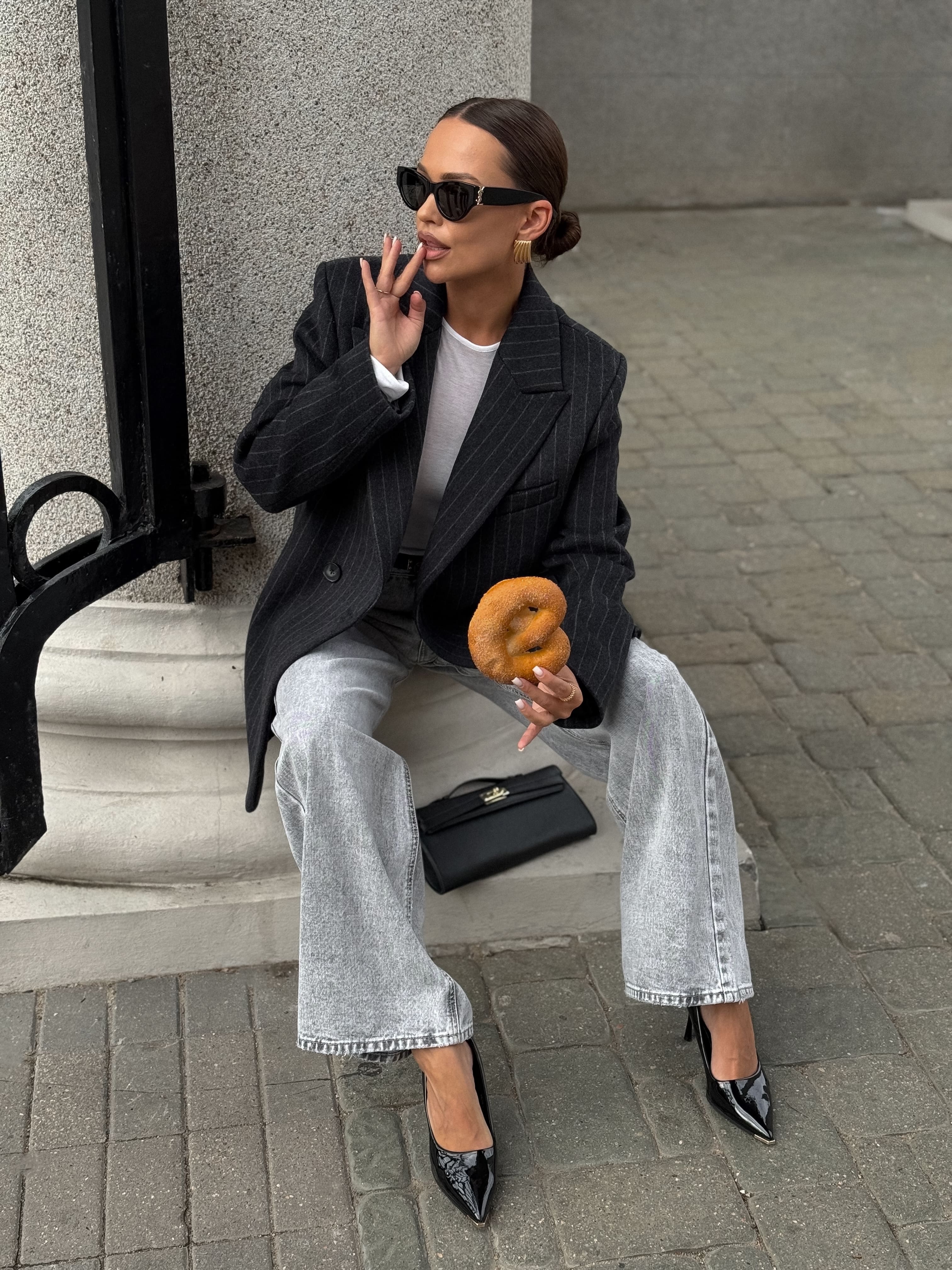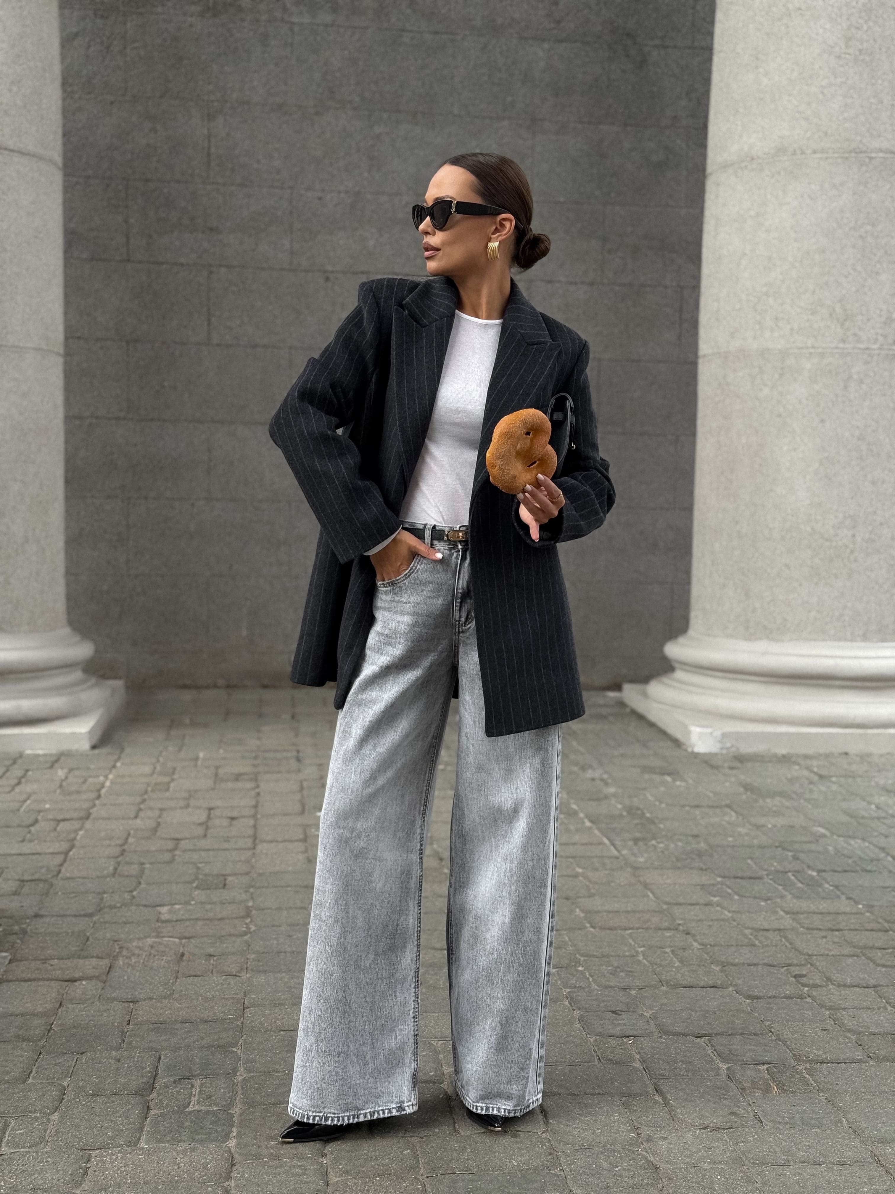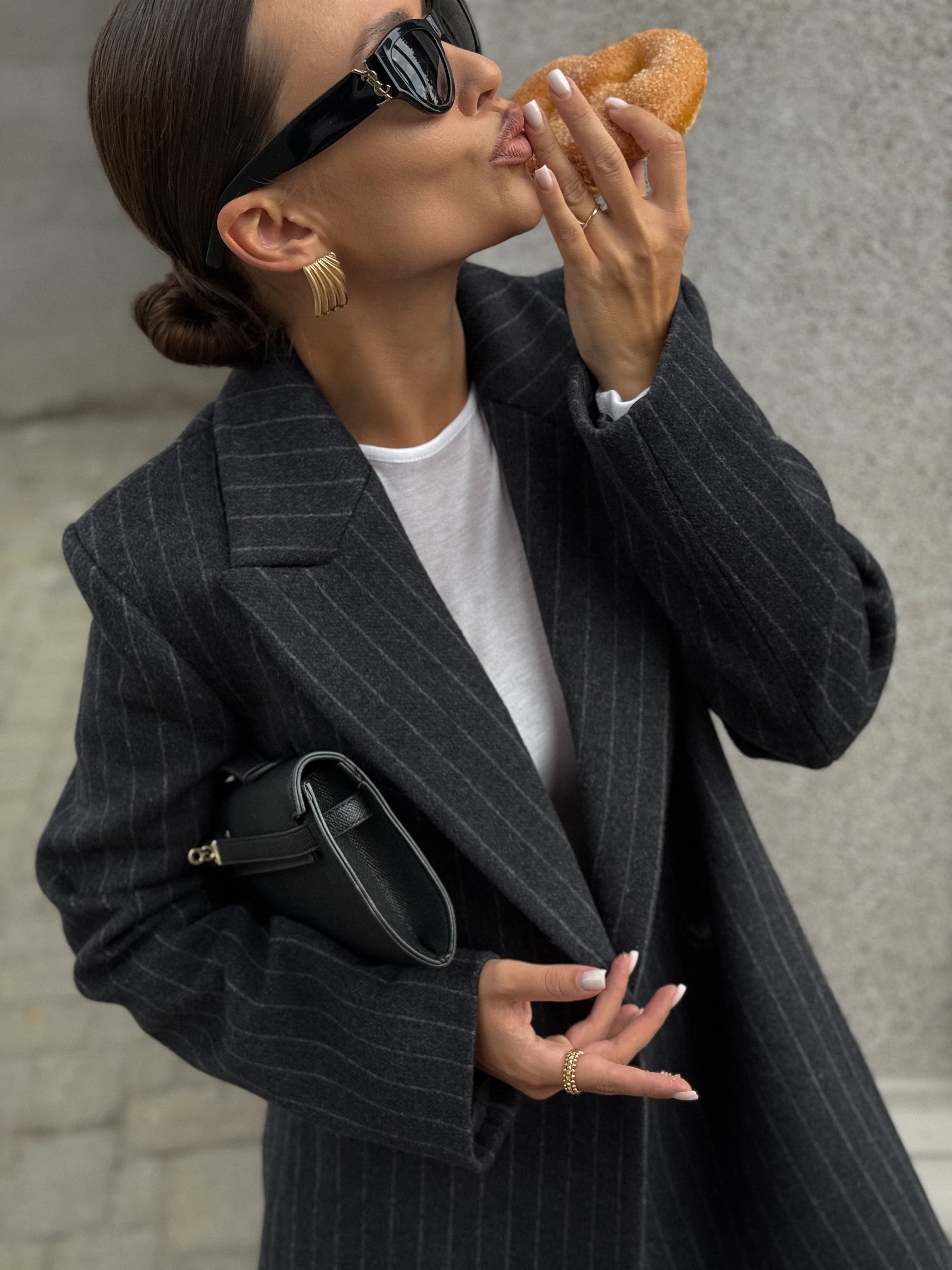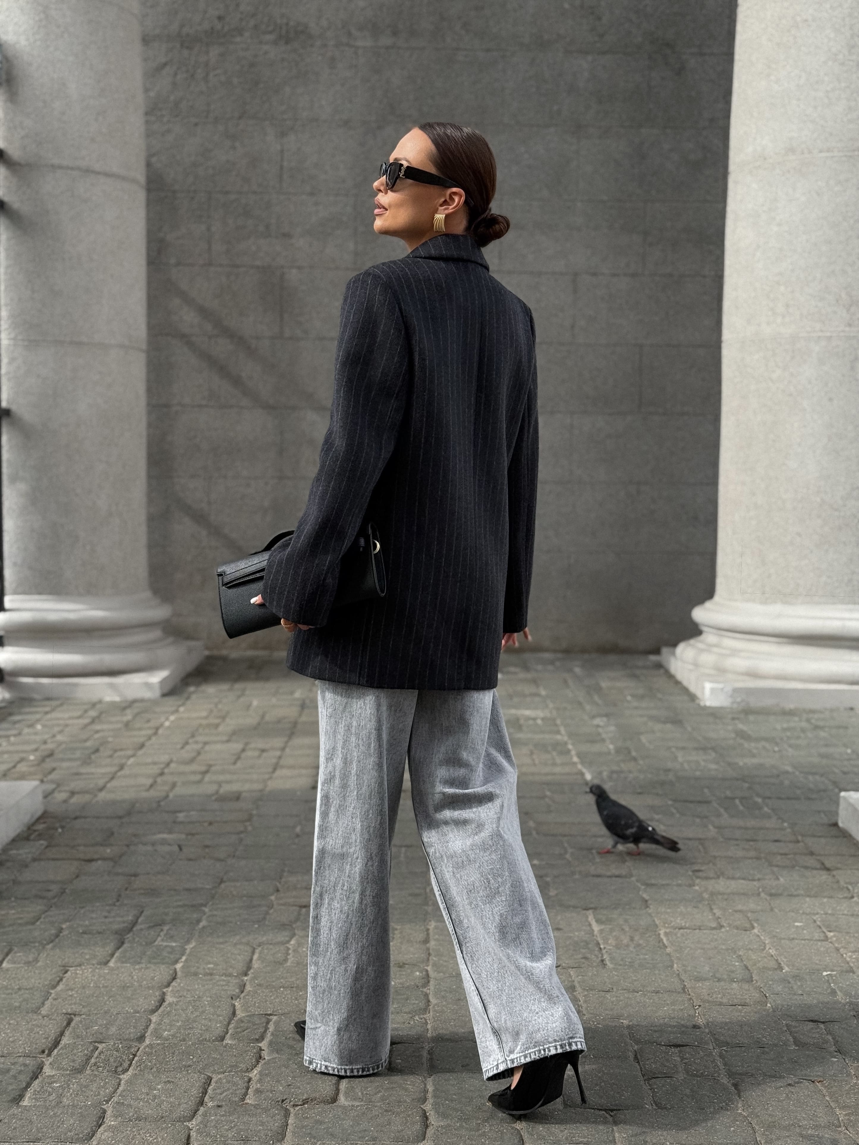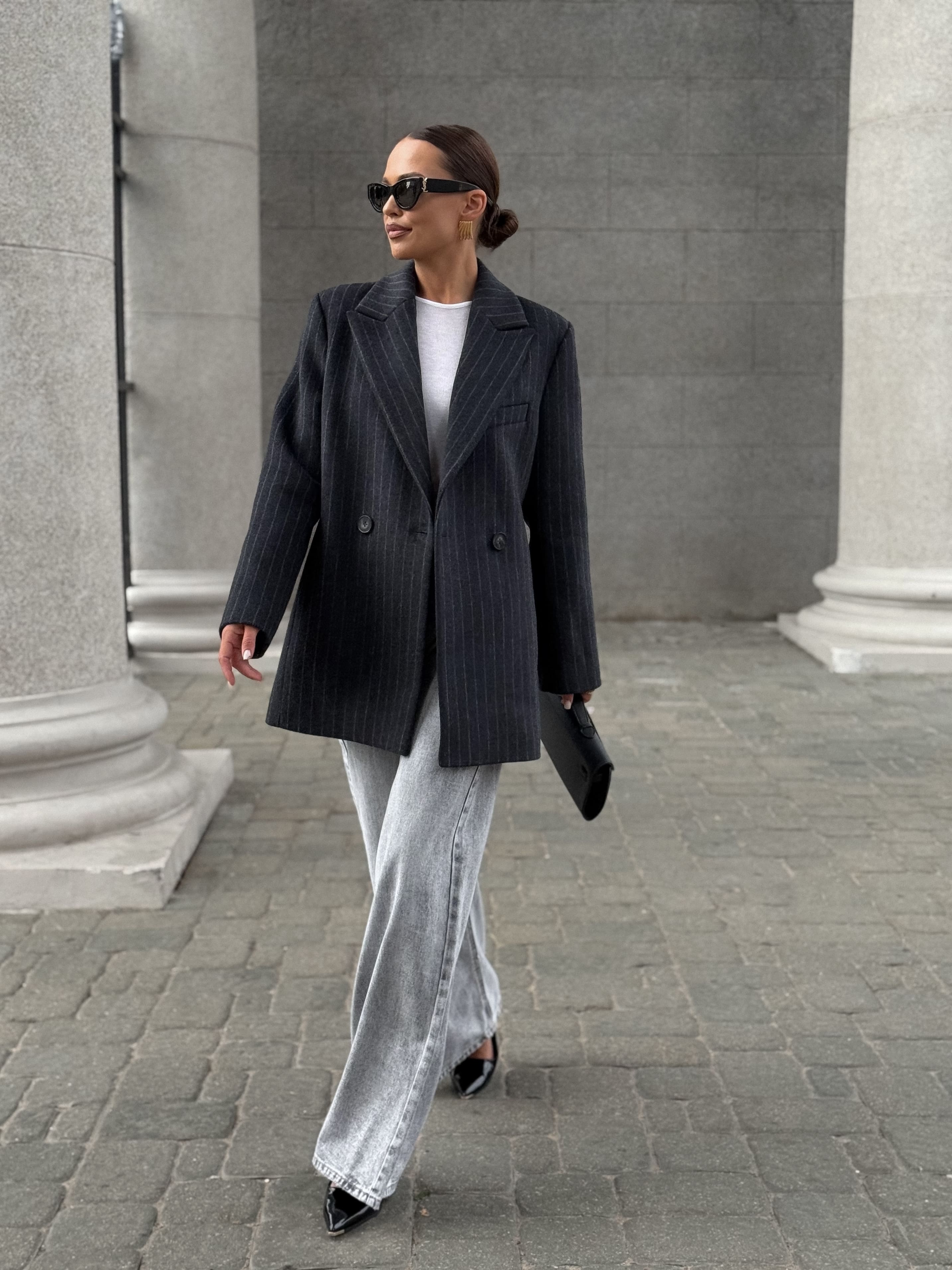 Полупальто из шерсти в полоску, серый
