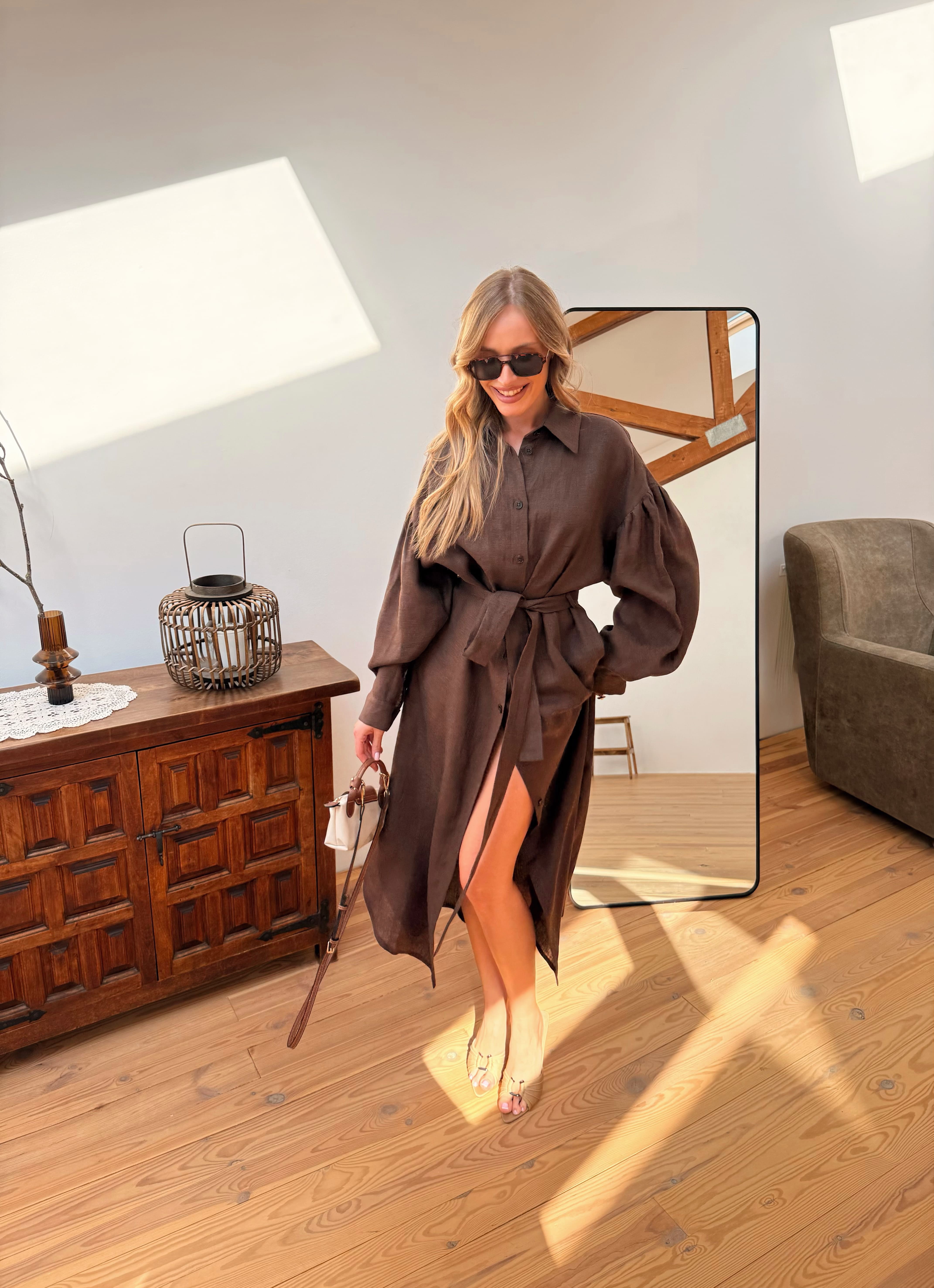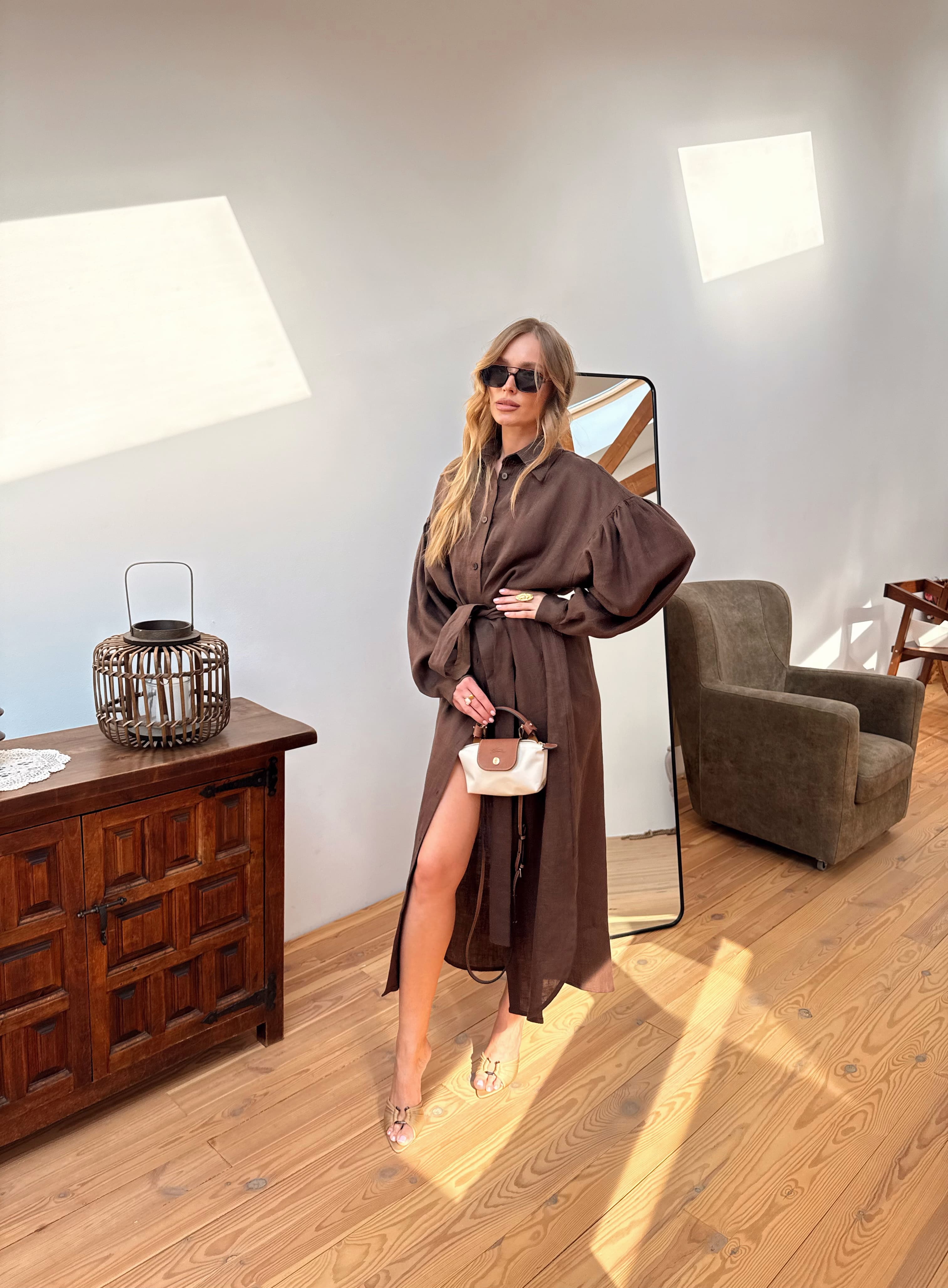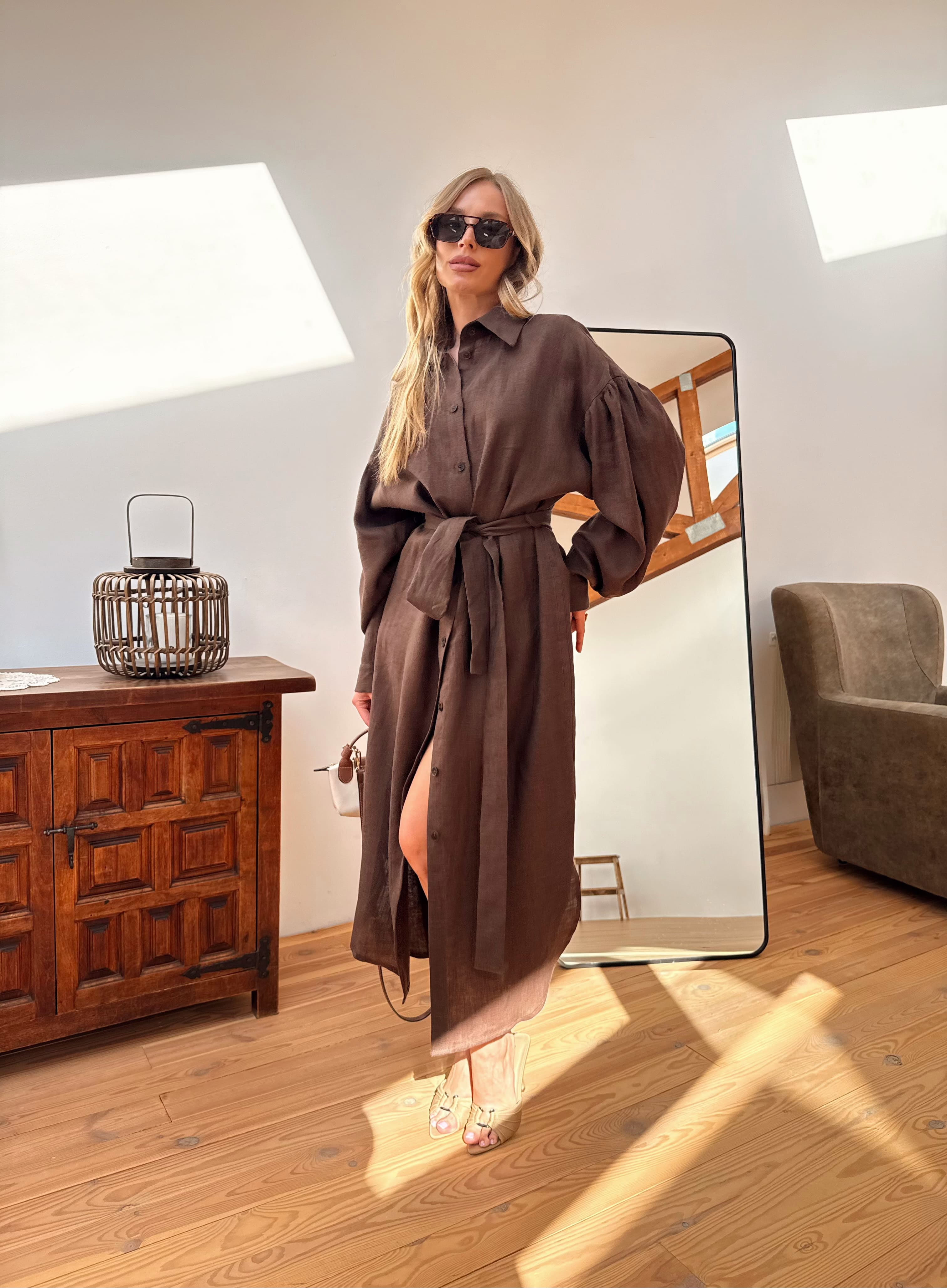 Льняное платье-рубашка