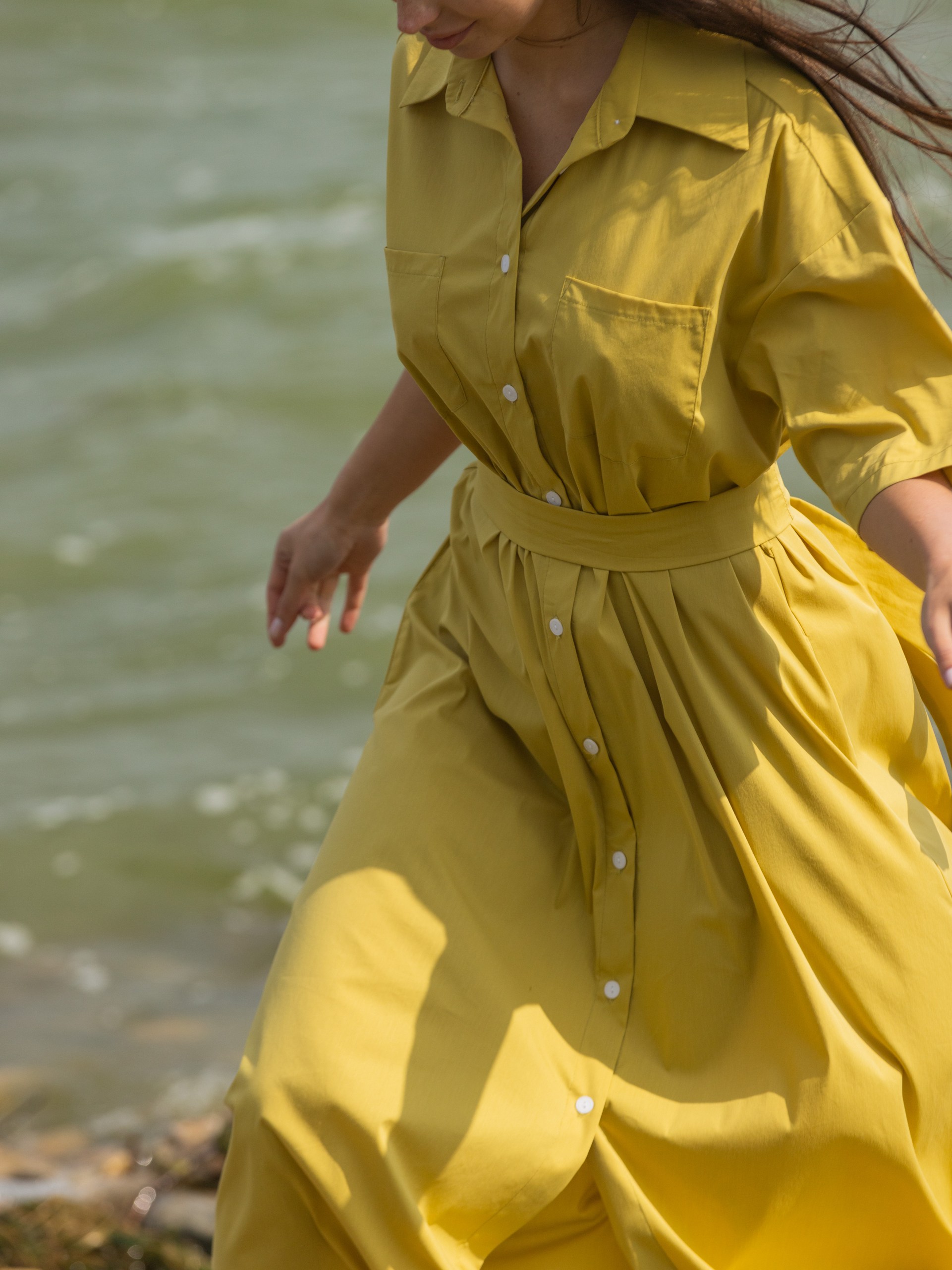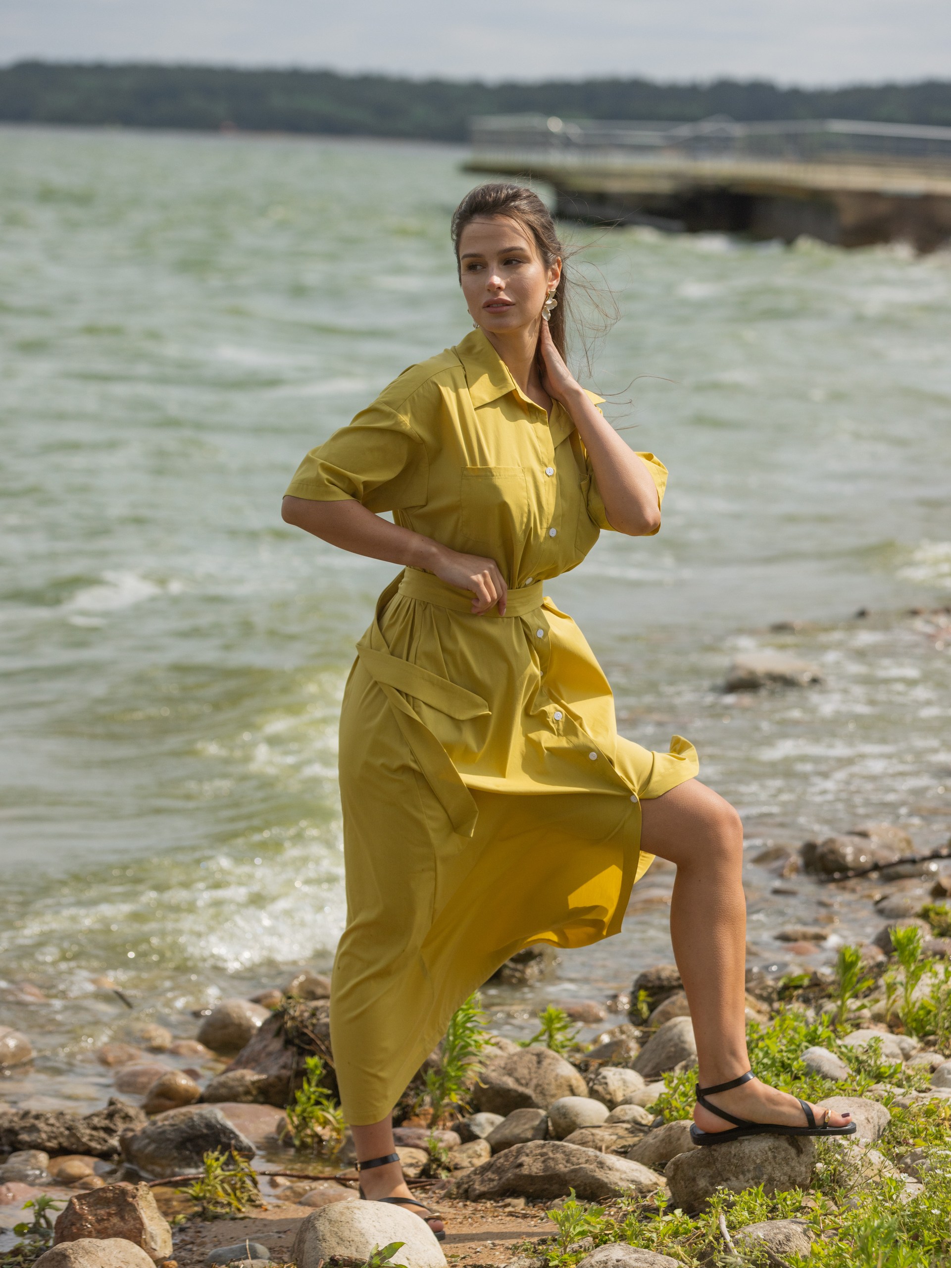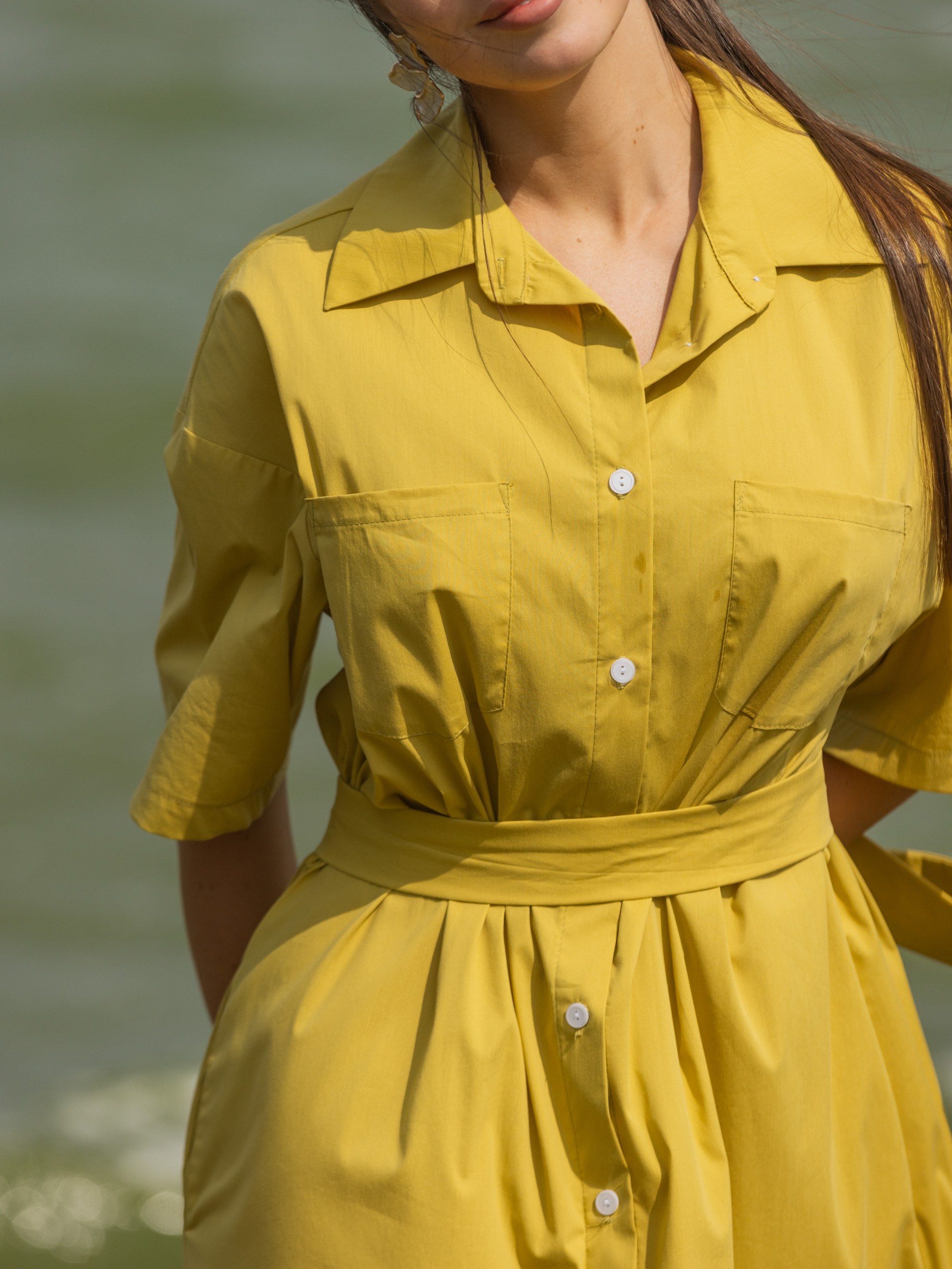Платье-рубашка с поясом, оливковый