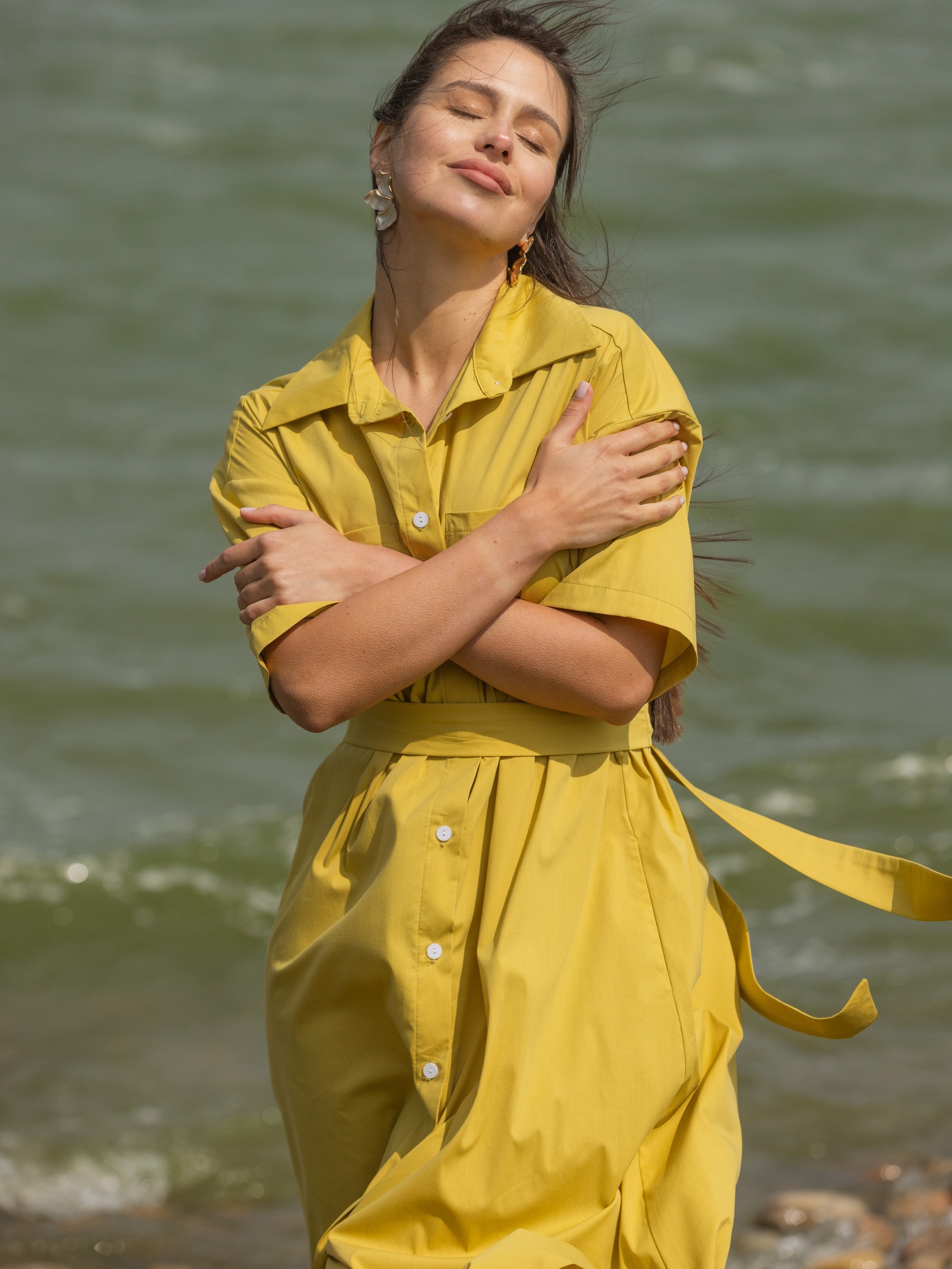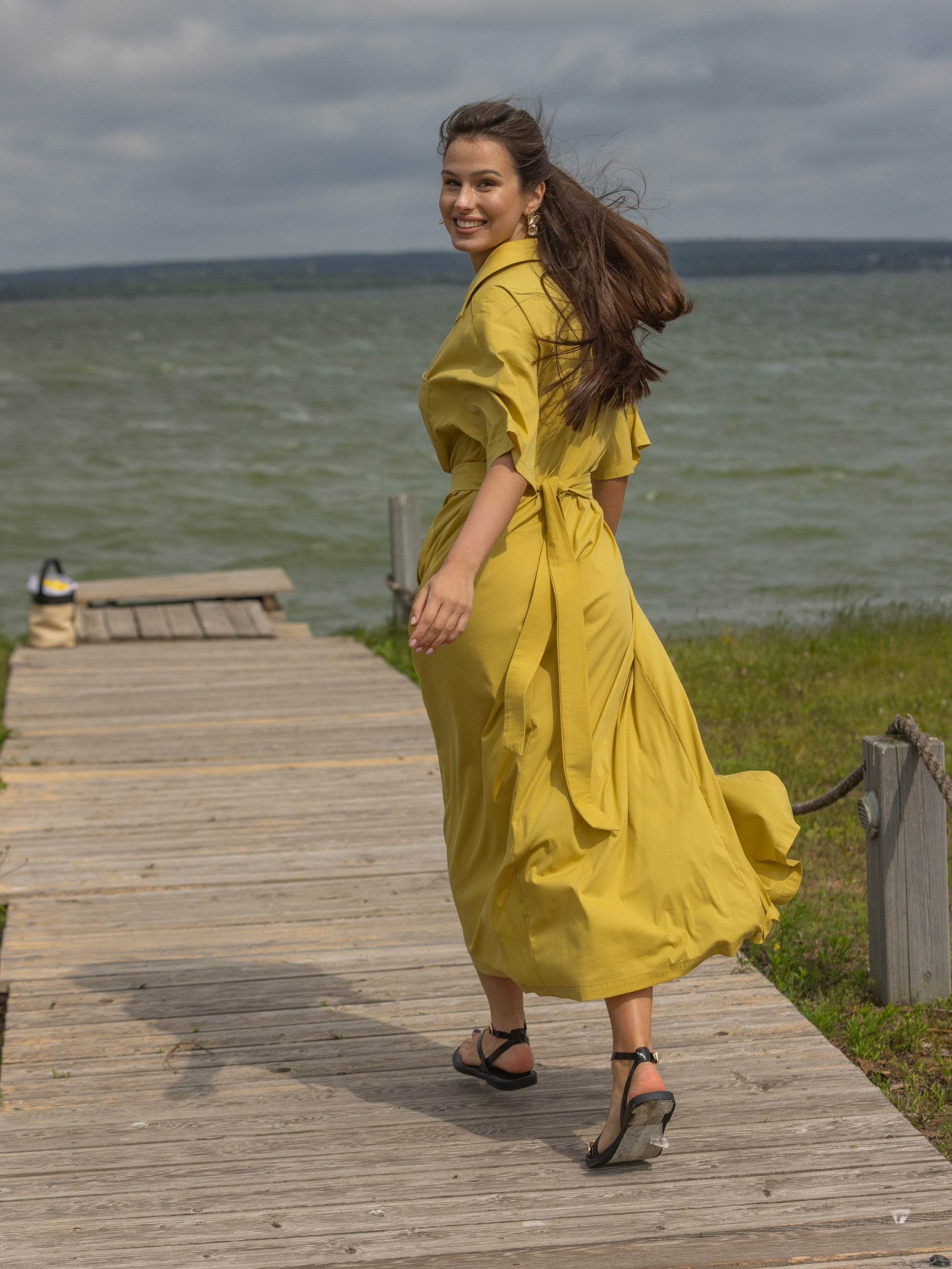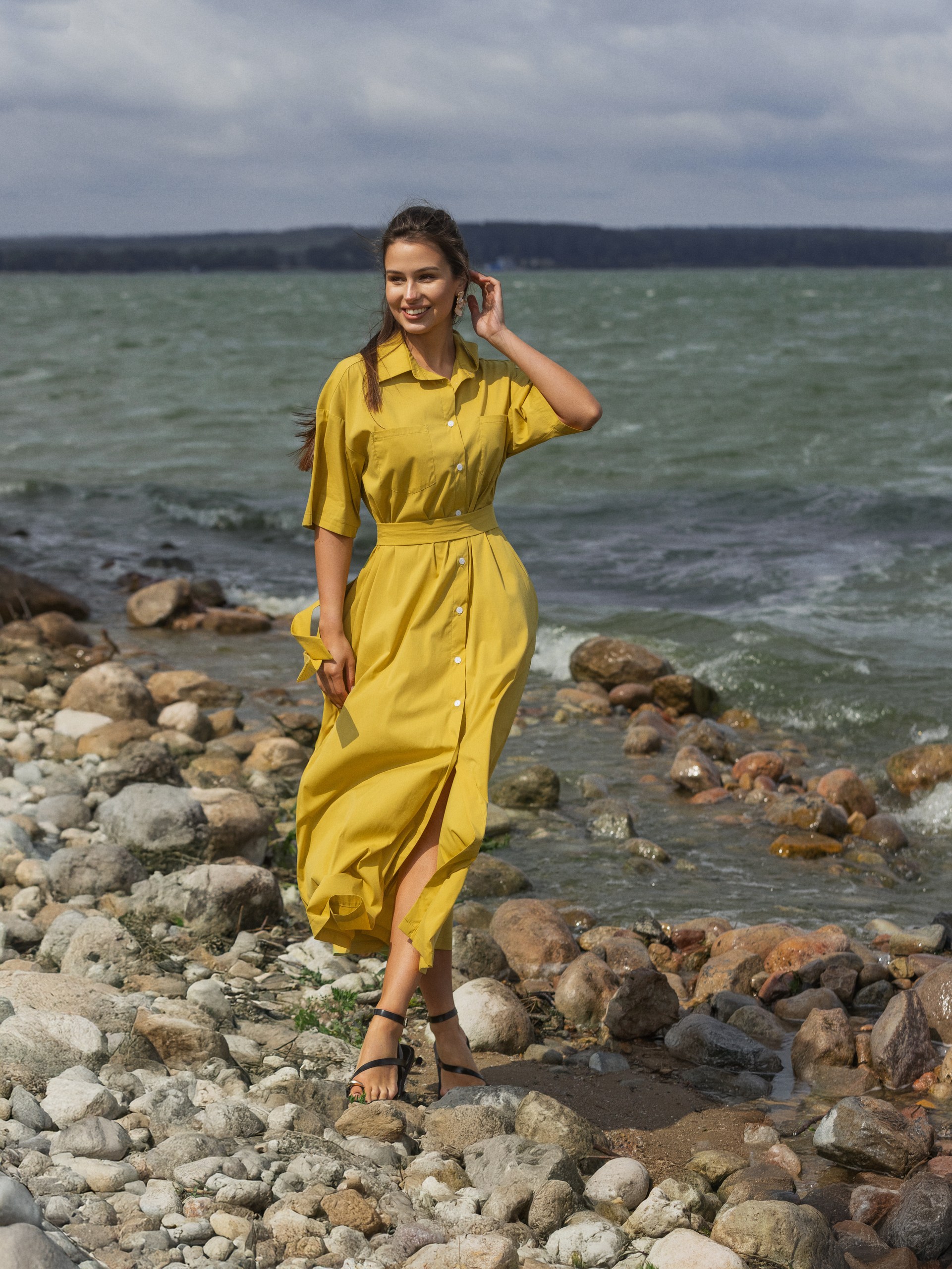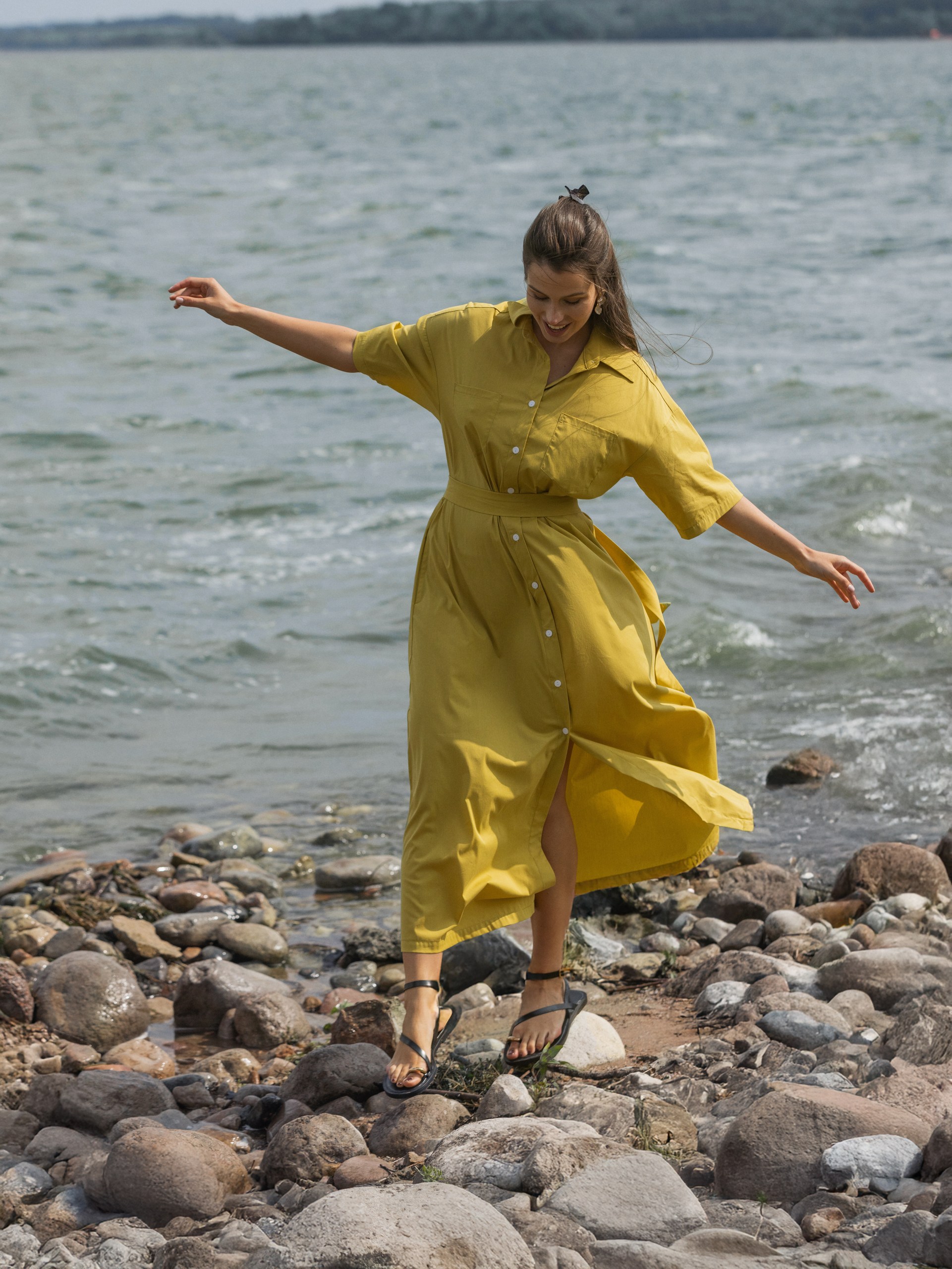 Платье-рубашка с поясом, оливковый