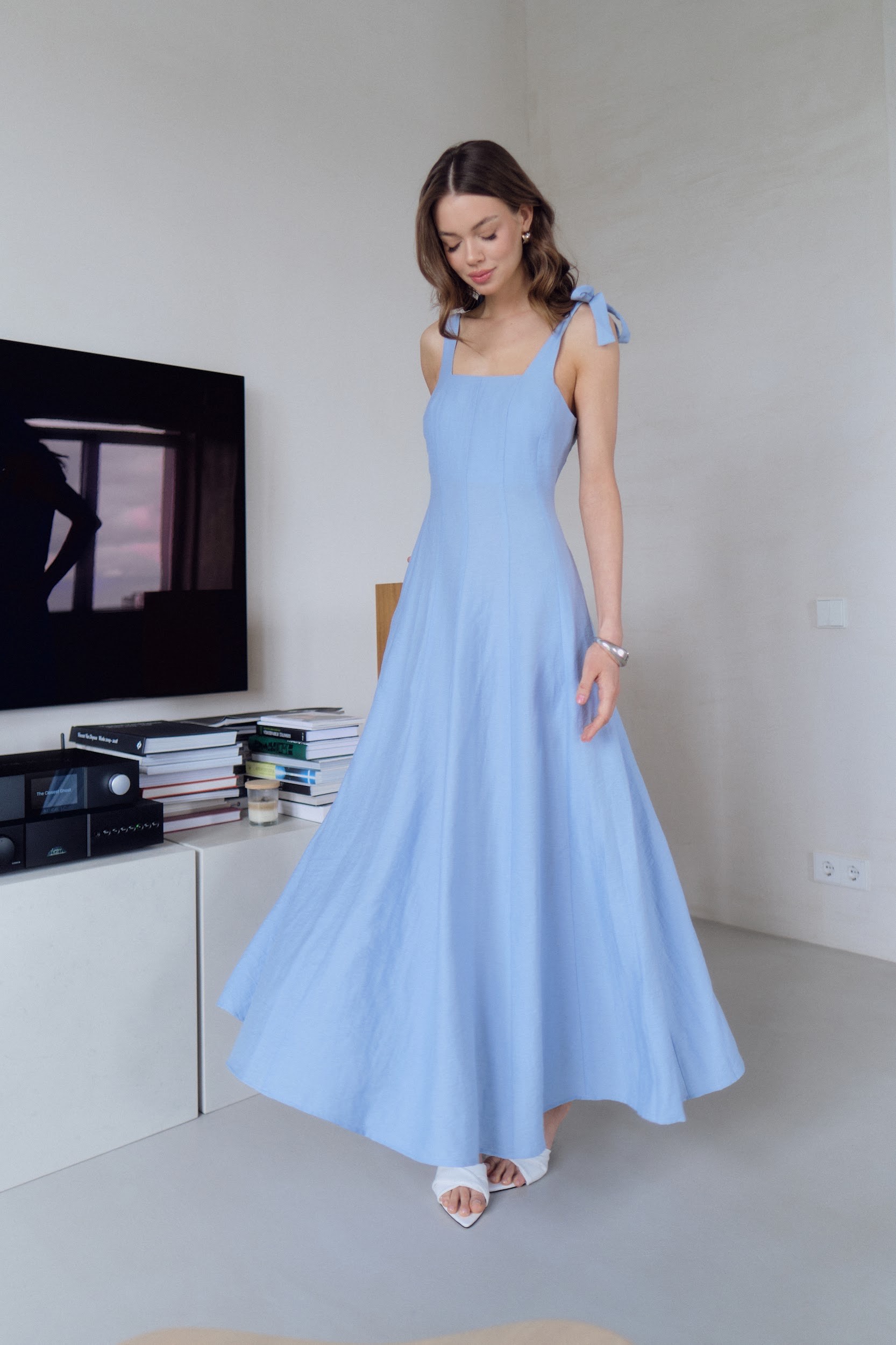 Сарафан на бретелях-бантиках в голубом цвете