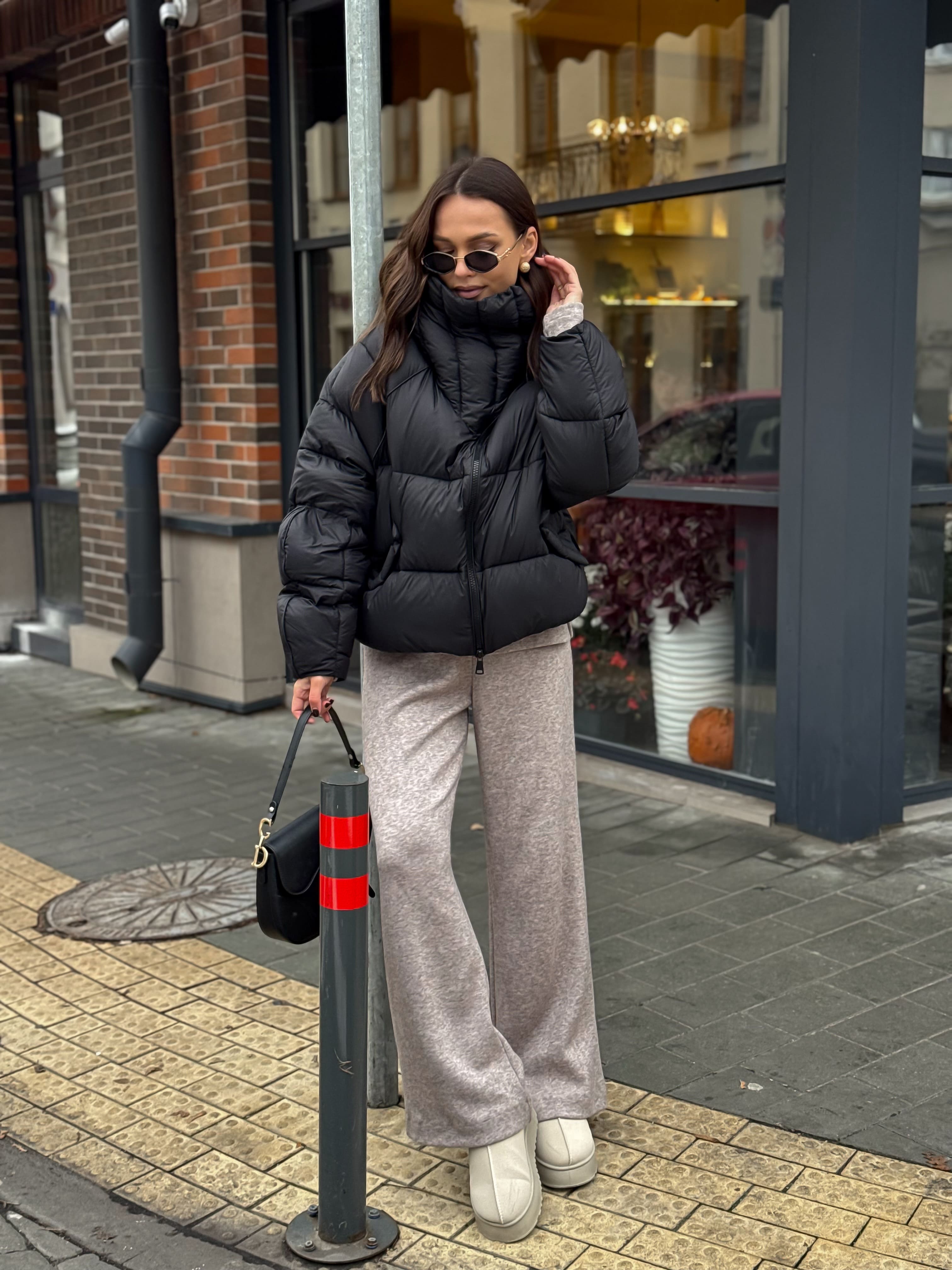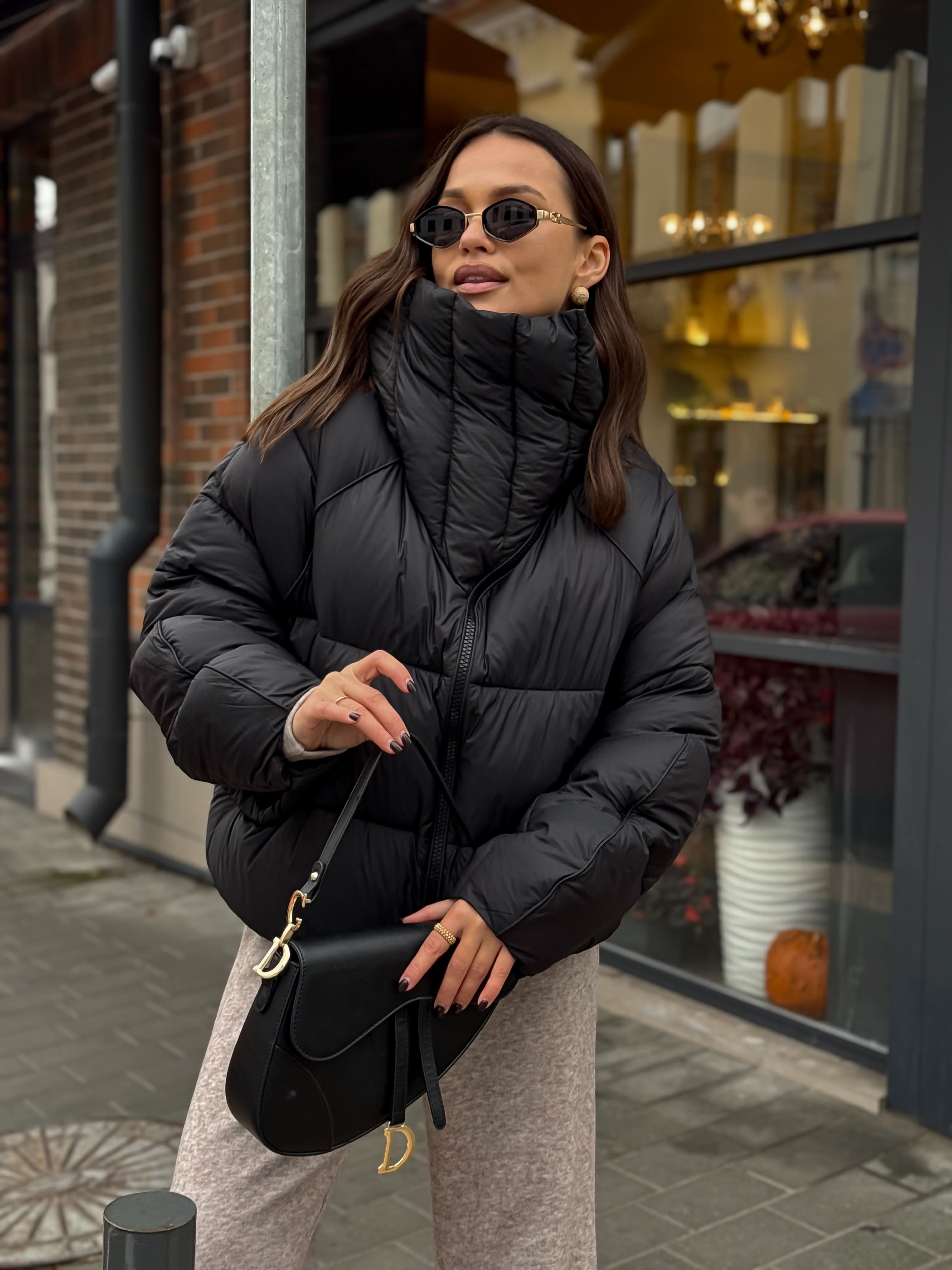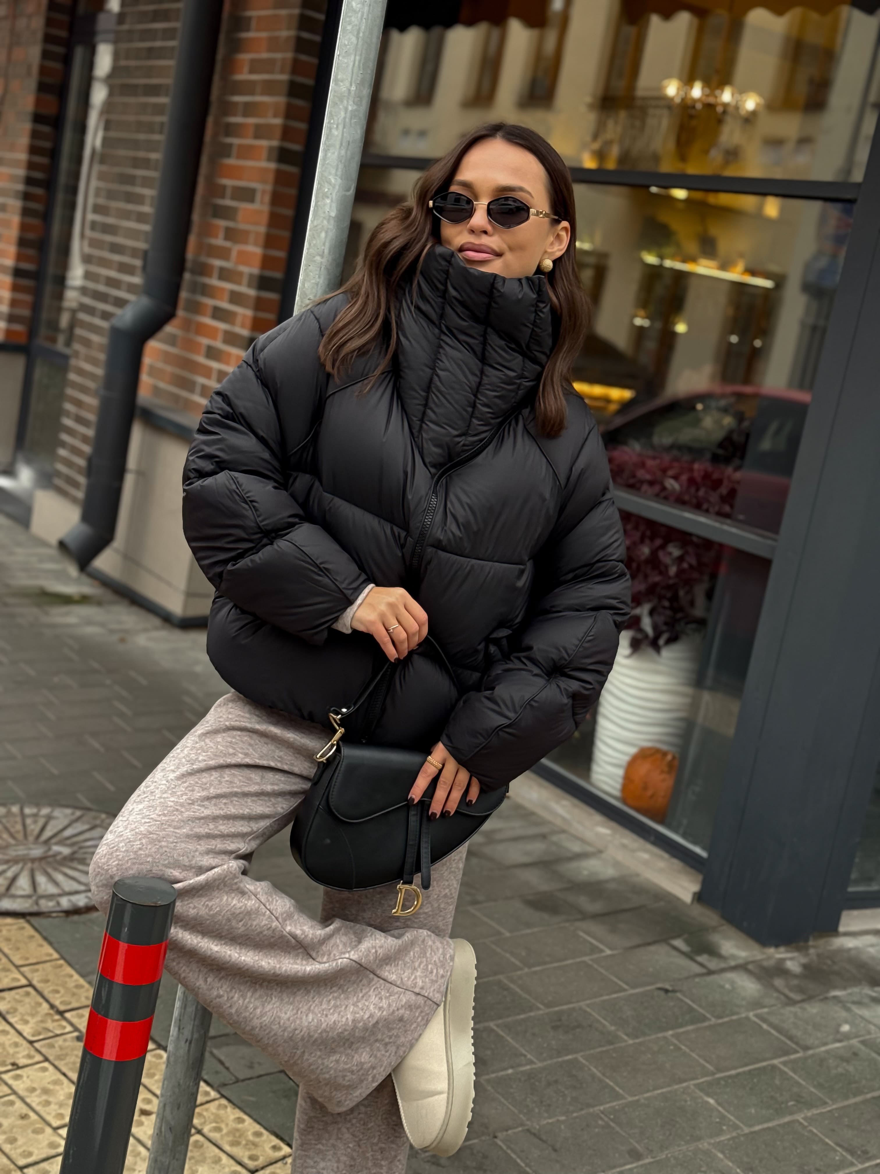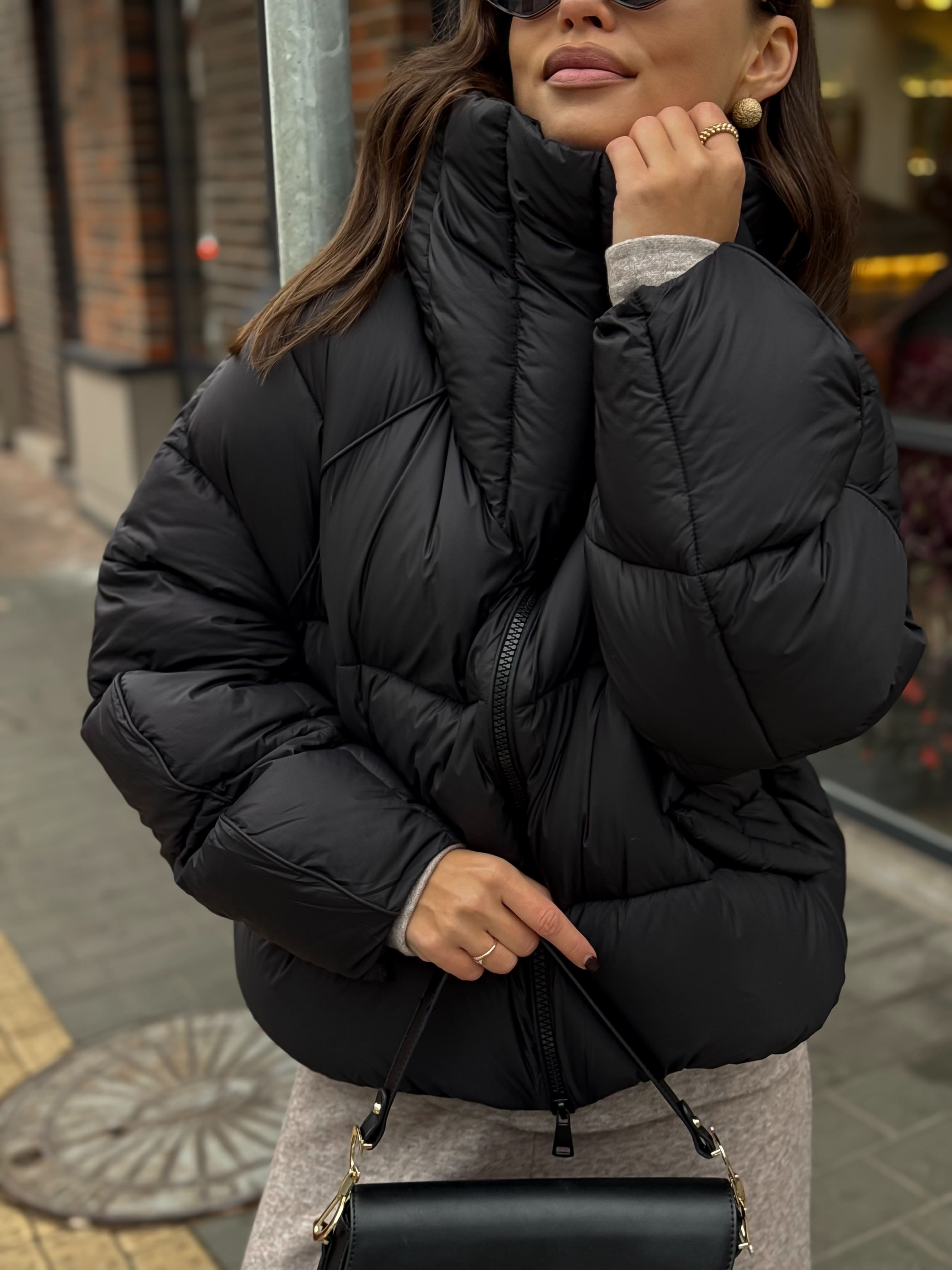 Пуховик укороченный с воротником-стойкой, черный