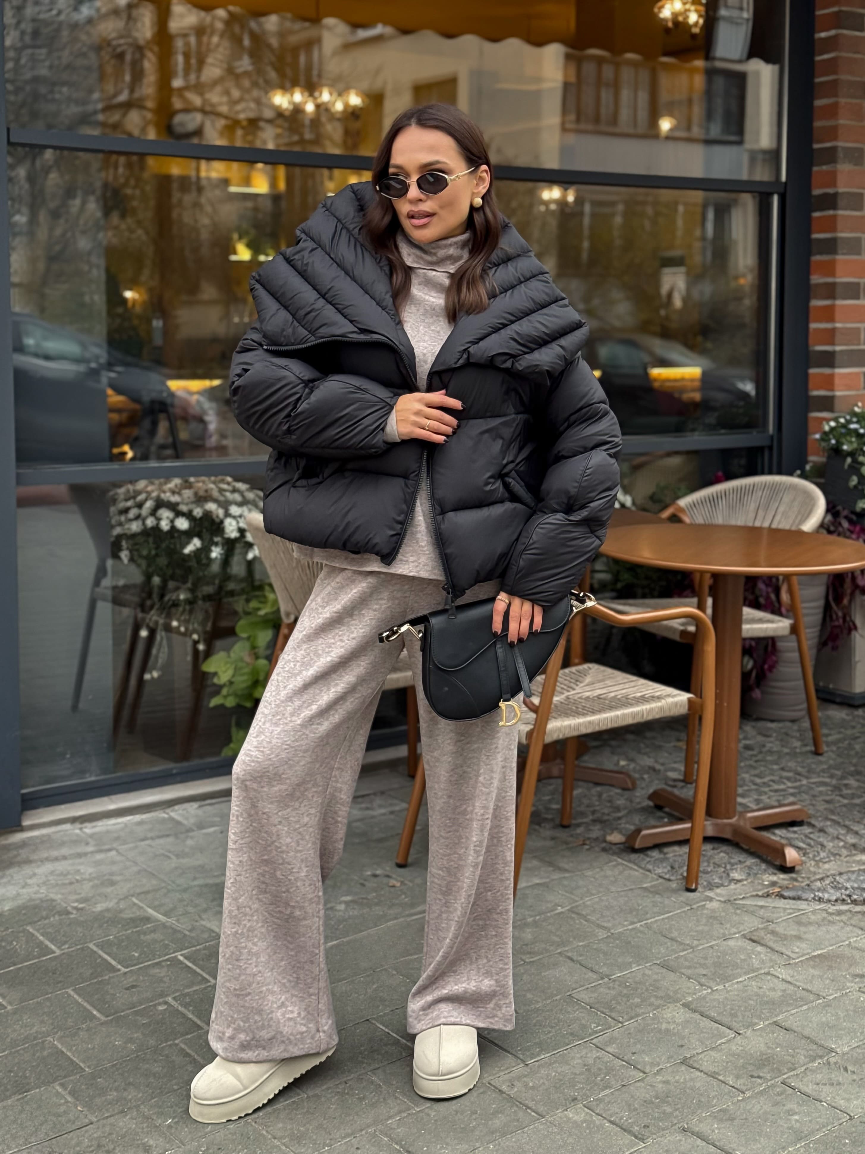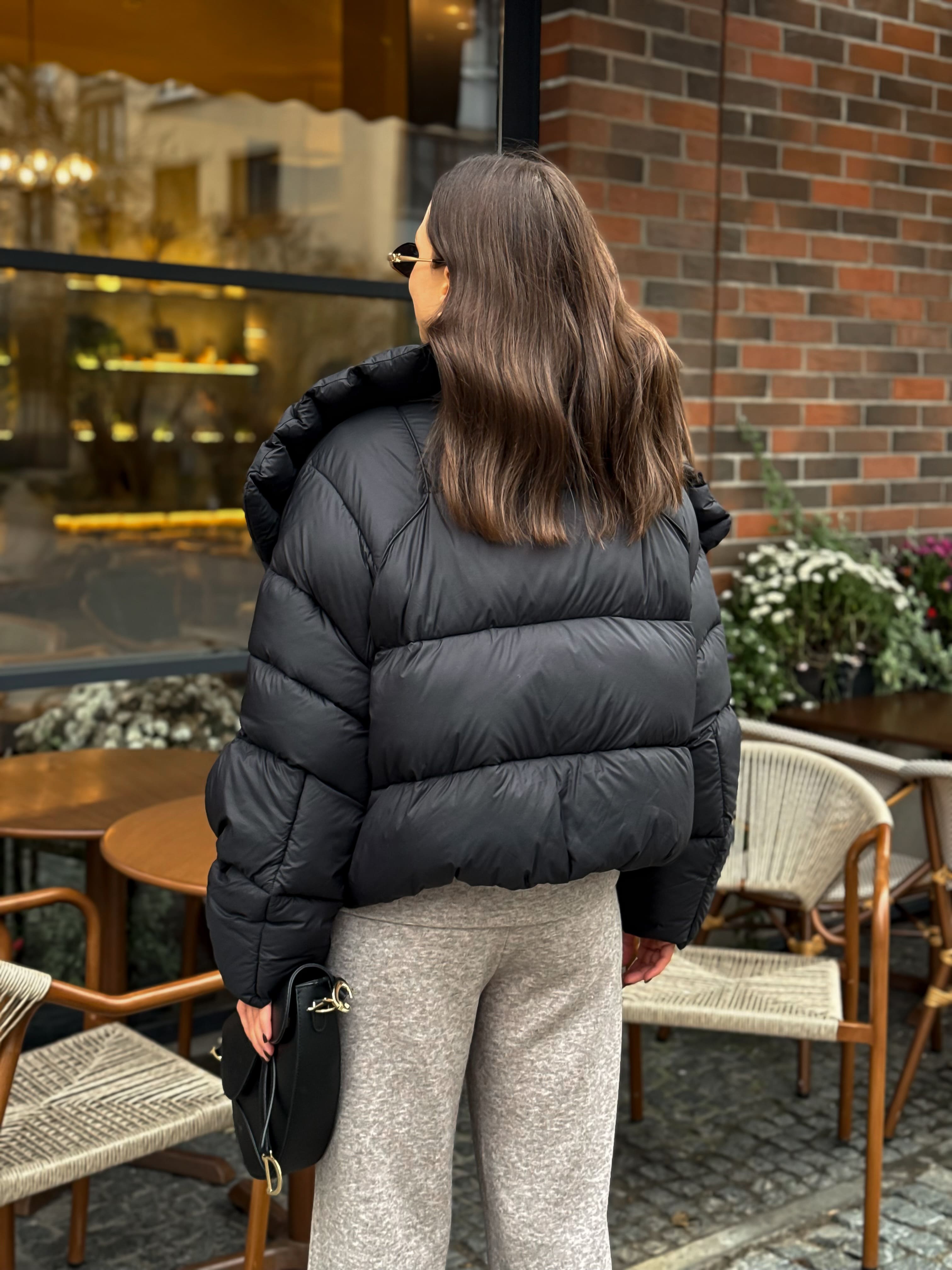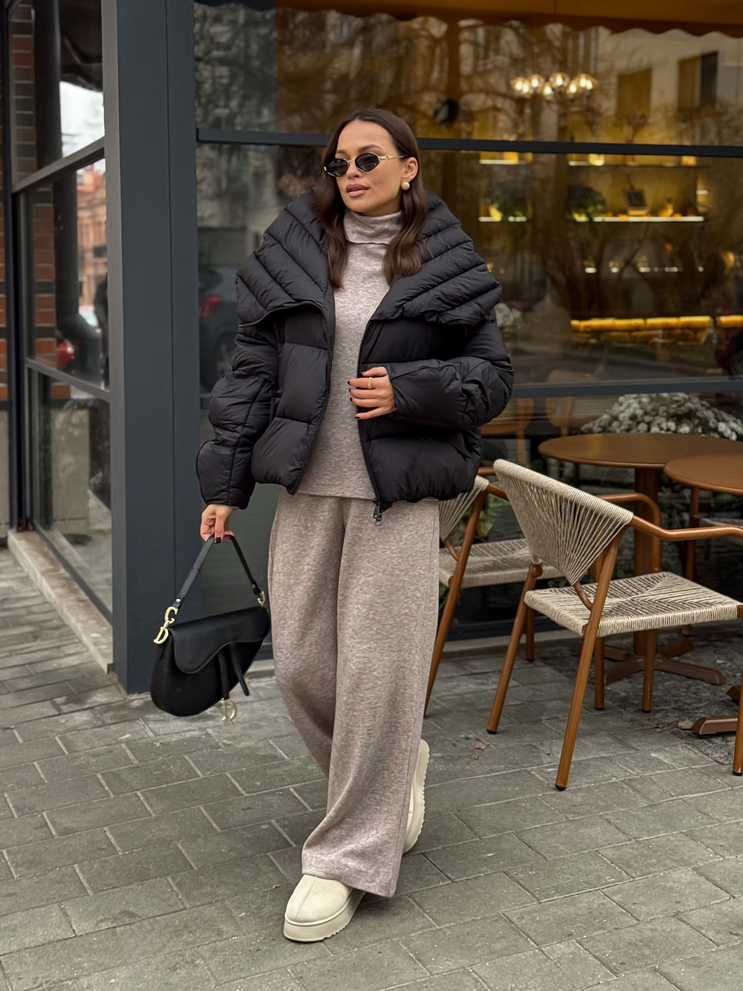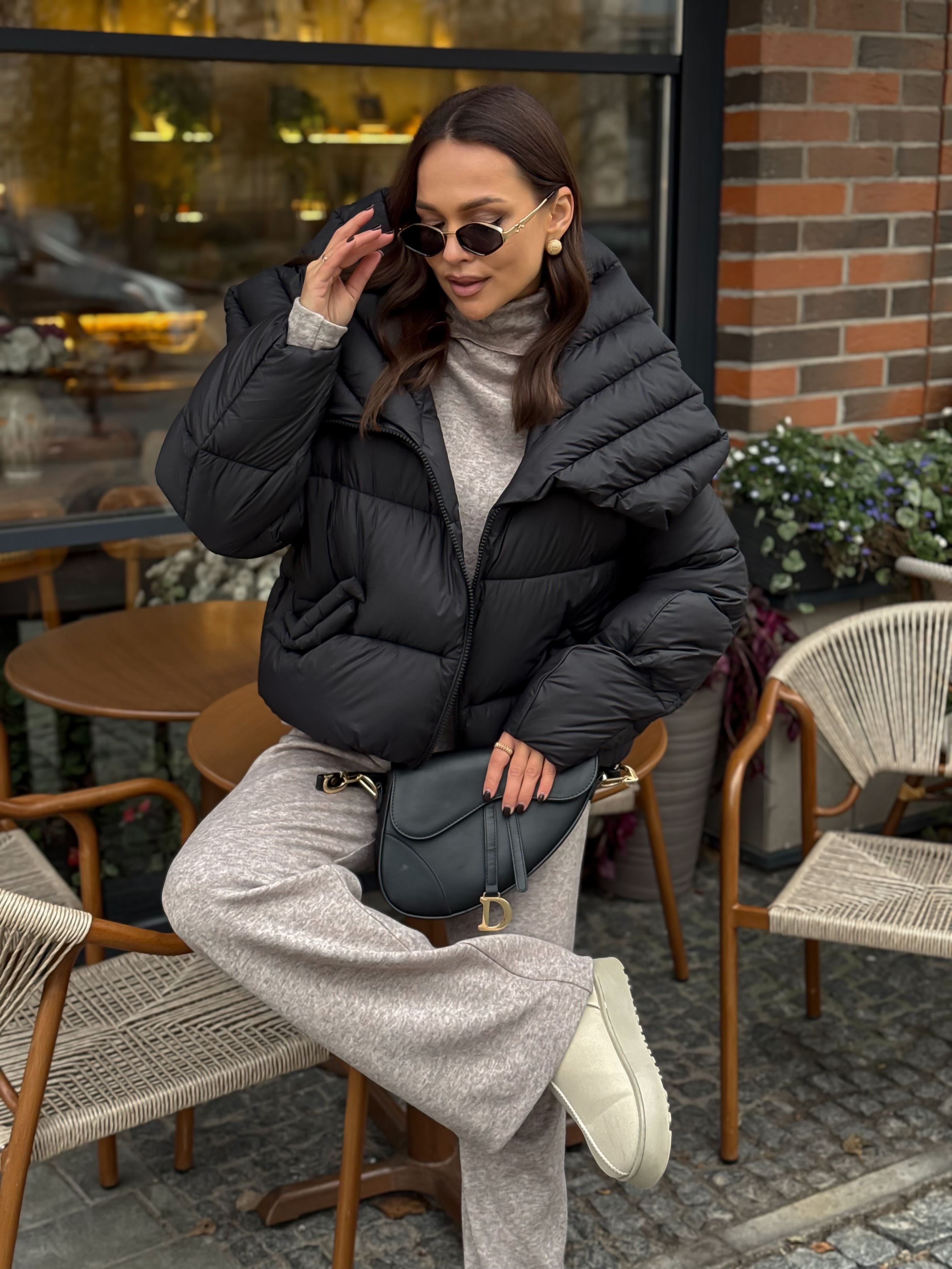 Пуховик укороченный с воротником-стойкой, черный