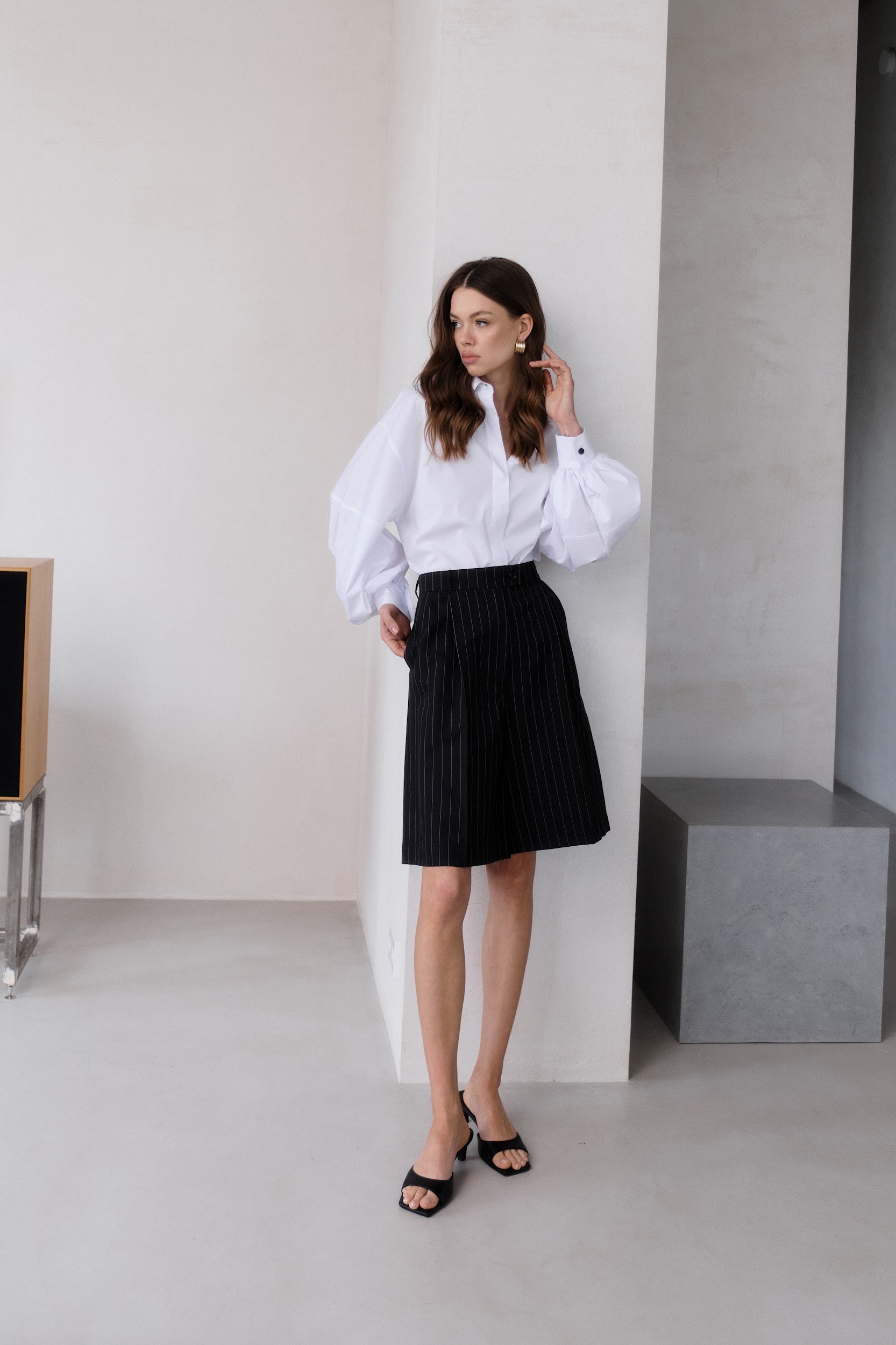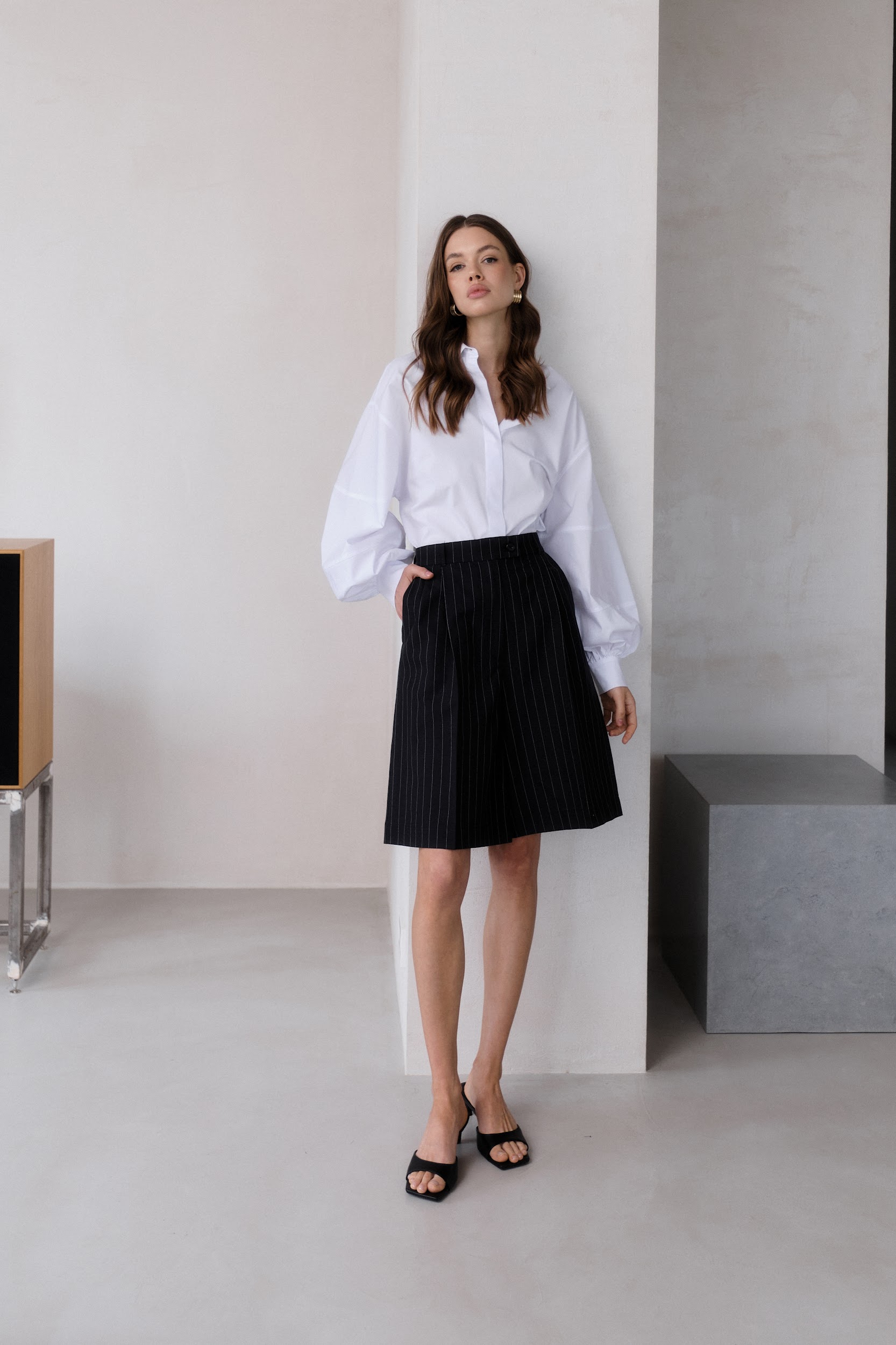 Бермуды в полоску в черном цвете