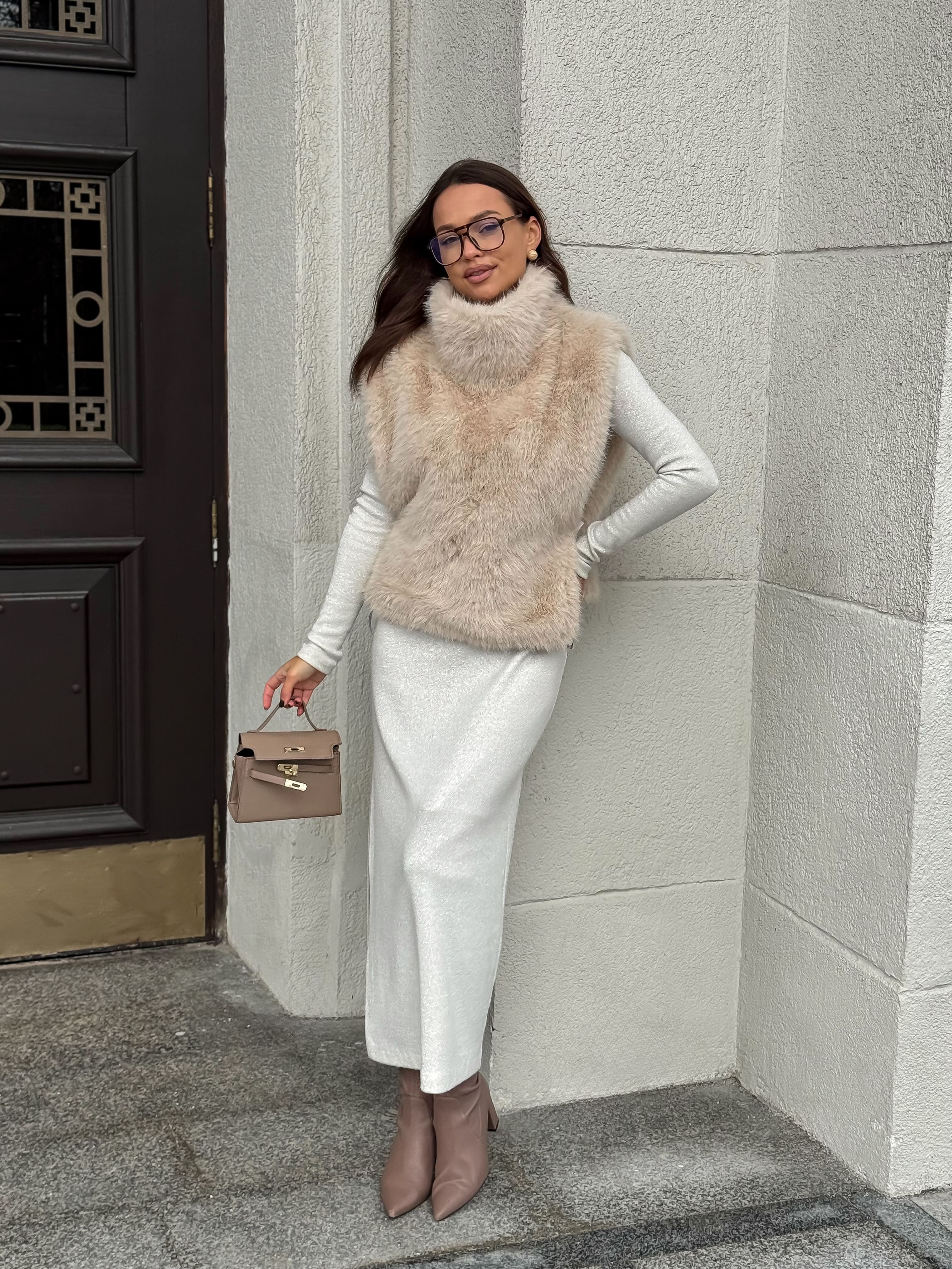 Манишка из эко-песца, бежевый
