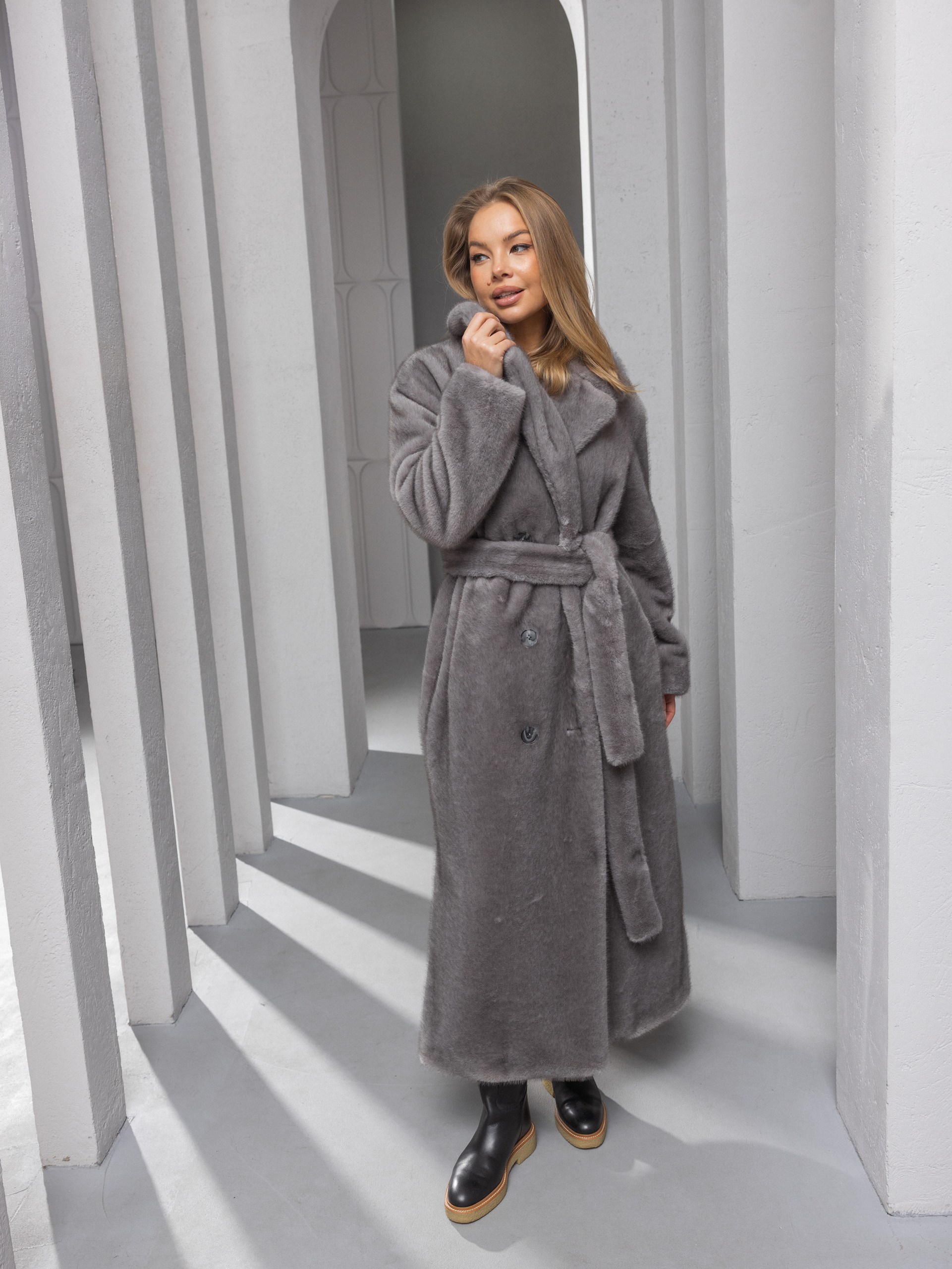 Шубка "волк" со шлицами, графитовый