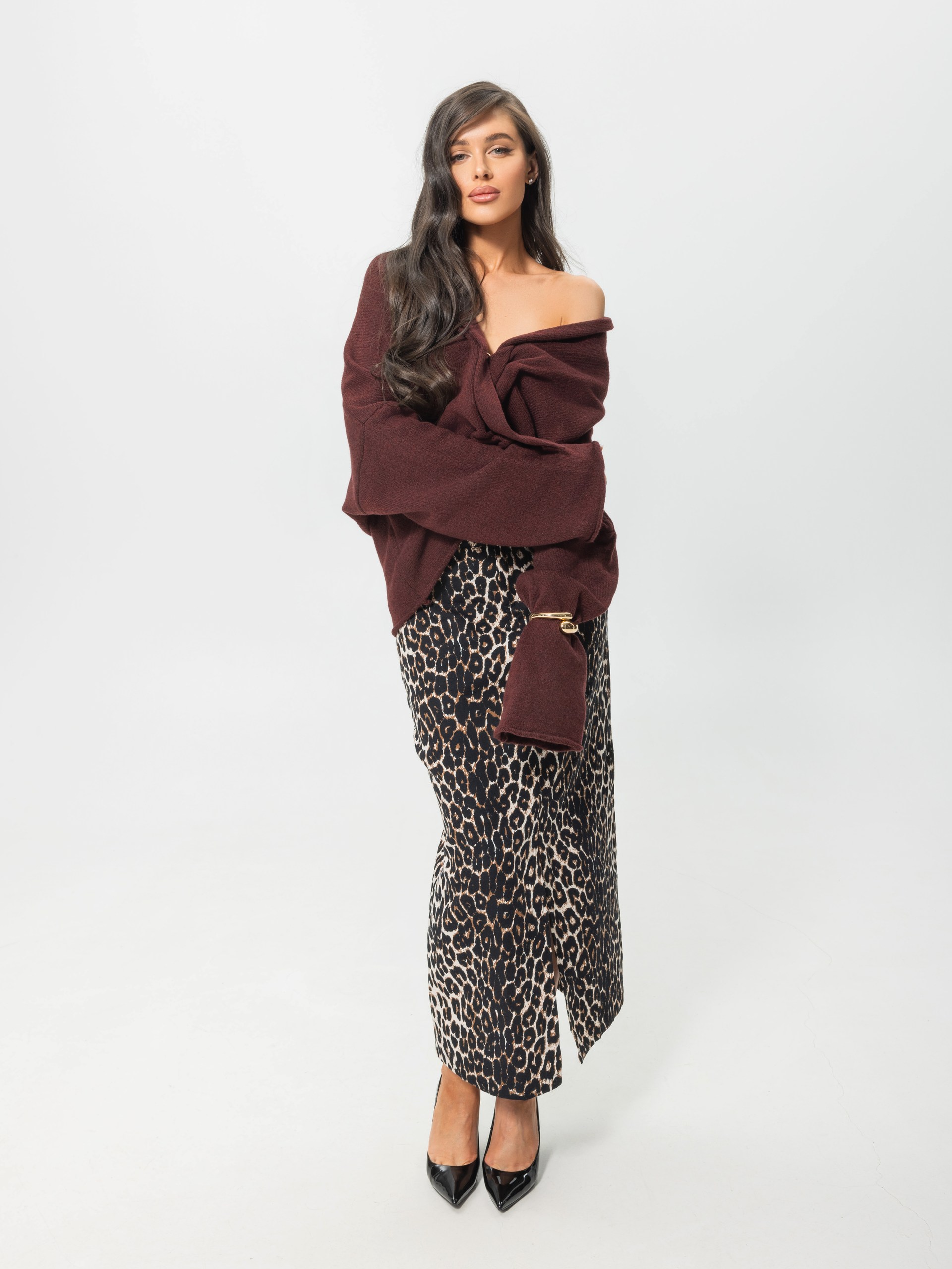 Юбка в длине миди, леопард