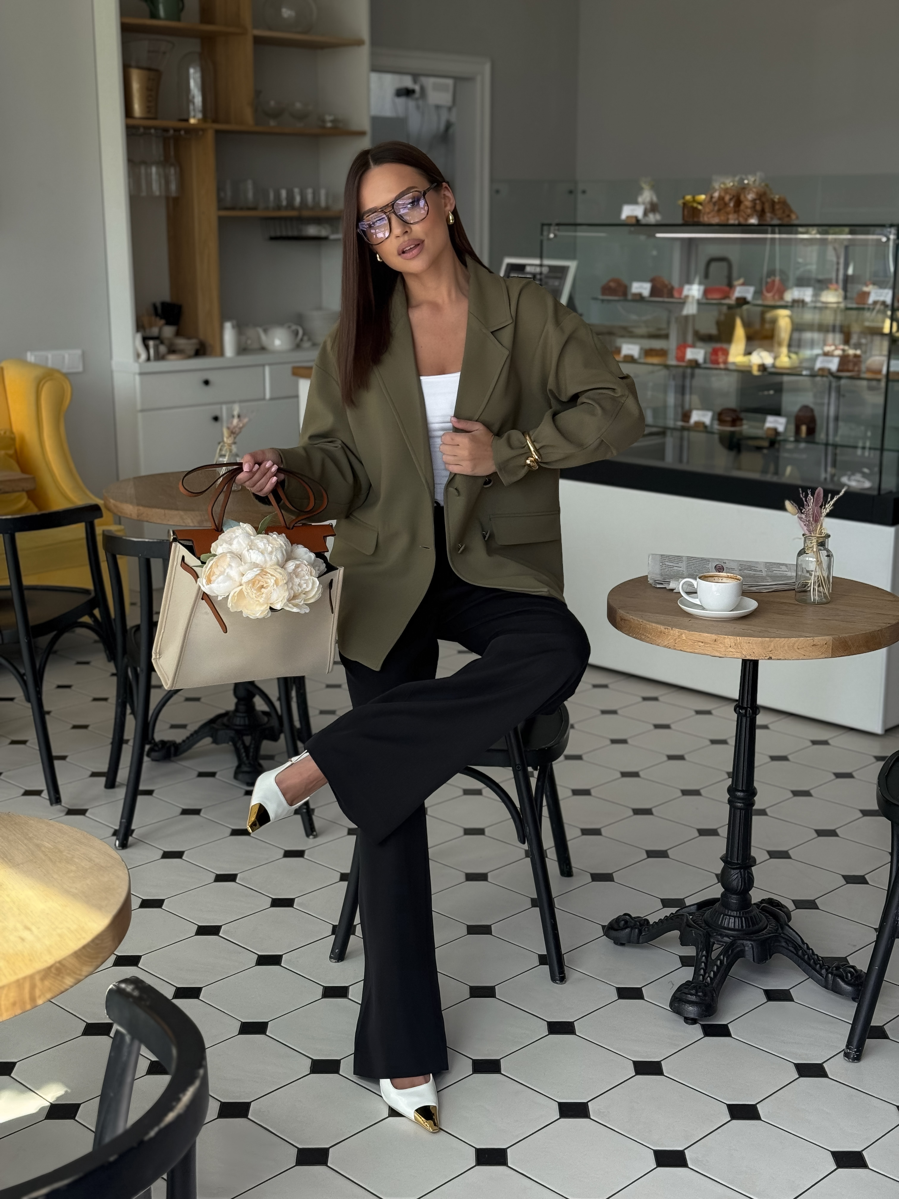 Жакет классический, оливковый
