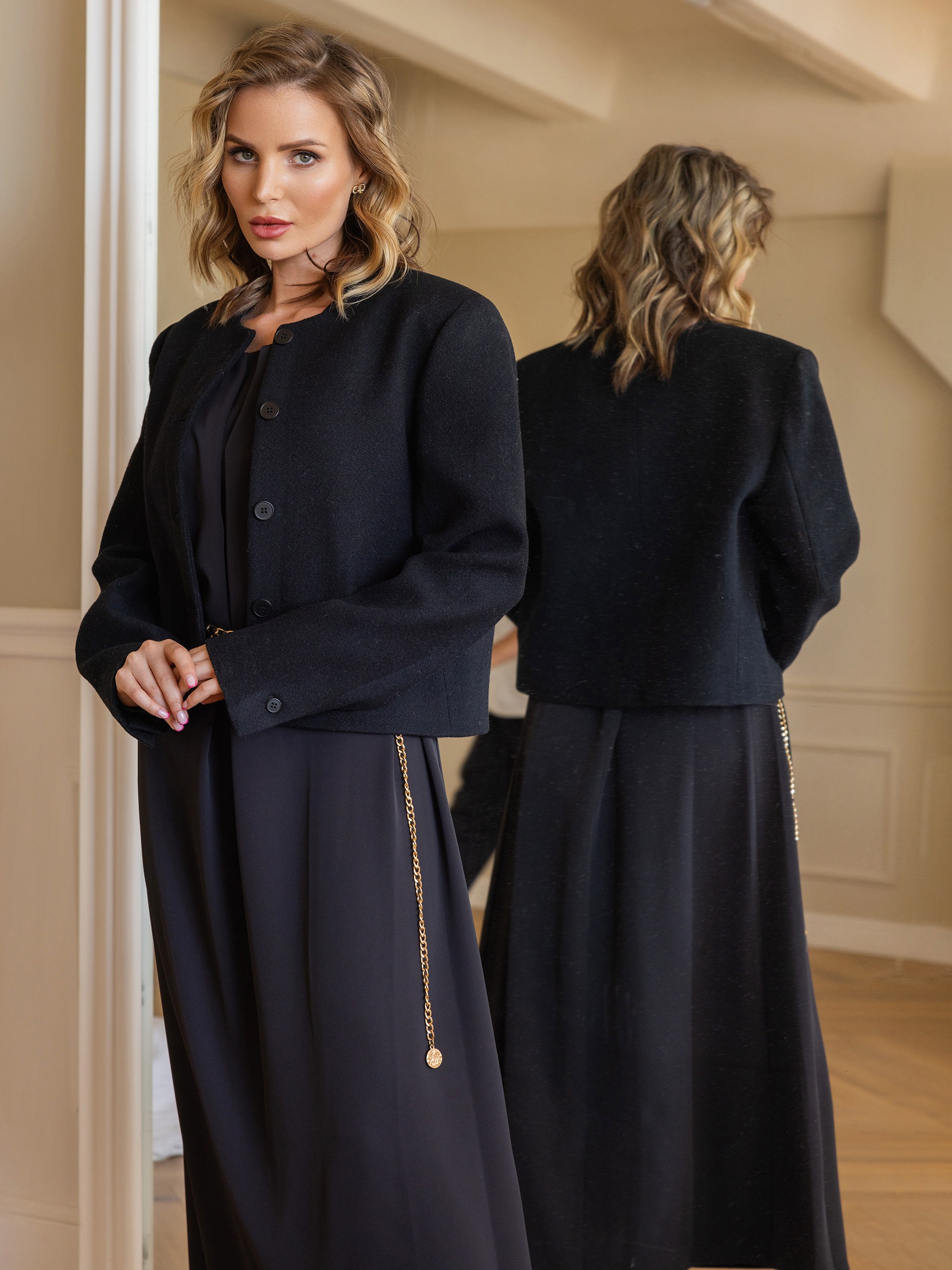 Жакет на пуговицах с имитацией накладных карманов в чёрном цвете