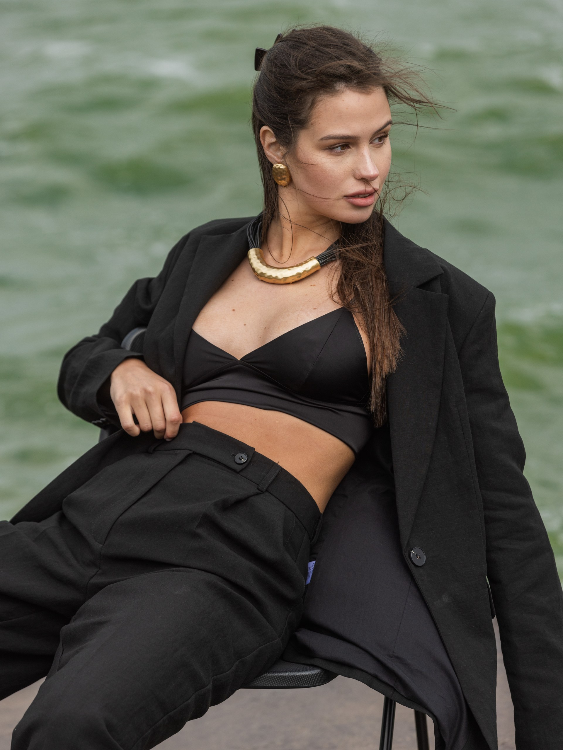 Жакет с карманами в черном цвете