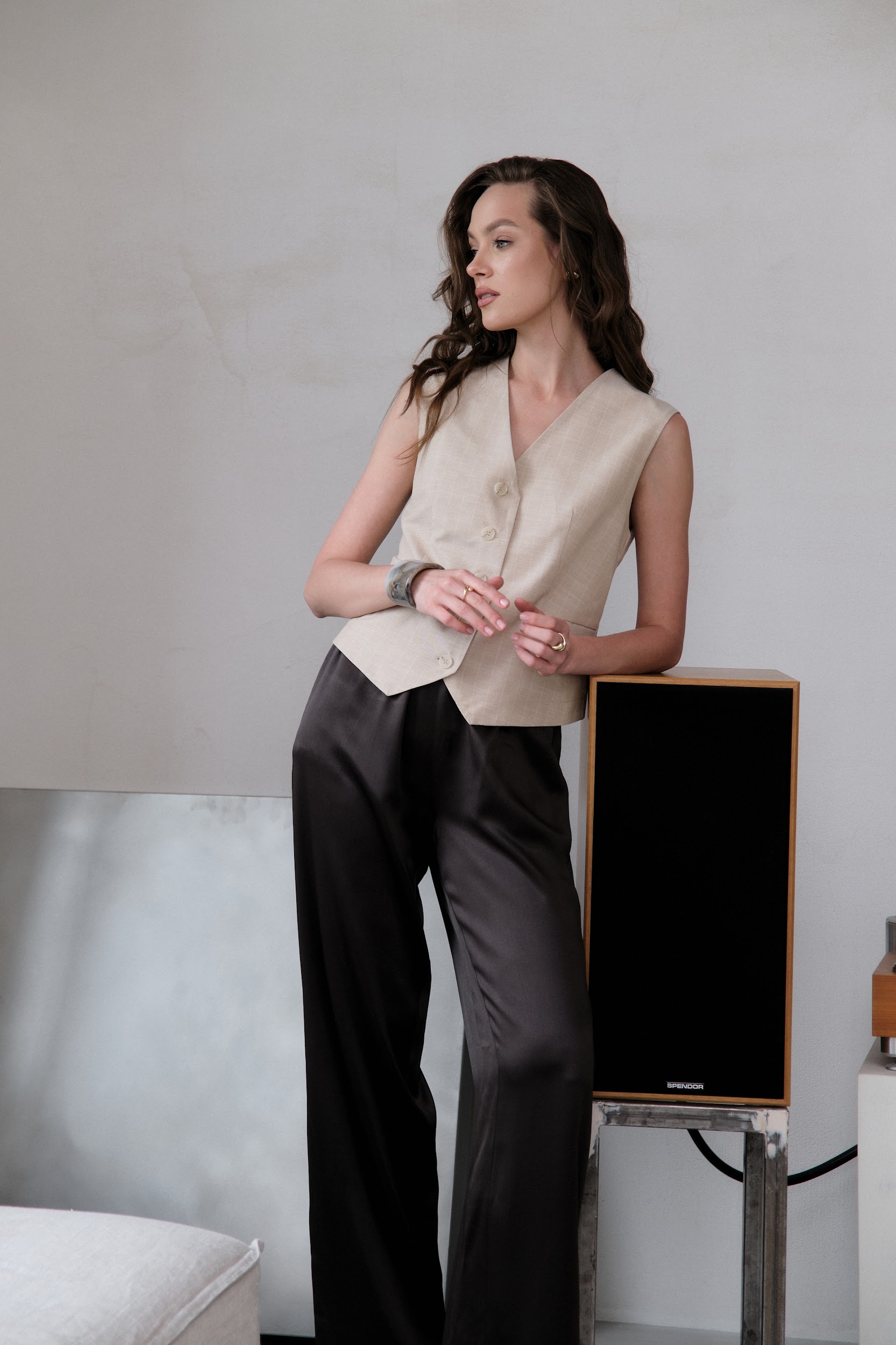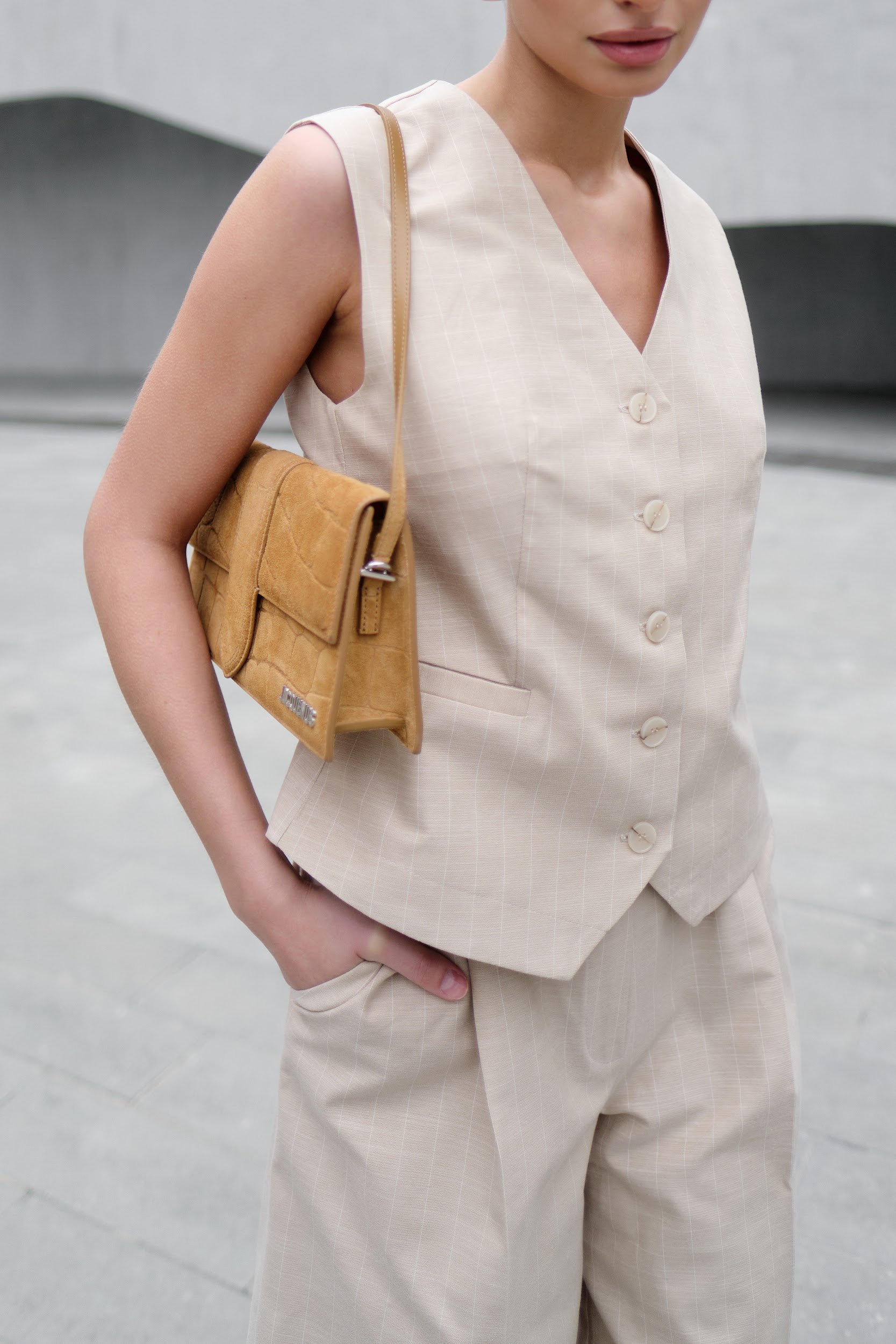 Жилет в полоску, песочный